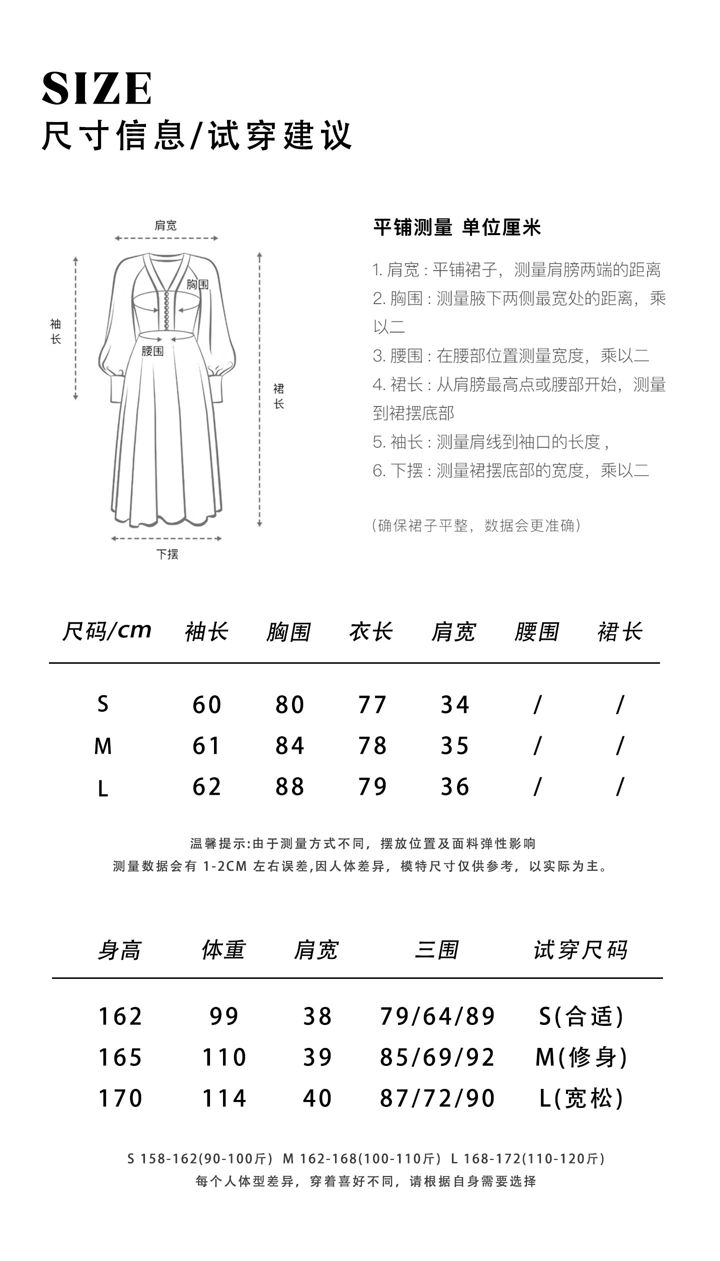 China (cm) 160-165/84-86 165-170 / 88-90 167-172 / 92-96 168-173 / 98-102 170-176 / 106-110