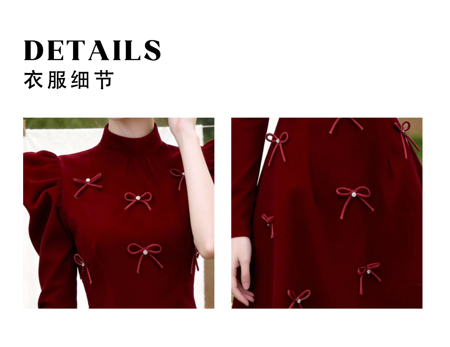 New Chinese-Style Exquisite Red Princess Dress for Women, Solid Color Long-Sleeve Dress with Bow Tie, Waist-Cinching, Slim-Fit Dress
