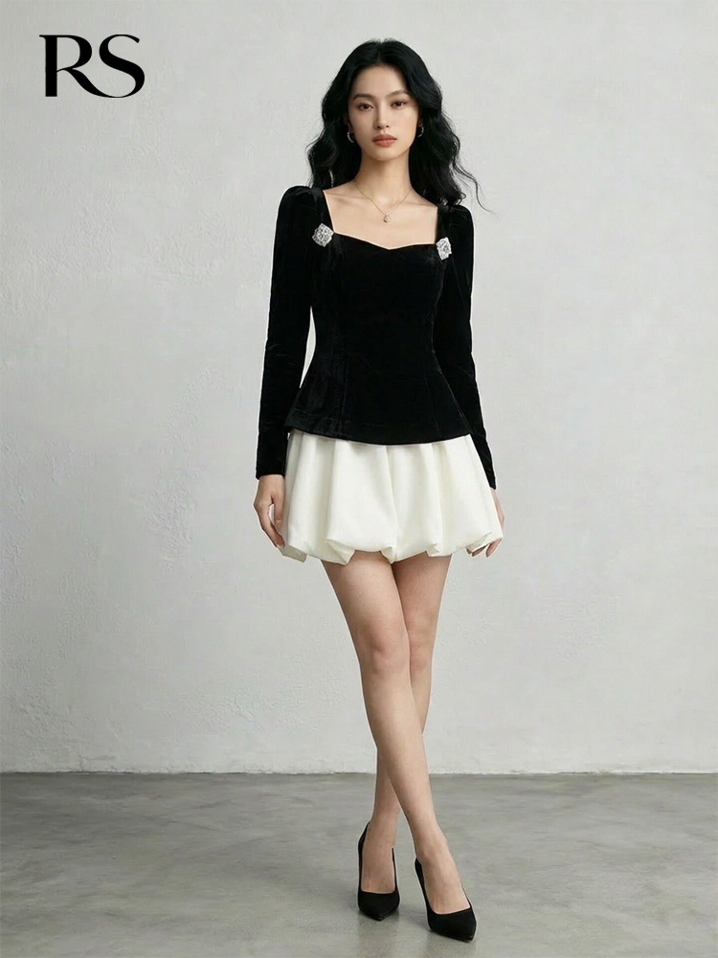 RURUI Rusui 2026 Spring New Style Elegant Golden Flower Important Occasion Black Flower Bud Dress for Women