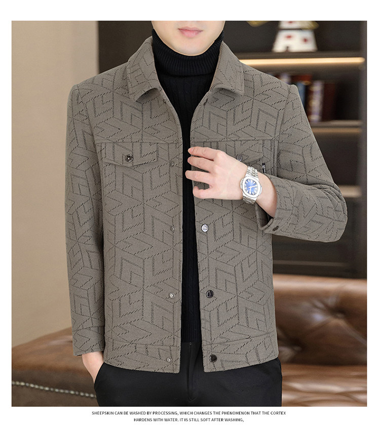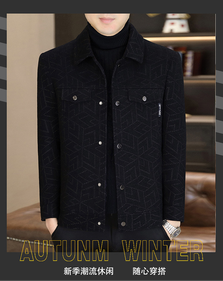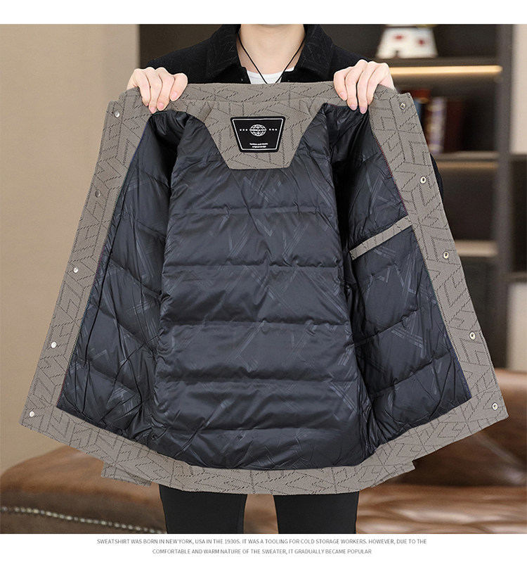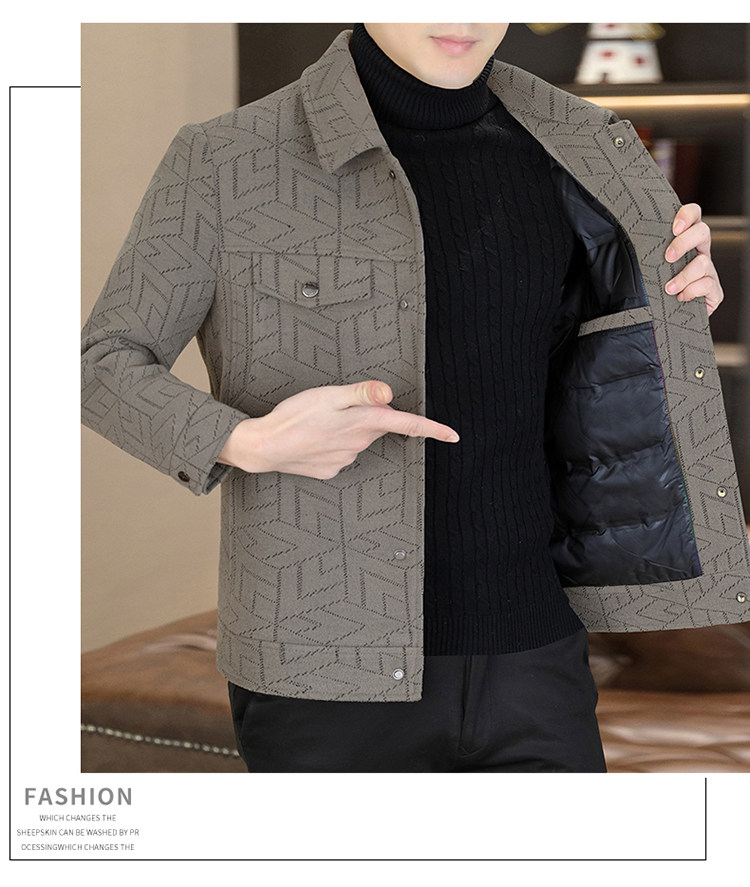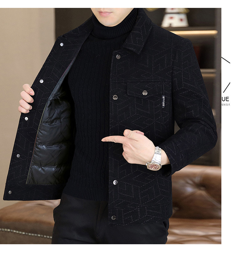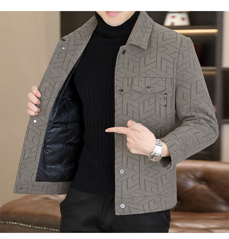 Woodpecker Winter Men's Thickened Down Jacket Lapel Short Casual Fashion Warm Woolen Jacket Versatile Jacket