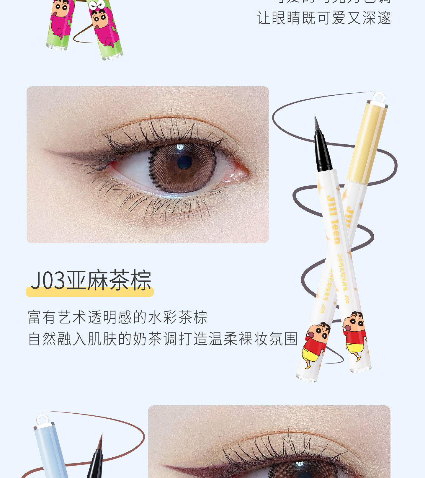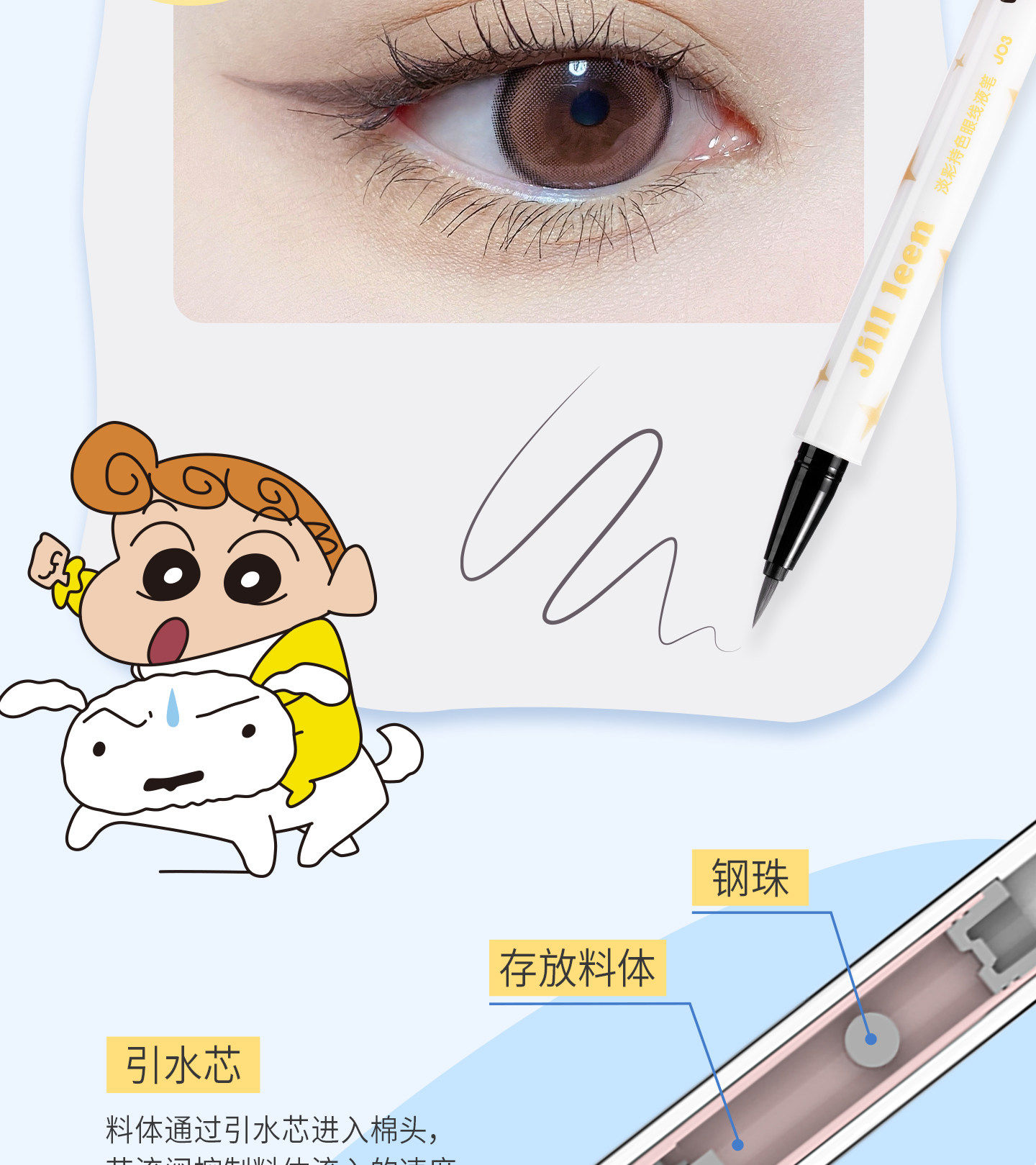 Jillleen Crayon Shin-Chan Collaboration Light Color Long-Lasting Eyeliner Pen That Is Not Easy to Smudge Makeup Eyeliner Pen