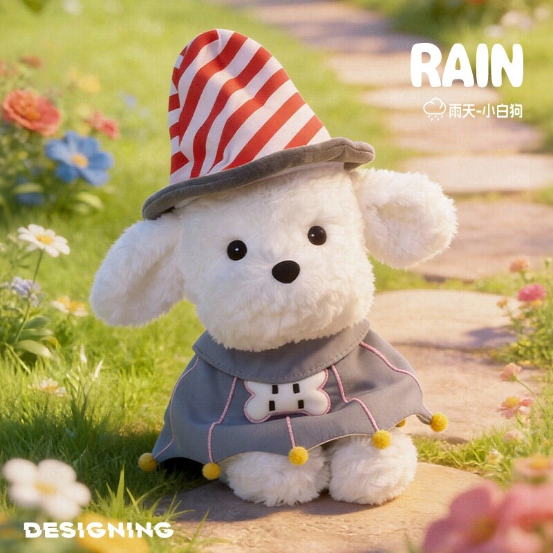 Sort by color Raincoat Series-Puppy Werther-30cm,Rainy Day Series-Purple Polka Dot Hat Puppy-About 31cm,Rainy Day Series-Puppy Chloe-about 25cm,Raincoat Series-Puppy Werther-30cm.,Rainy Day Series-Purple Polka Dot Hat Puppy-About 31cm.