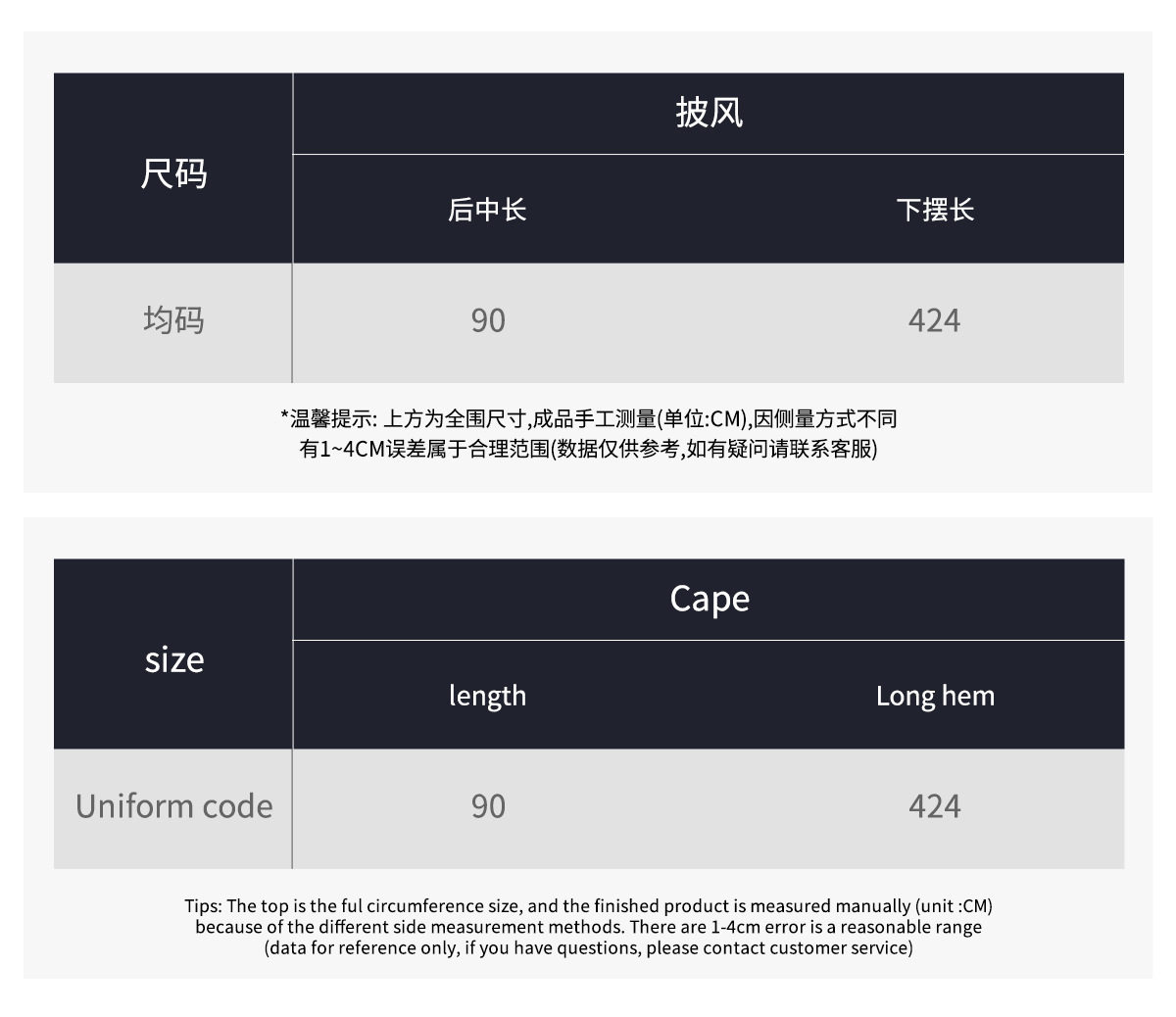 Size (cm) 42 44 46 48 50