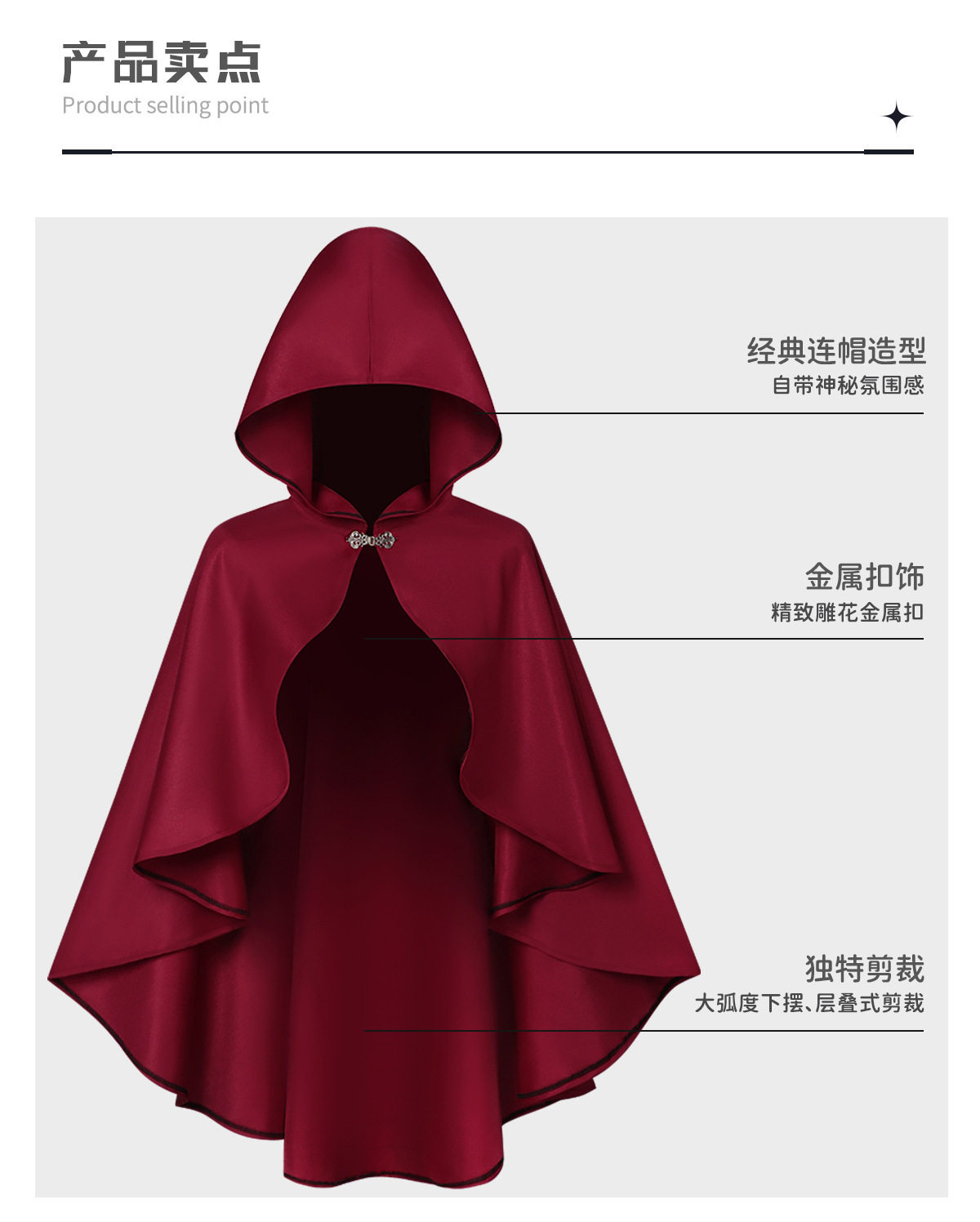 Halloween Retro Cloak Renaissance Period Hooded Cape Adult Medieval Shawl Stage Performance Costume