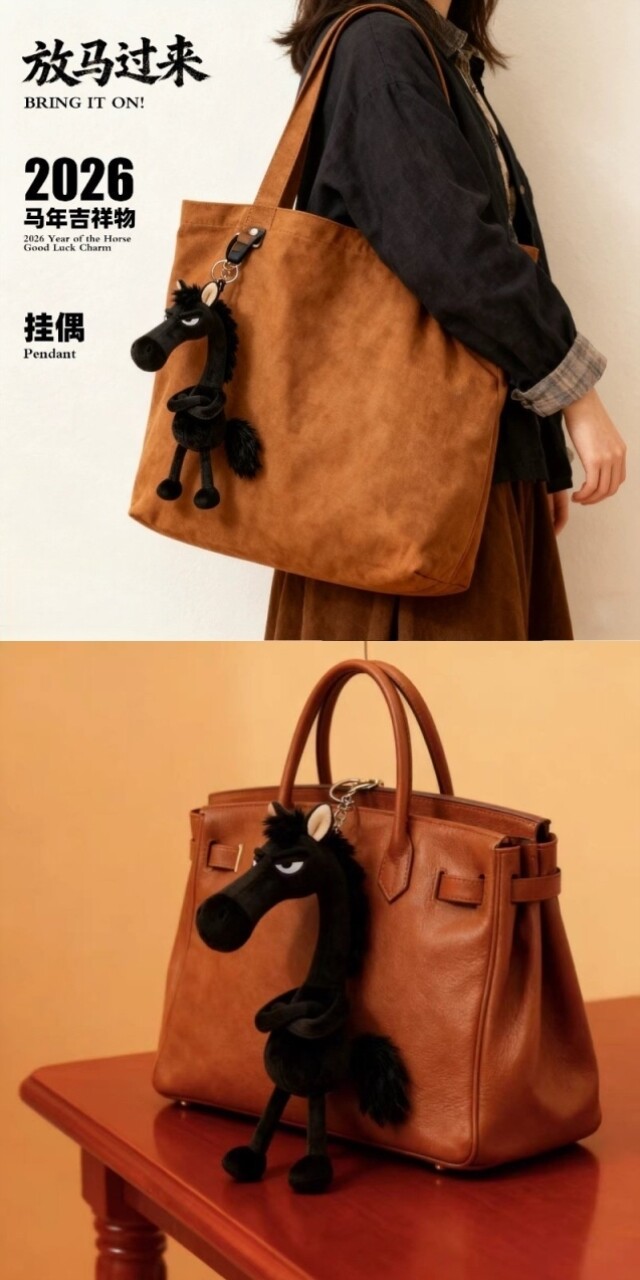 Pony pendant entry door handle door handle protective cover doll Year of the Horse mascot decoration plush pendant bag