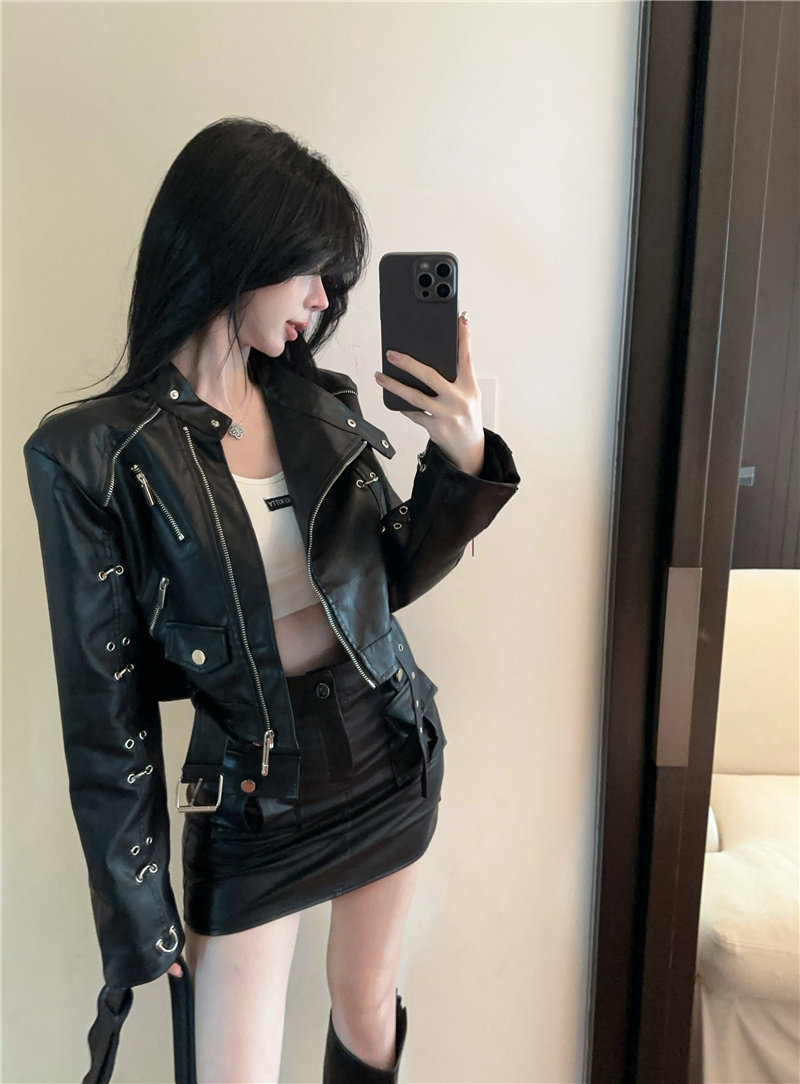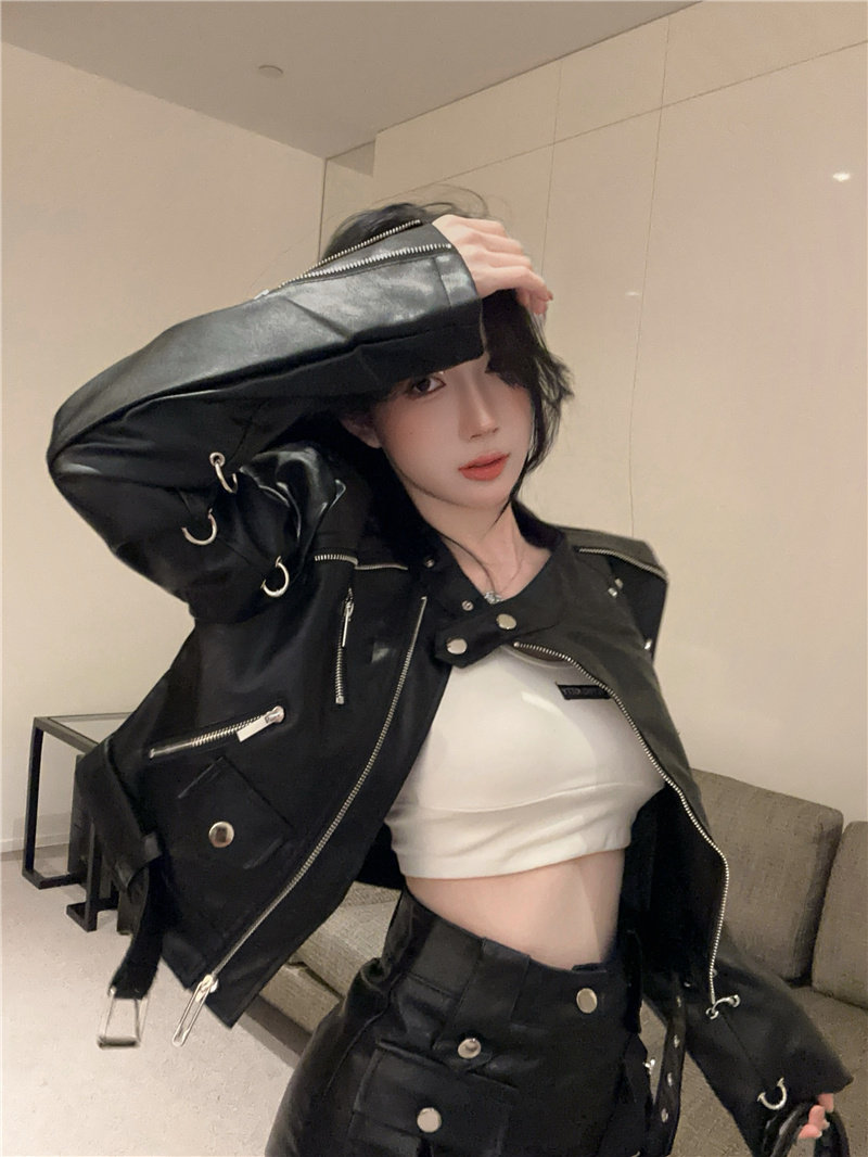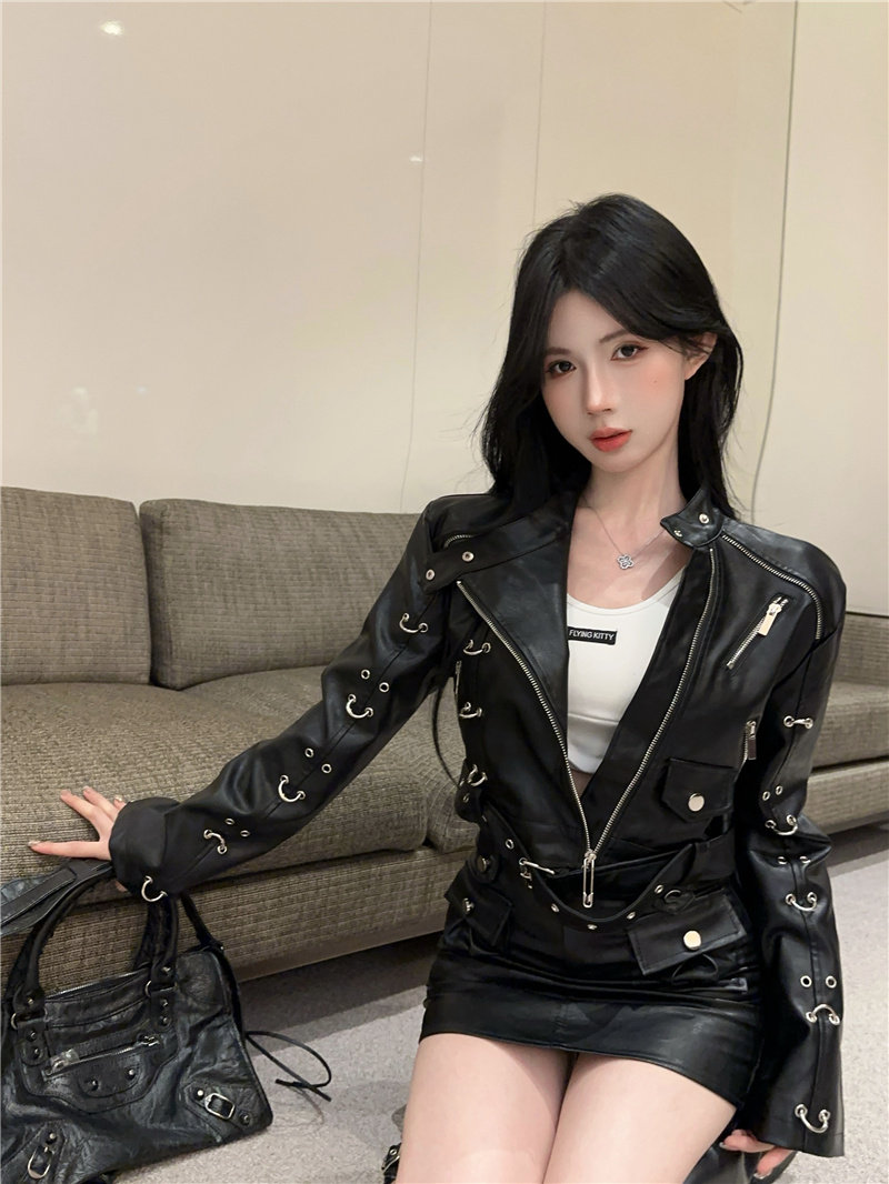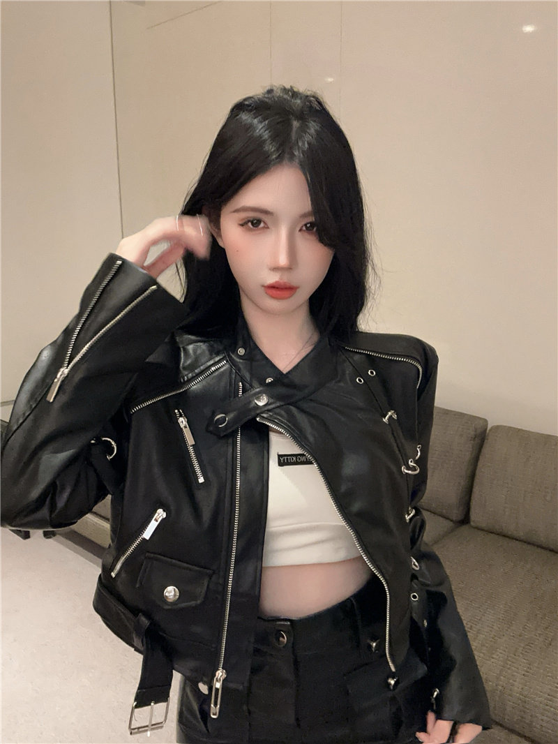Stylish American-Style Biker Jacket with Heavy-Duty Design, 2025 Autumn/Winter New Slim-Fit Leather Jacket for Women