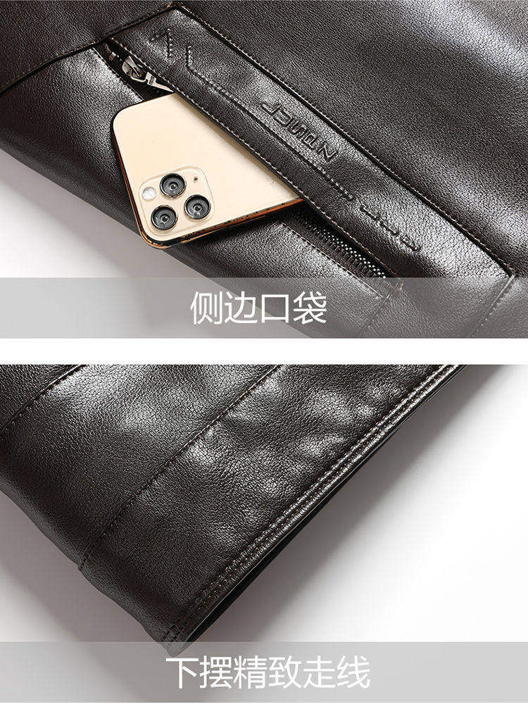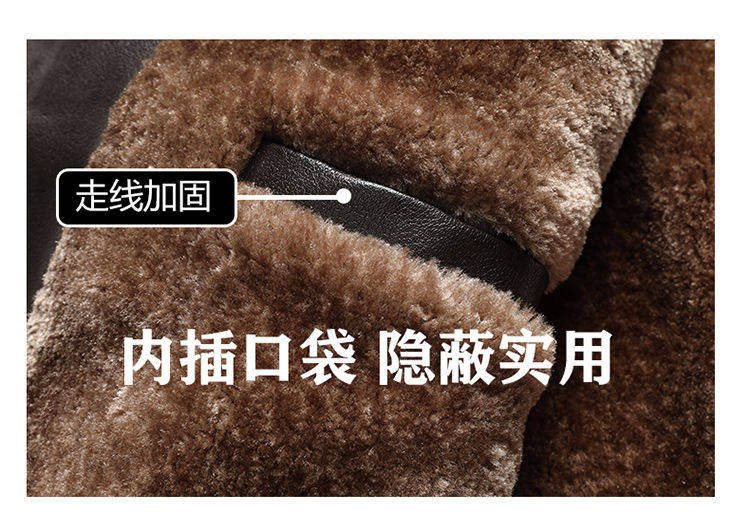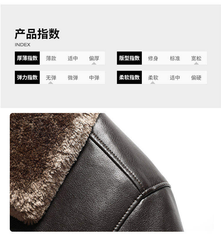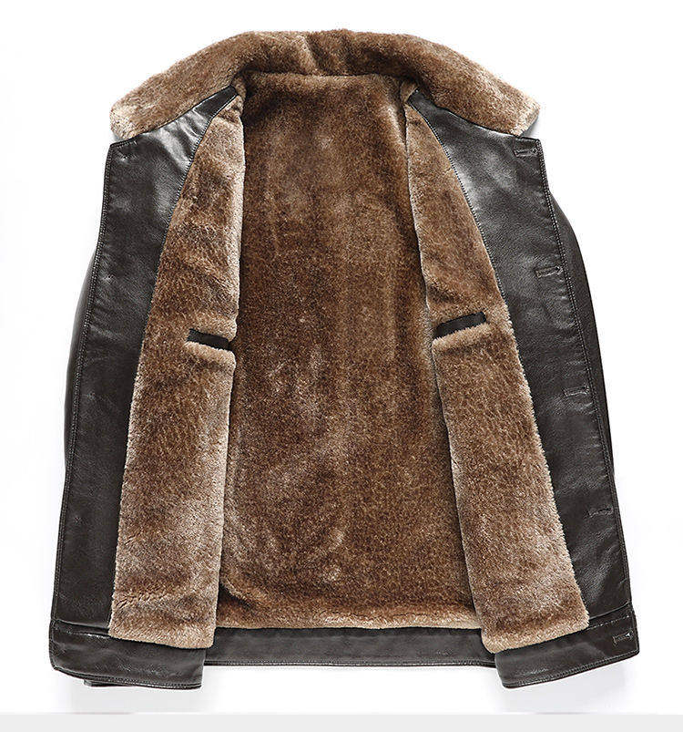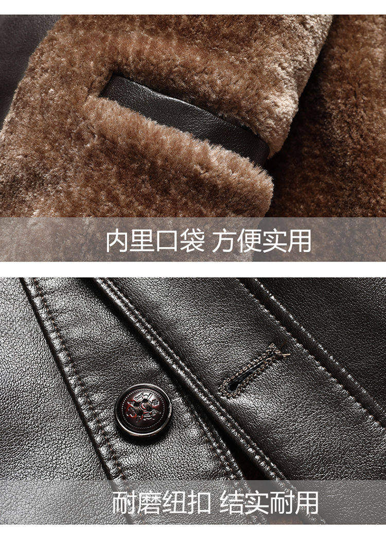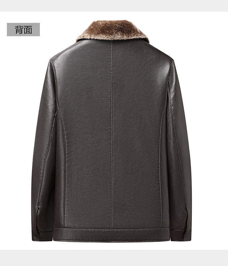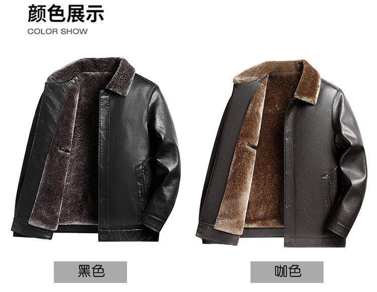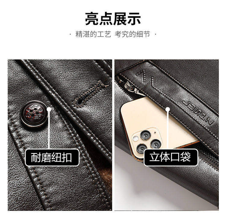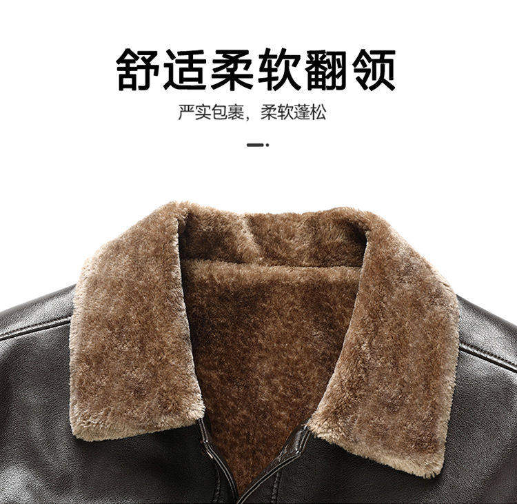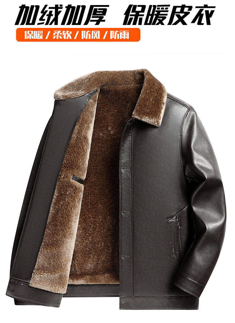 Woodpecker Dad's Leather Jacket Winter Coat with Fleece Lining, Thickened for Middle-Aged Men, Leather and Fur Integrated, Warm Leather Jacket, Casual Style