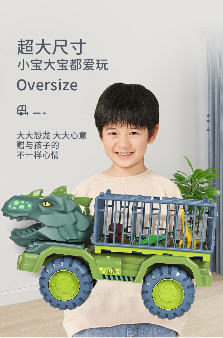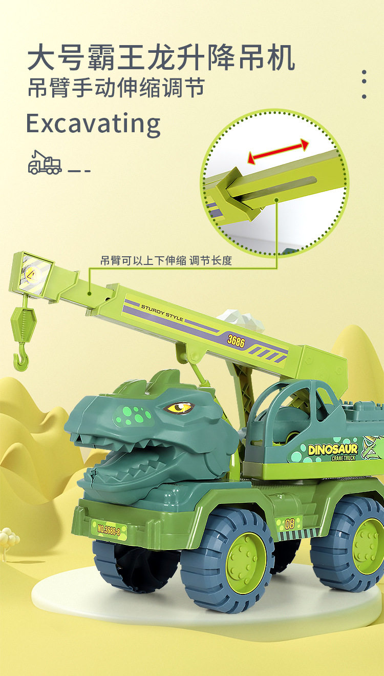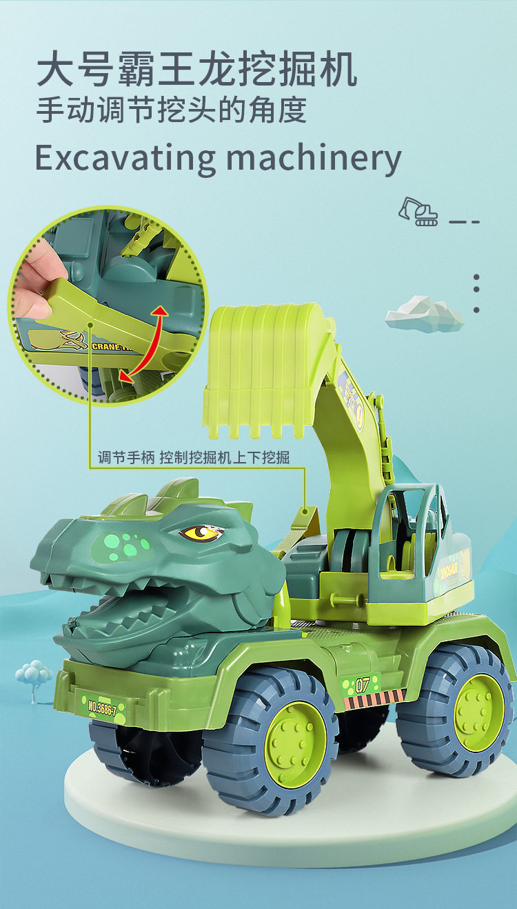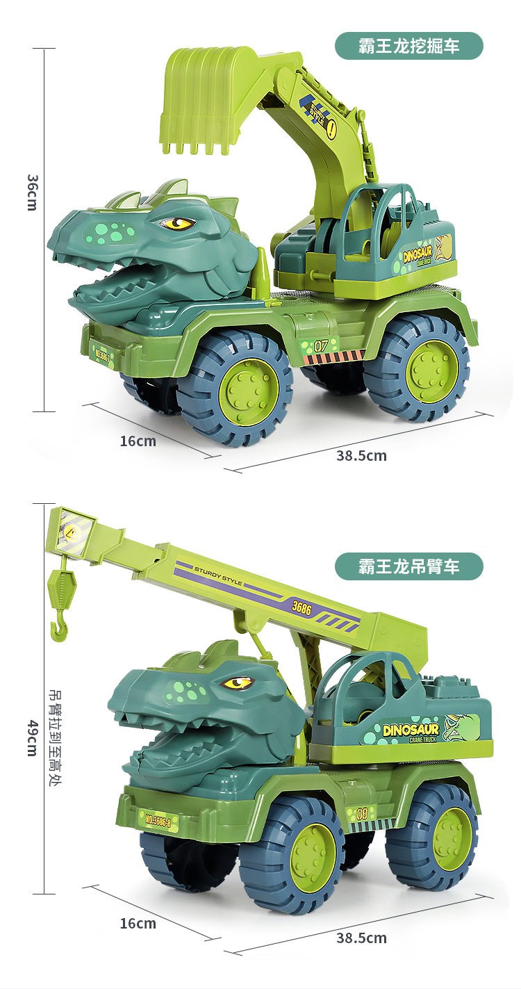 Extra-Large Dinosaur Engineering Children's Toy Car Educational Multifunctional Set for Boys, Including Excavator, Car, and Crane, Durable and Crash-Resistant