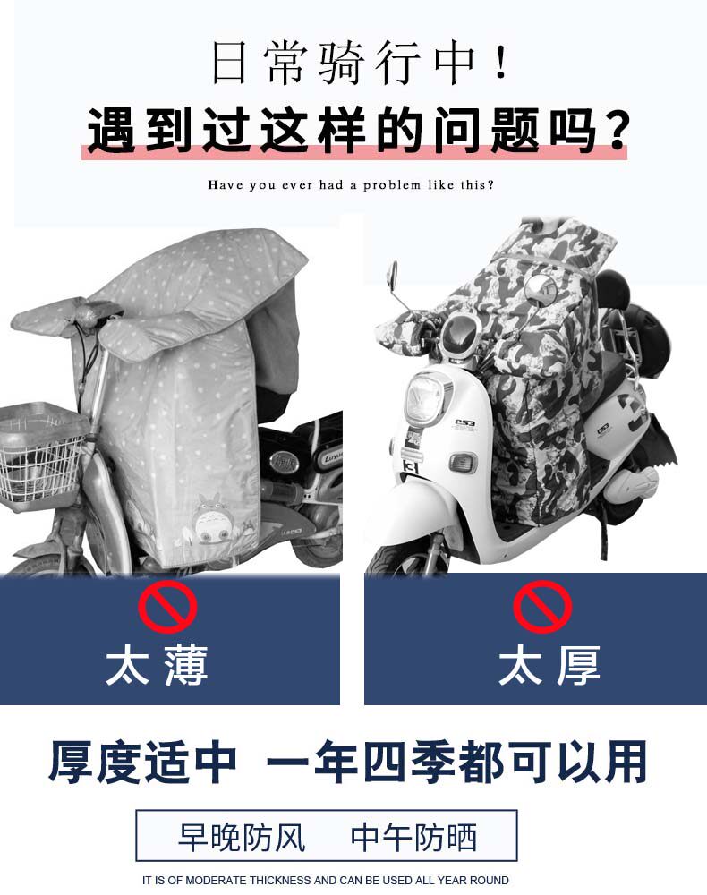Medium-Thickness Split-Type Electric Scooter Windproof Cover with Cartoon Design, Medium-Thickness Cotton for Warmth, Suitable for Small Electric Scooters and Electric Bikes, Universal for All Seasons, Windproof
