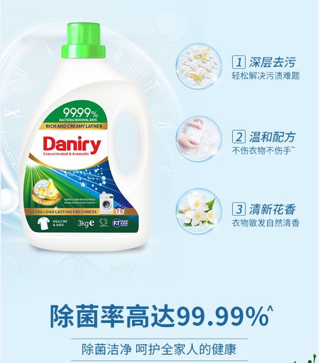 Tinilanya Laundry Detergent 3kg Genuine Fragrance Quick Clean Concentrated Laundry Detergent Deep Stain Removal, Bacteria Removal, Gentle Formula