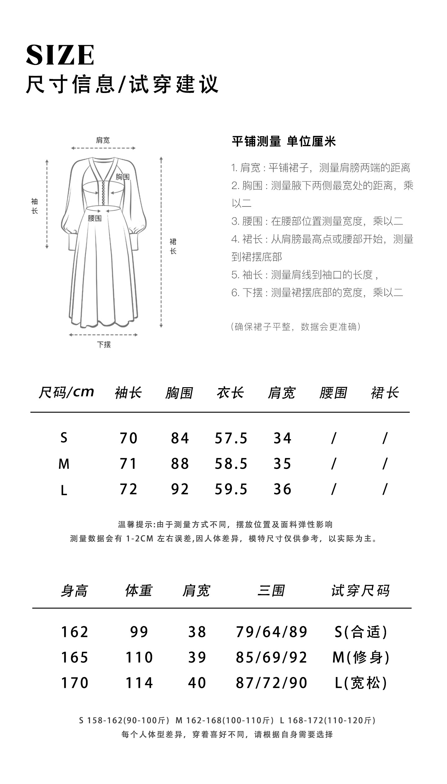 China (cm) 160-165/84-86 165-170 / 88-90 167-172 / 92-96 168-173 / 98-102 170-176 / 106-110