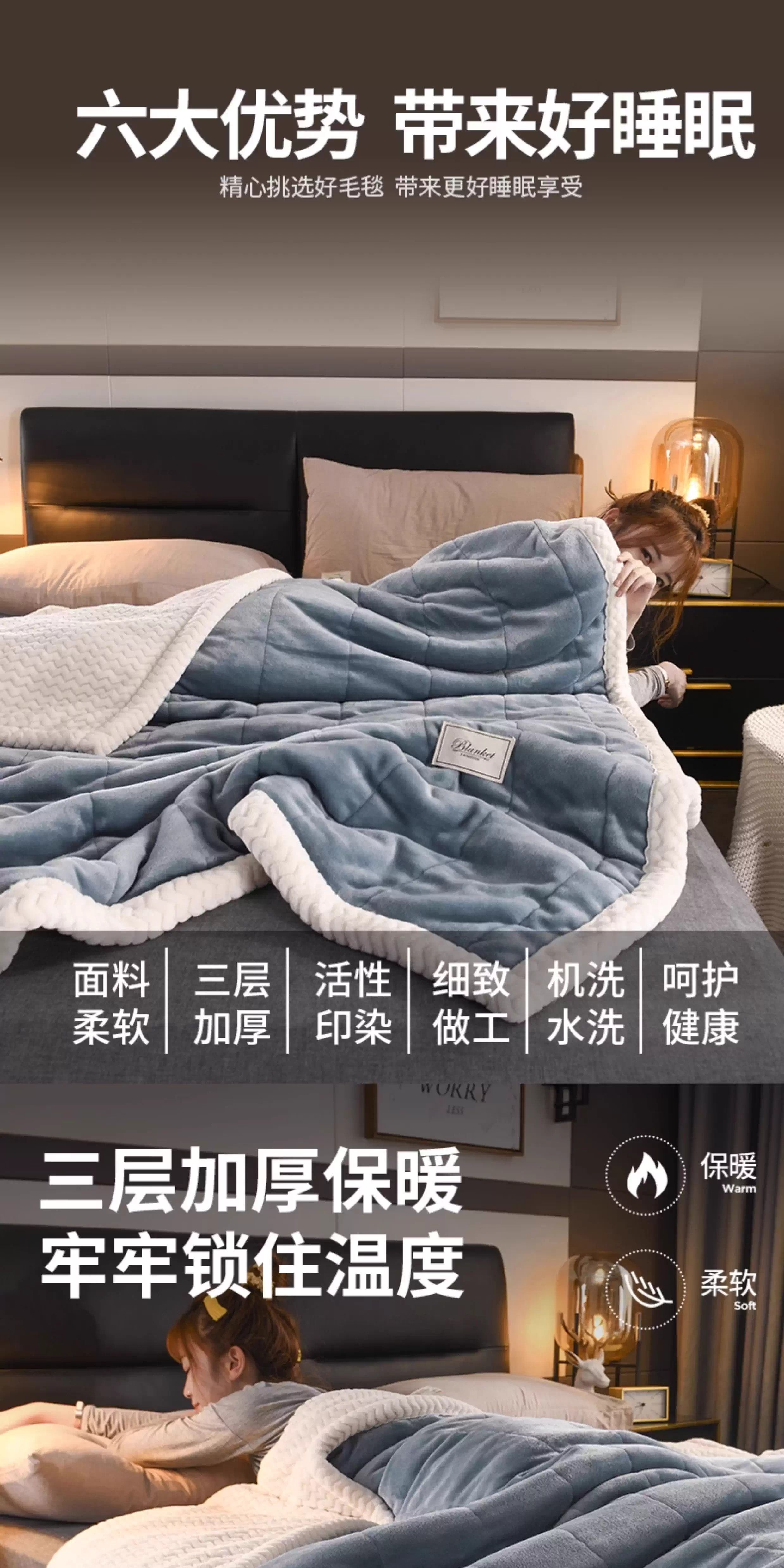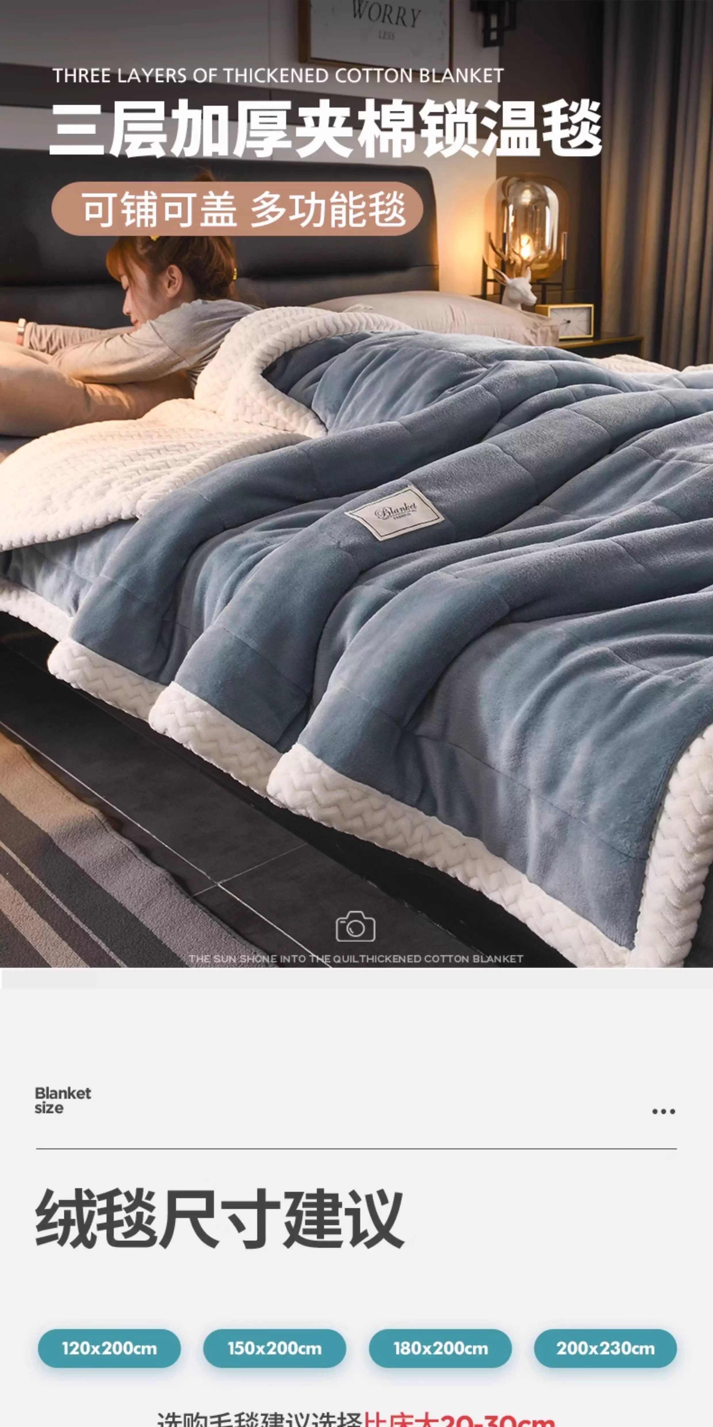 German plush three-layer thickened flannel coral velvet blanket winter warm milk lamb velvet blanket sofa bed cover
