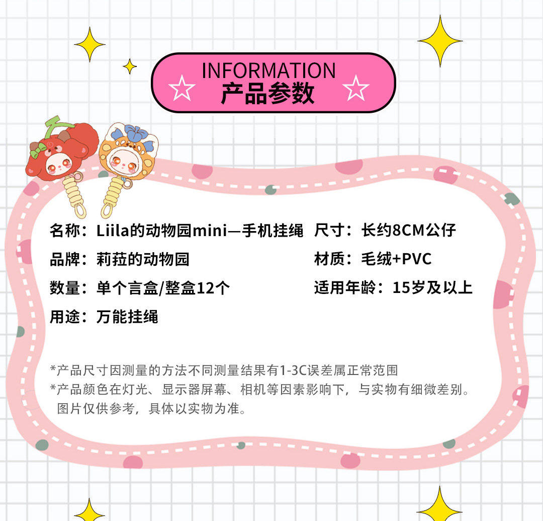 Liila's Zoo Mini Phone Strap Vinyl Plush Blind Box Doll Gift for Three-Year-Old Children