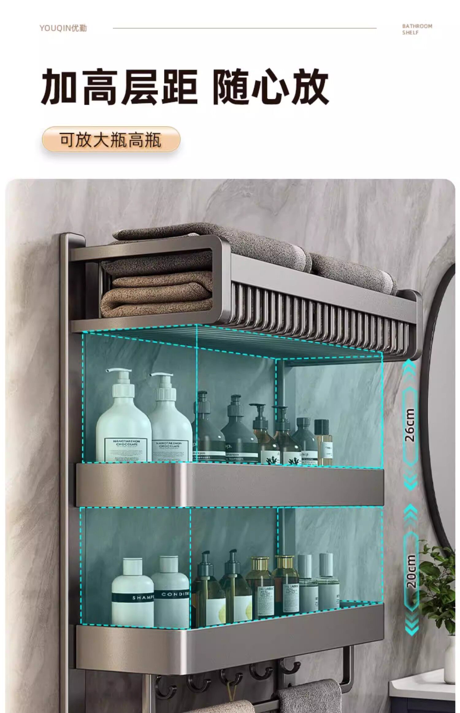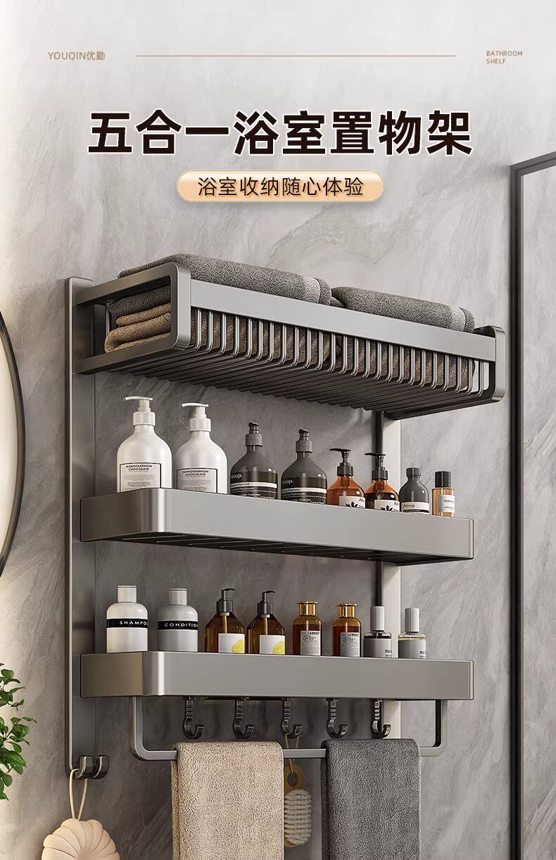 German Seiko towel rack bathroom punch-free storage rack bathroom toilet bathroom shelf space aluminum towel rack