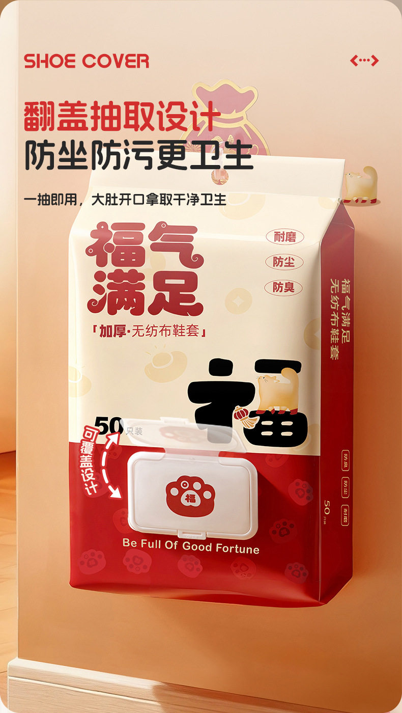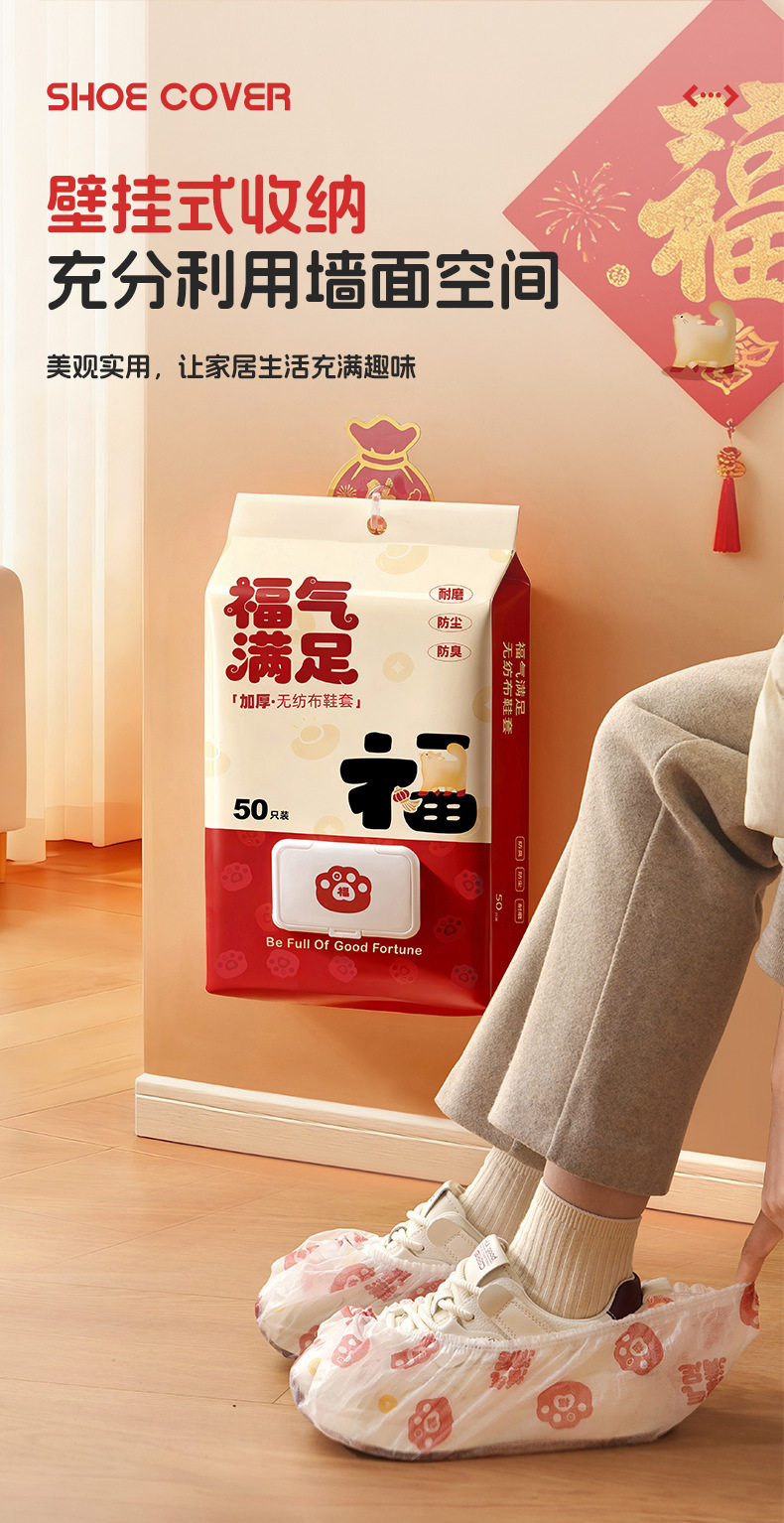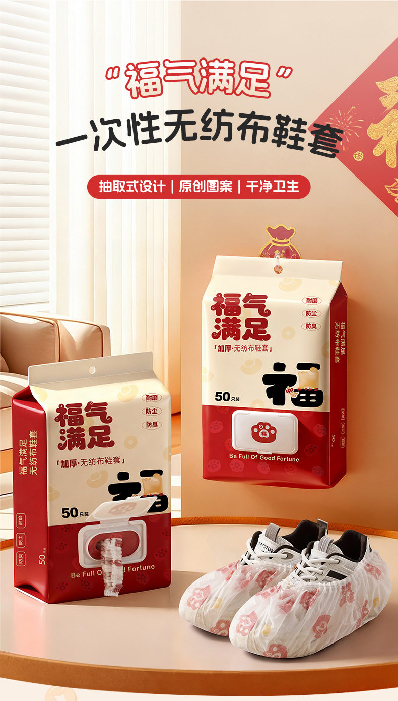 New Year's Good Luck and Blessings Disposable Shoe Covers for Home Use, Indoor Non-Woven Shoe Covers, Ultra-Thick, Wear-Resistant, Non-Slip, Dust-Proof Foot Covers