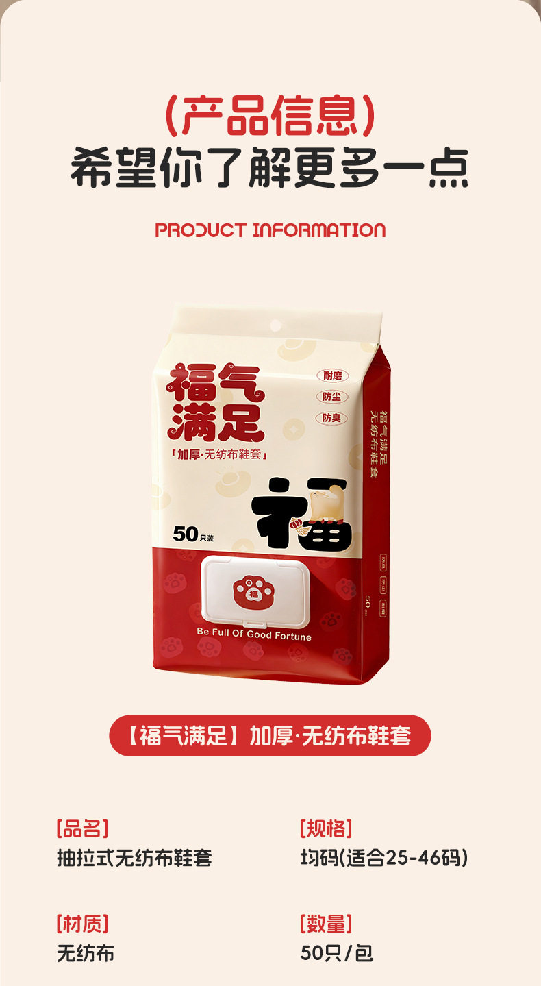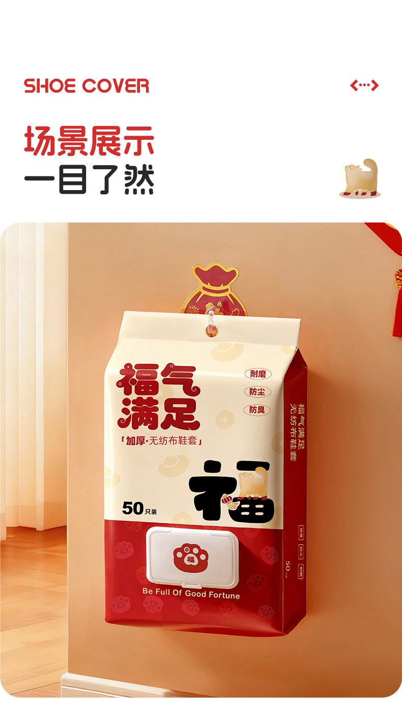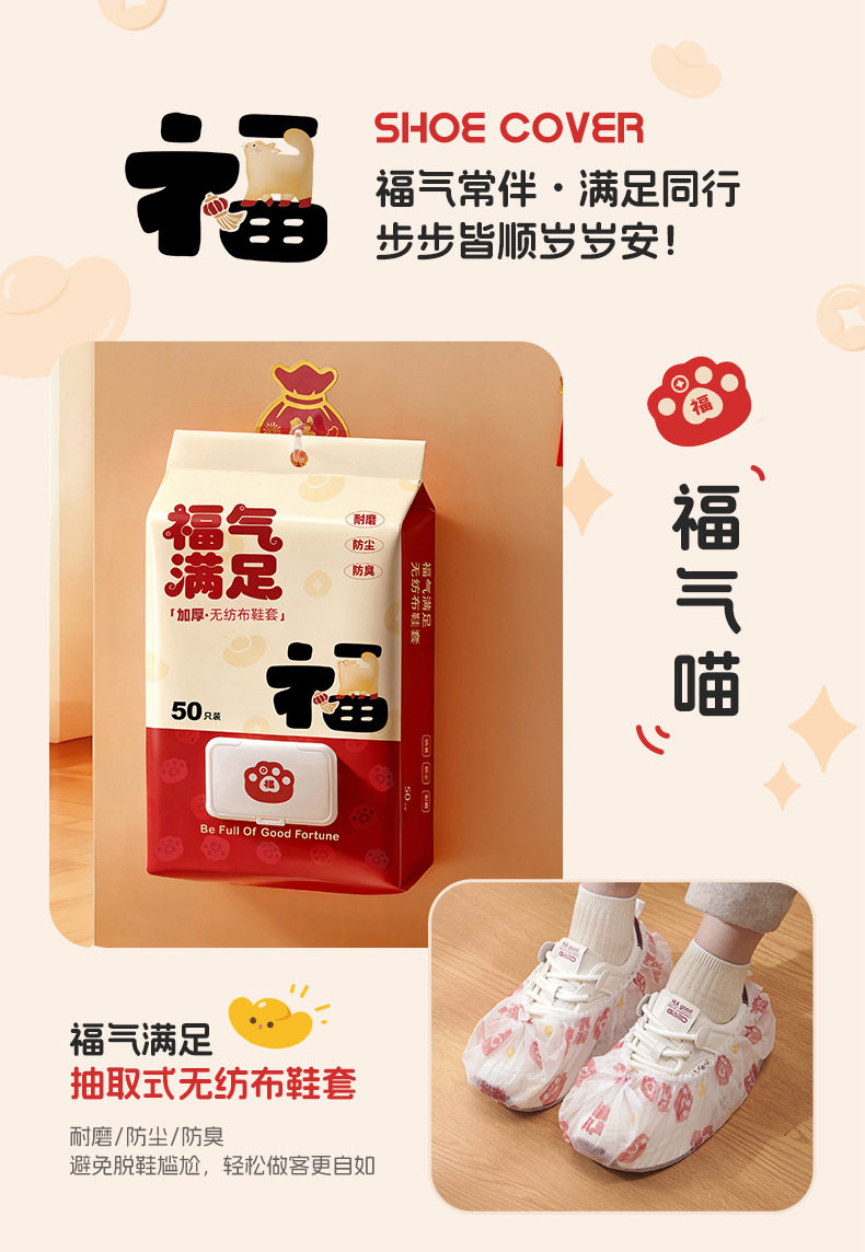 New Year's Good Luck and Blessings Disposable Shoe Covers for Home Use, Indoor Non-Woven Shoe Covers, Ultra-Thick, Wear-Resistant, Non-Slip, Dust-Proof Foot Covers