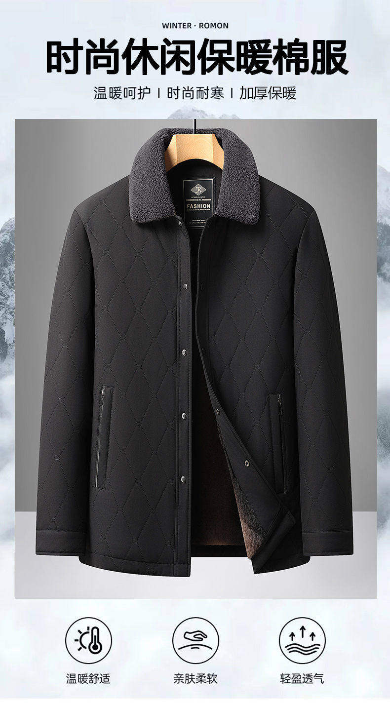 Woodpecker Men's Thickened Velvet Warm Cotton Clothes Middle-aged Dad's Home Padded Clothes Grandpa Winter Clothes Padded Jacket