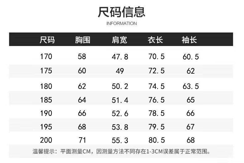 China (cm) 165 / 88-90 170 / 96-98 175 / 108-110 180 / 118-122 185 / 126-130
