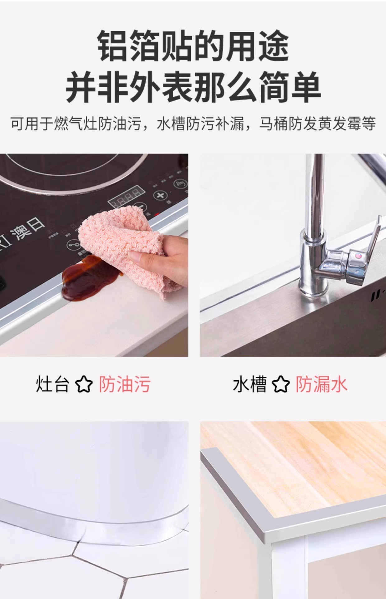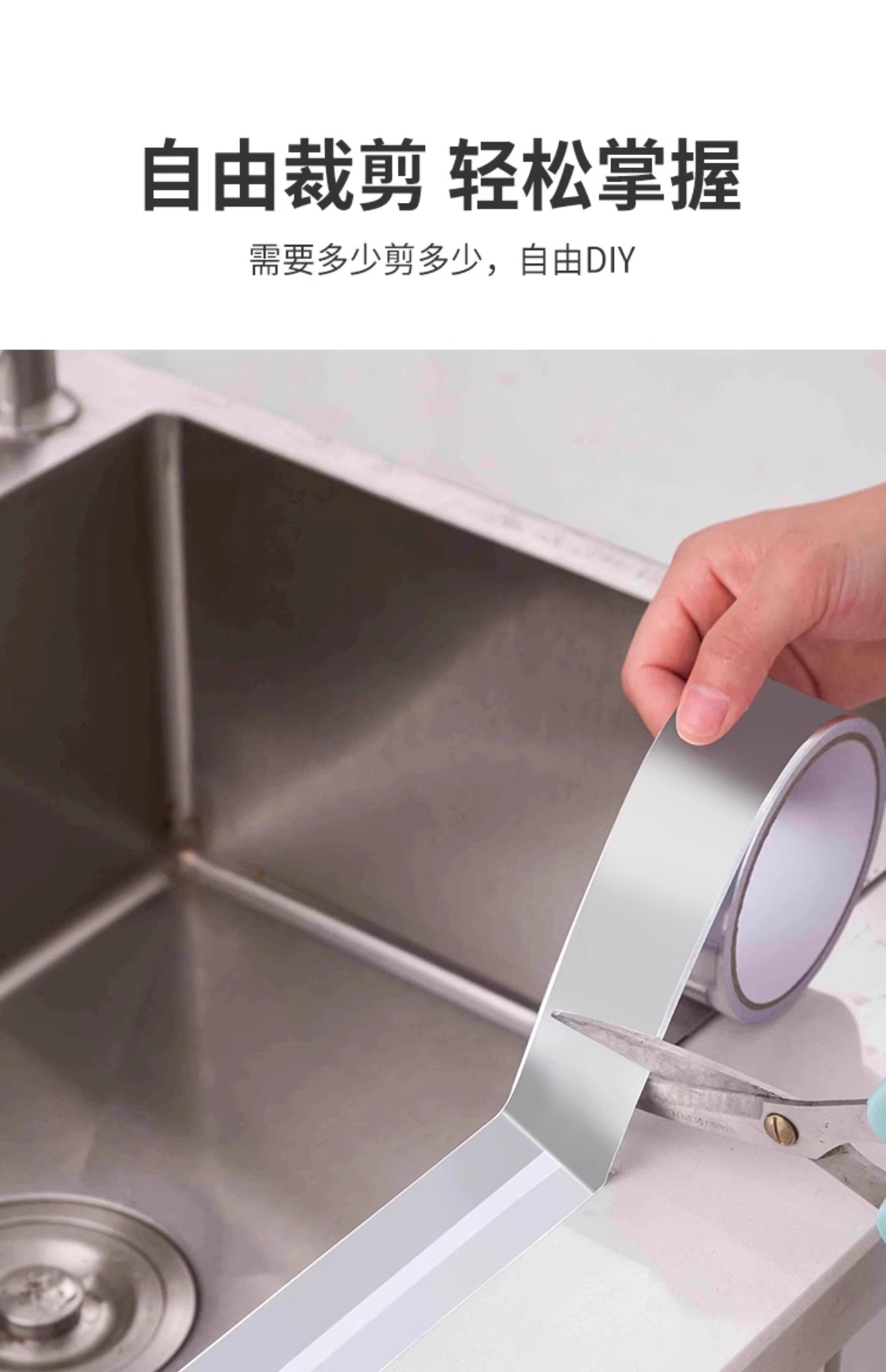 Waterproof Seam Tape for Kitchen Sink, High-Temperature Resistant Aluminum Foil Tape for Stove, Water Barrier Sealing Strip for Sink, Mold-Proof