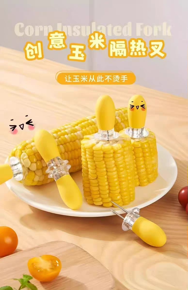 Creative Anti-Scalding Corn Forks for Kids, Non-Stick Corn Eating Tool, Cute Barbecue Skewers for Eating Sweet Potatoes and Fruits