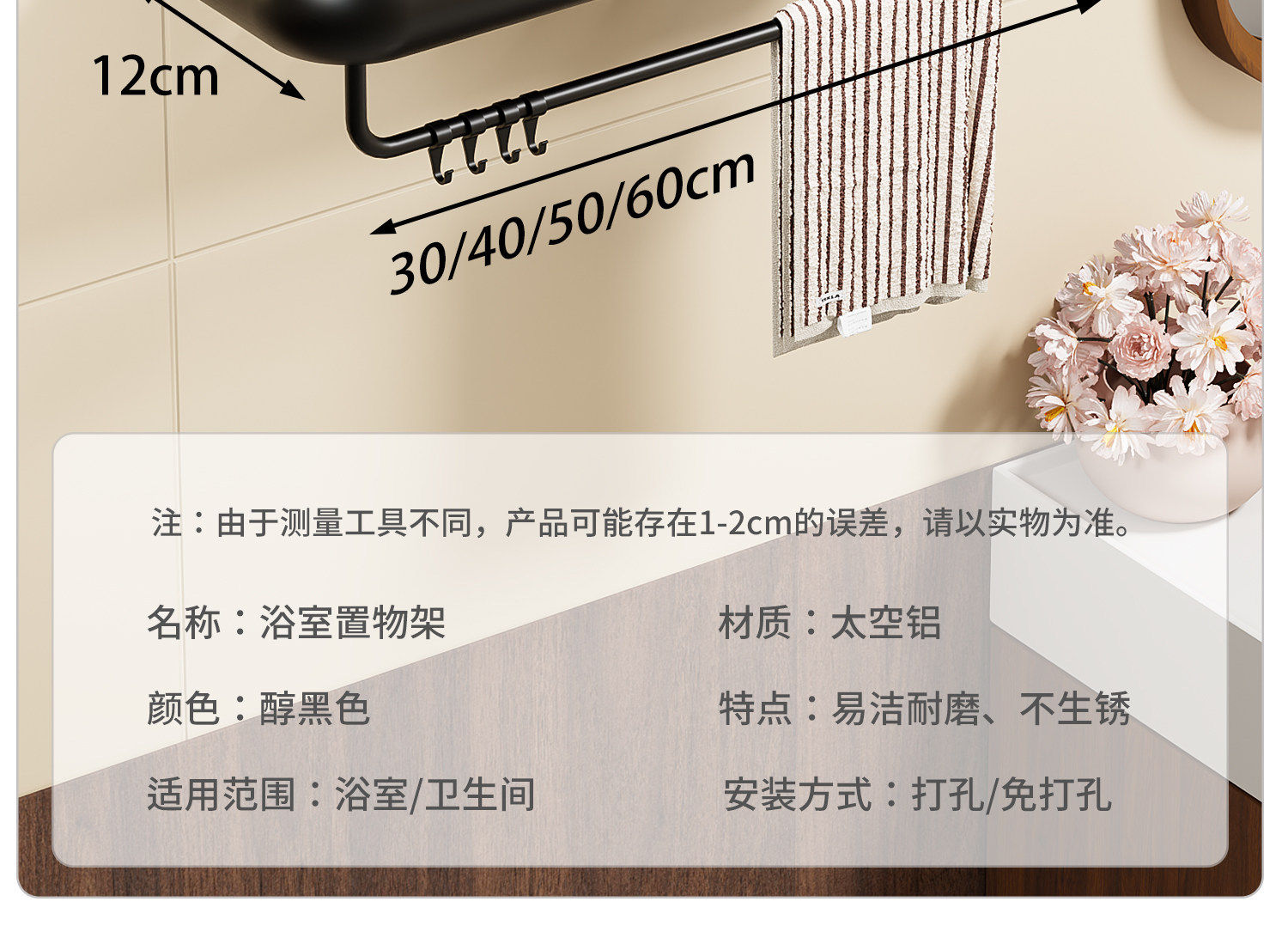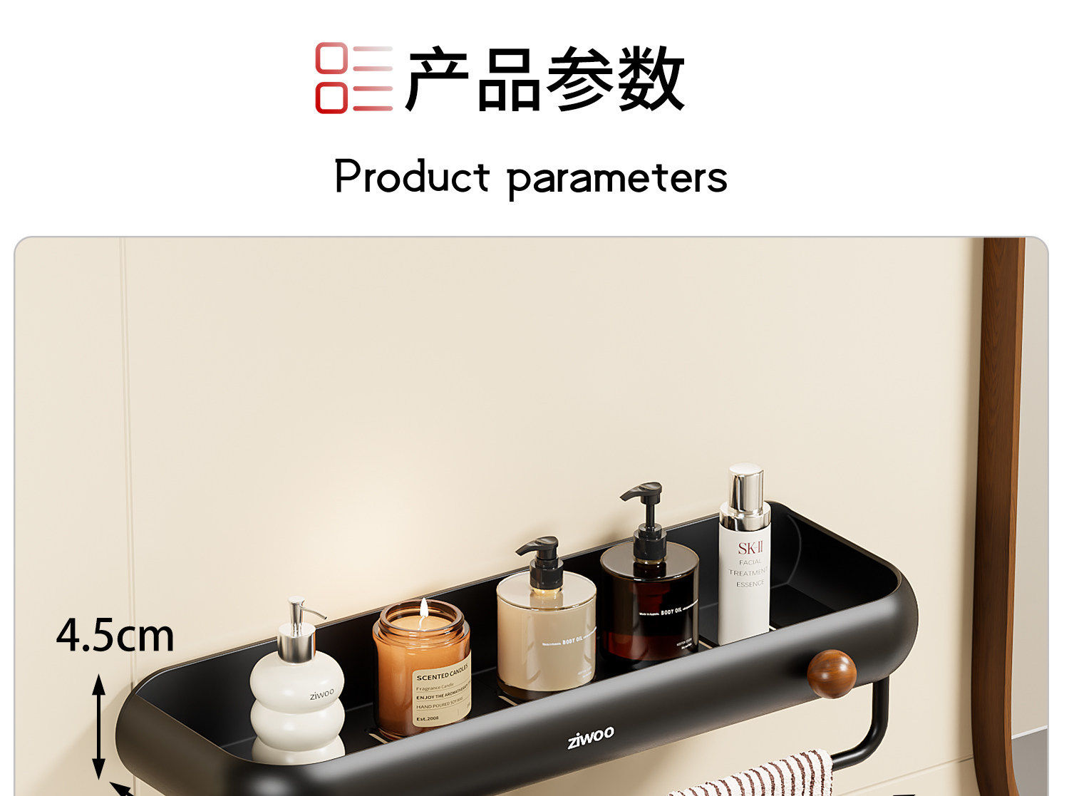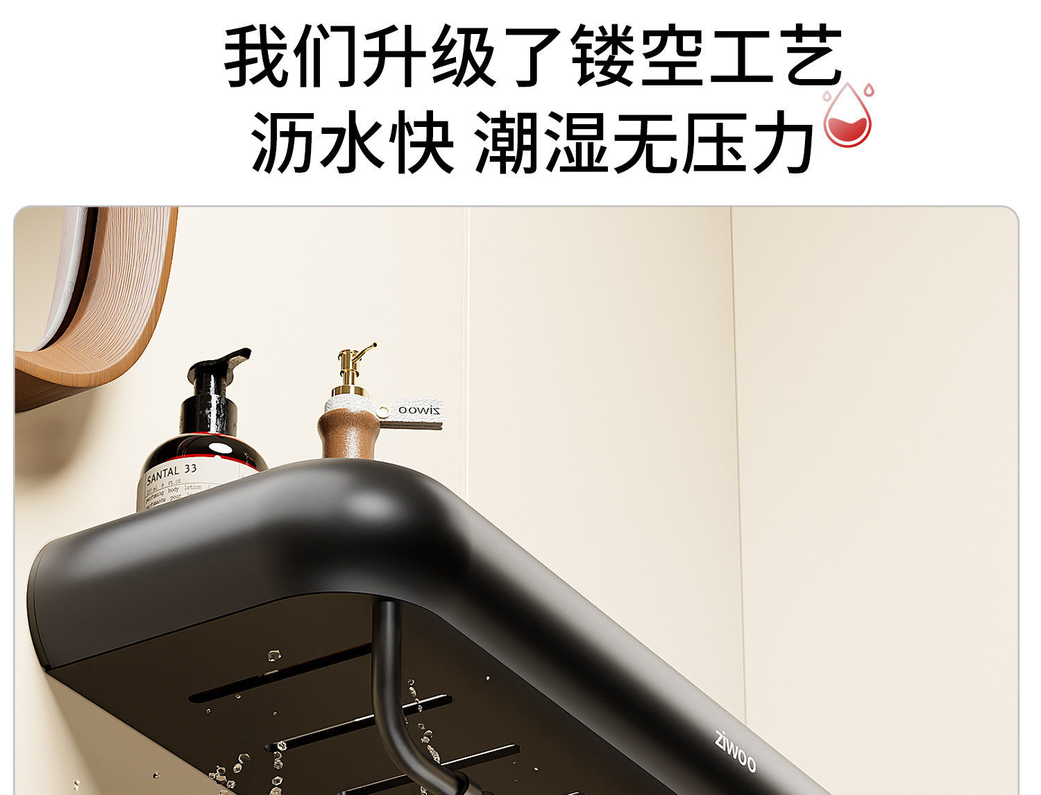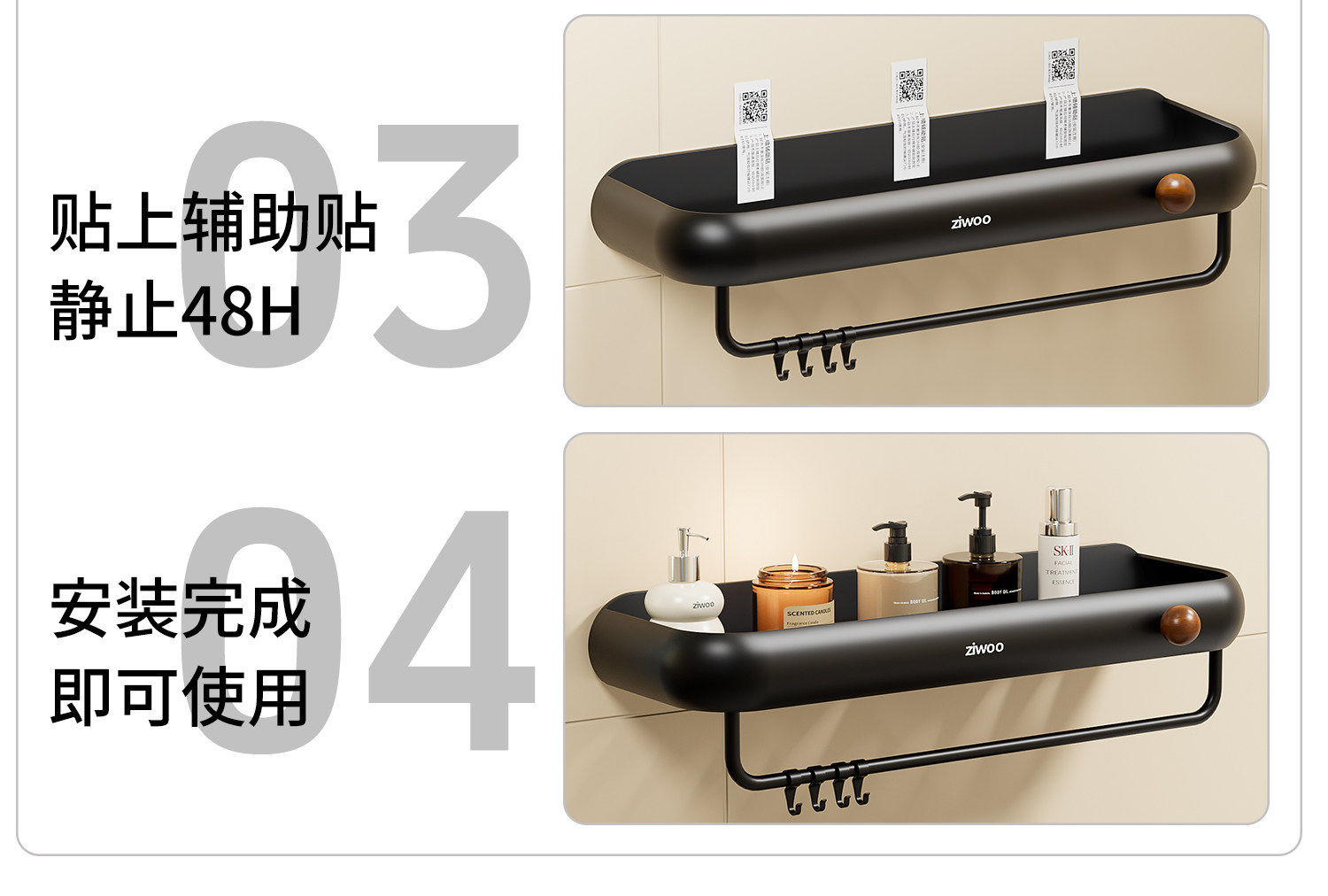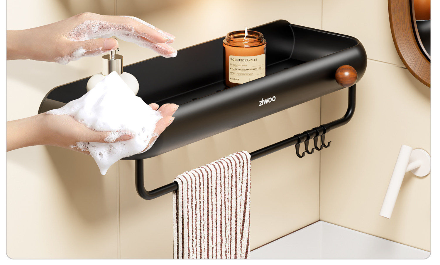 French Ziwoo Vintage-Style Bathroom Storage Rack, Wall-Mounted, No-Drill Storage Shelf for Bathroom, Toilet, and Shower