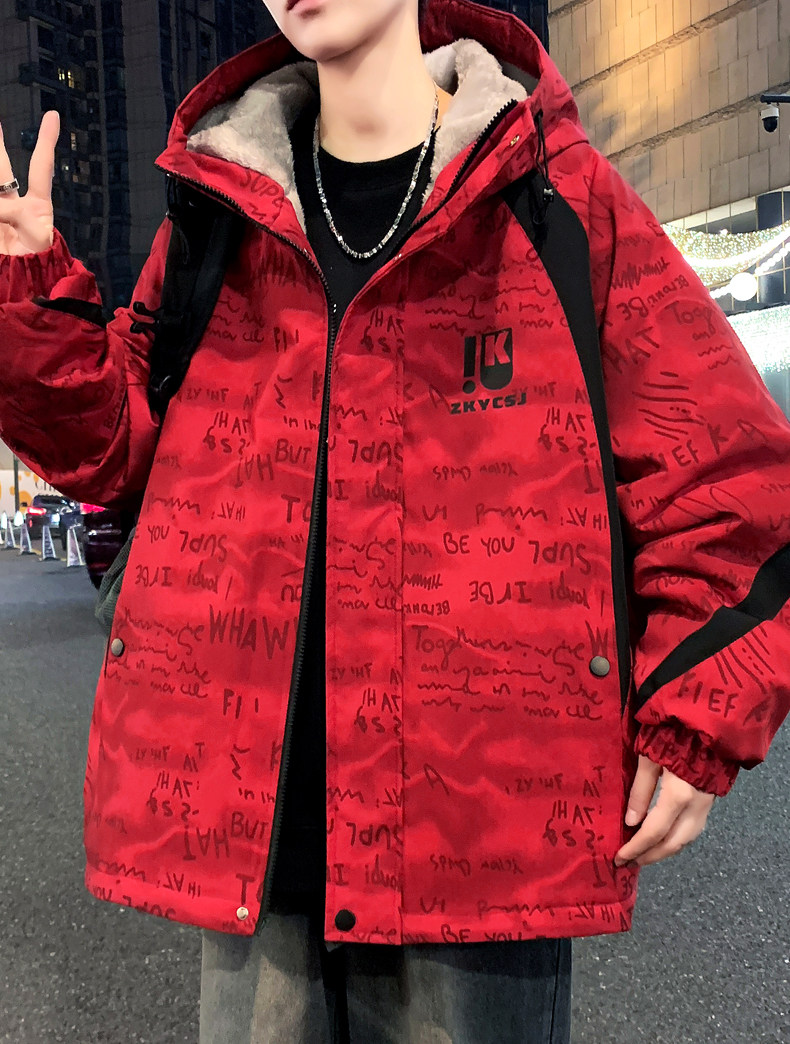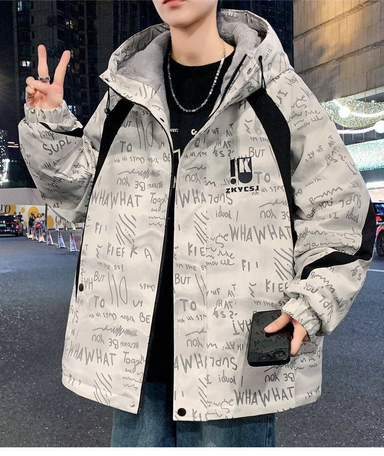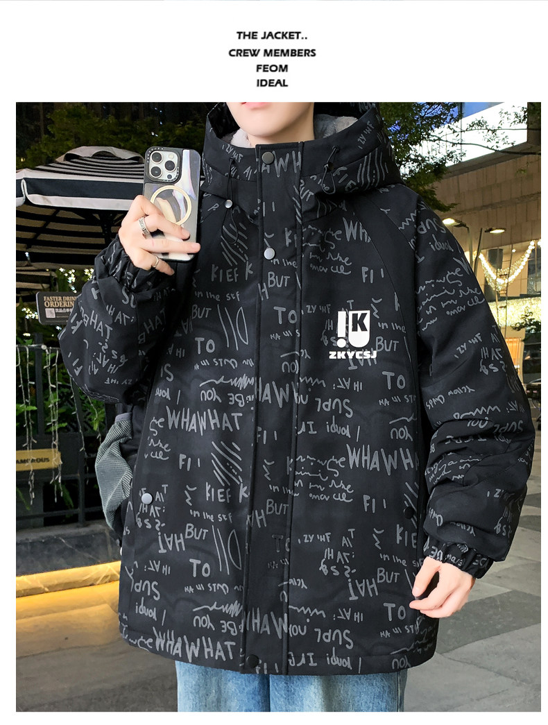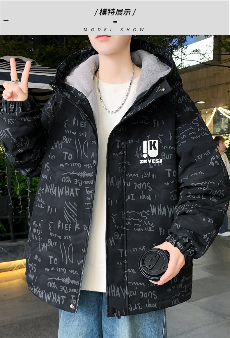 Winter Coat for Men, Fleece-Lined and Thickened, 2025 New Style, Hooded Jacket, Loose Fit, High-End Feel, Stylish and Cool, Warm and Cold-Resistant Cotton Clothing