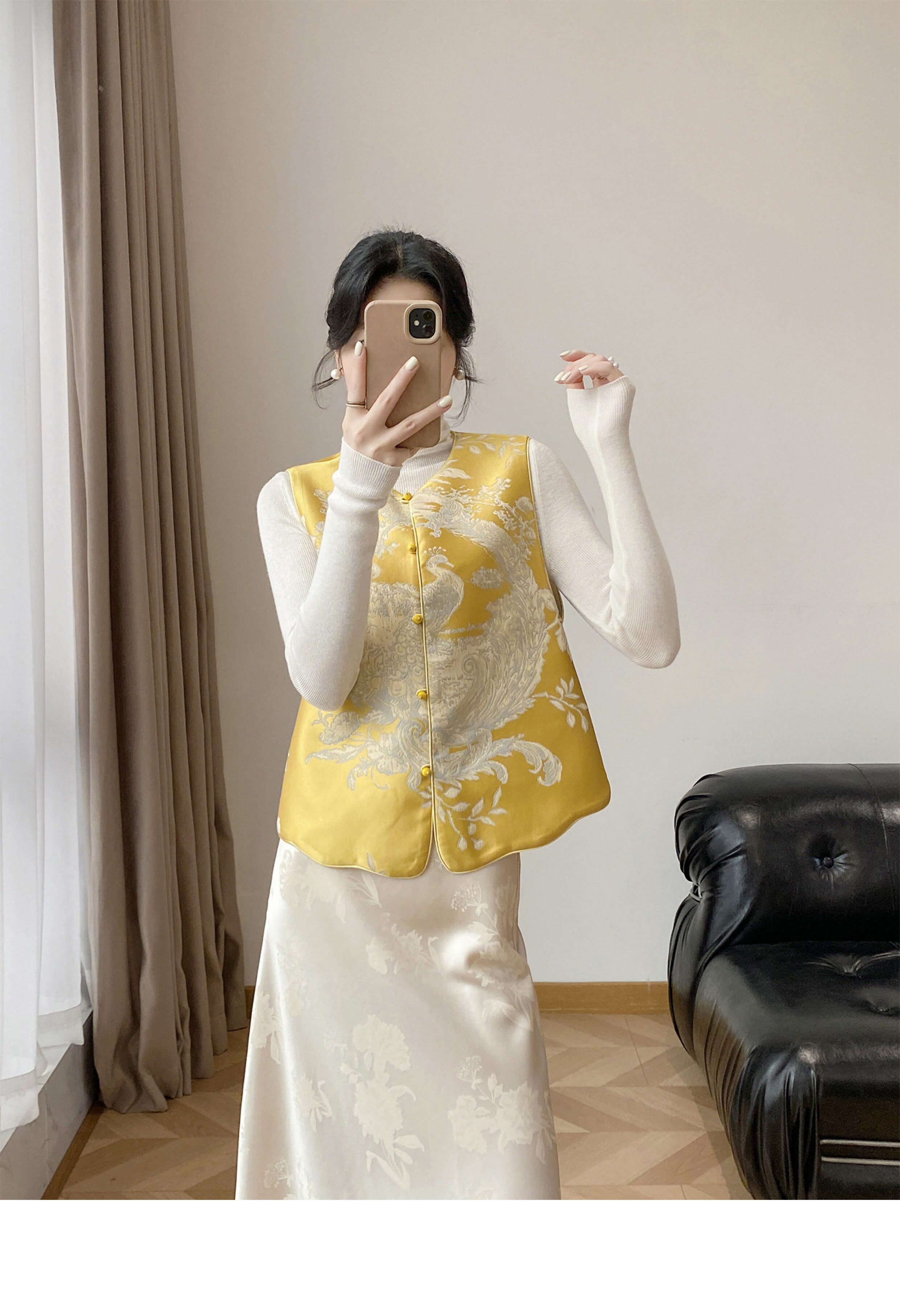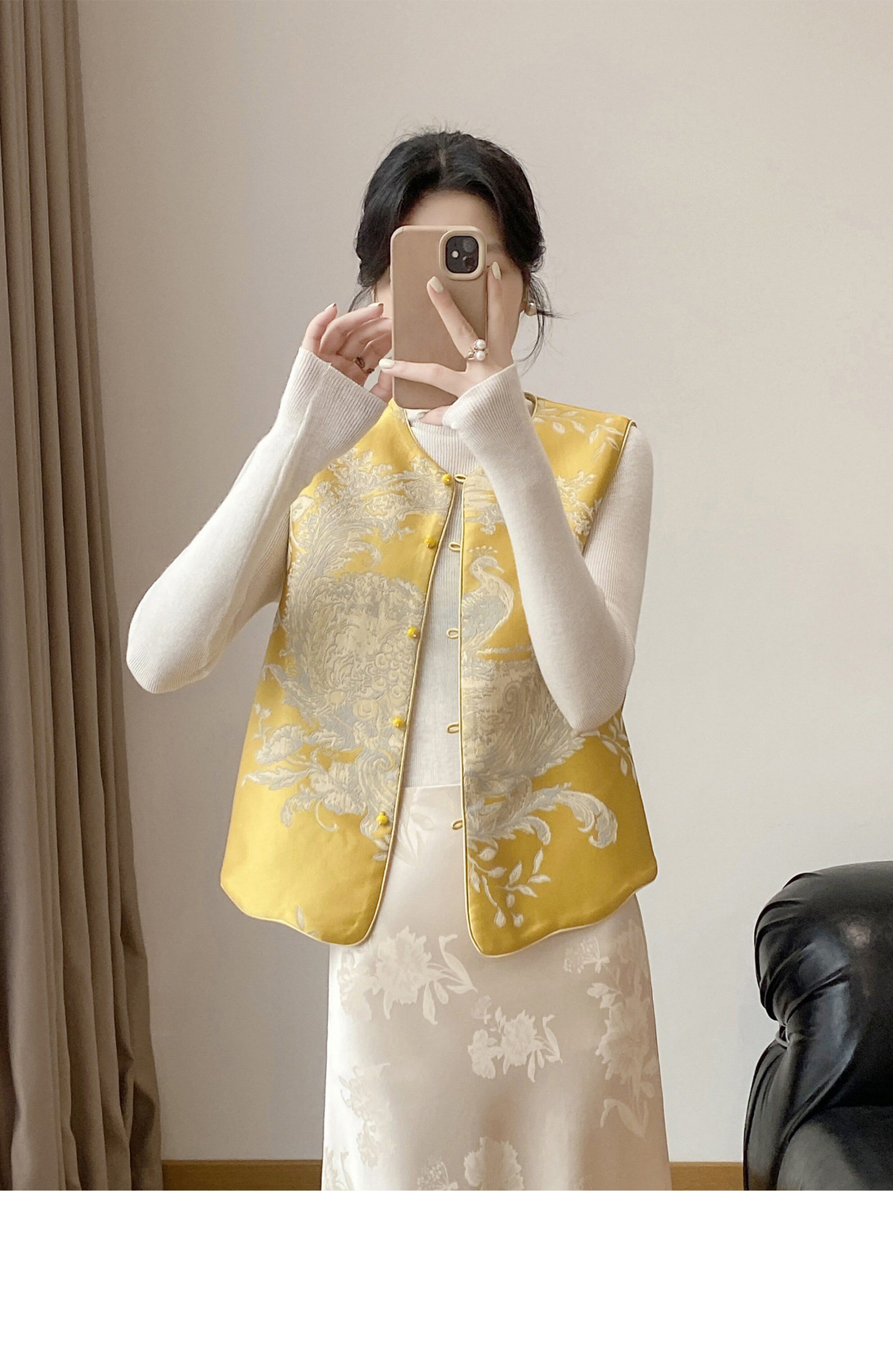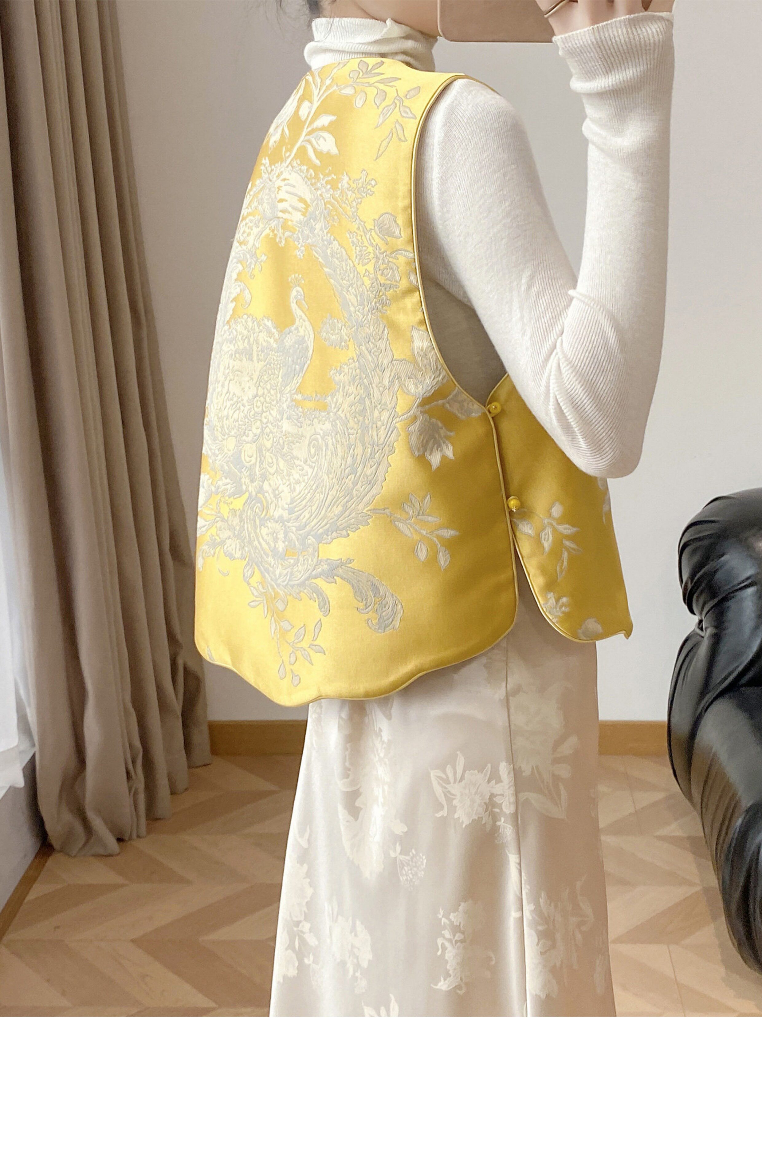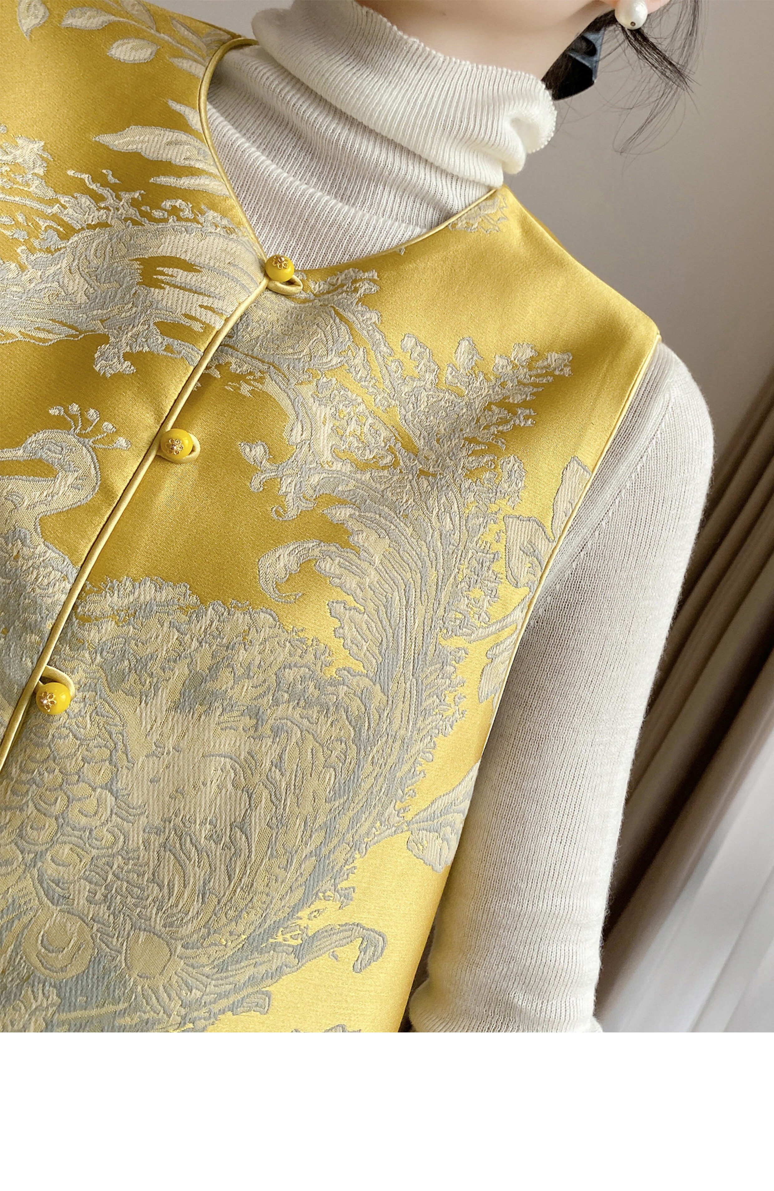 Lingze X Double-Sided Wear 2026 Early Spring New Style New Chinese Style National Style Song Brocade Silk Jacquard Yellow Vest for Women