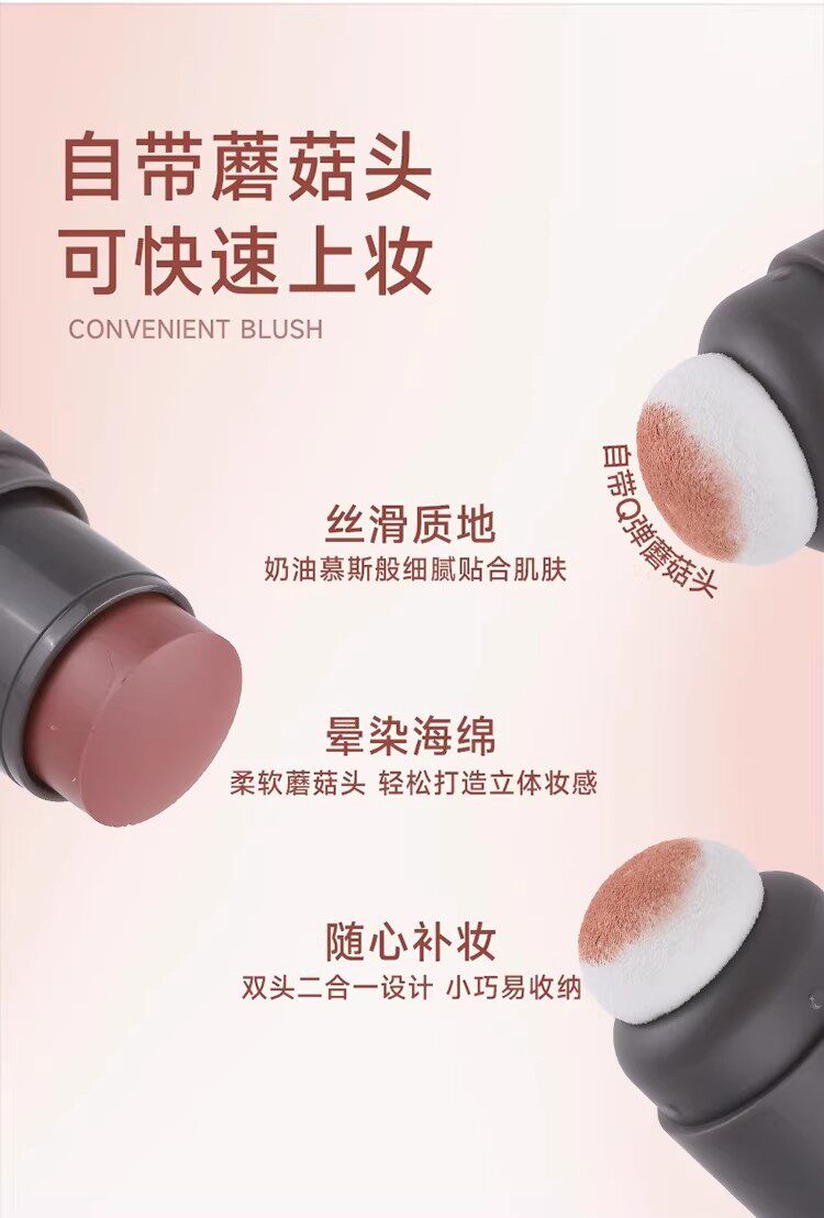 Double-headed blush stick dual-use new lazy waterproof and sweat-proof mud paste sponge rouge female elderly multi-purpose two-in-one