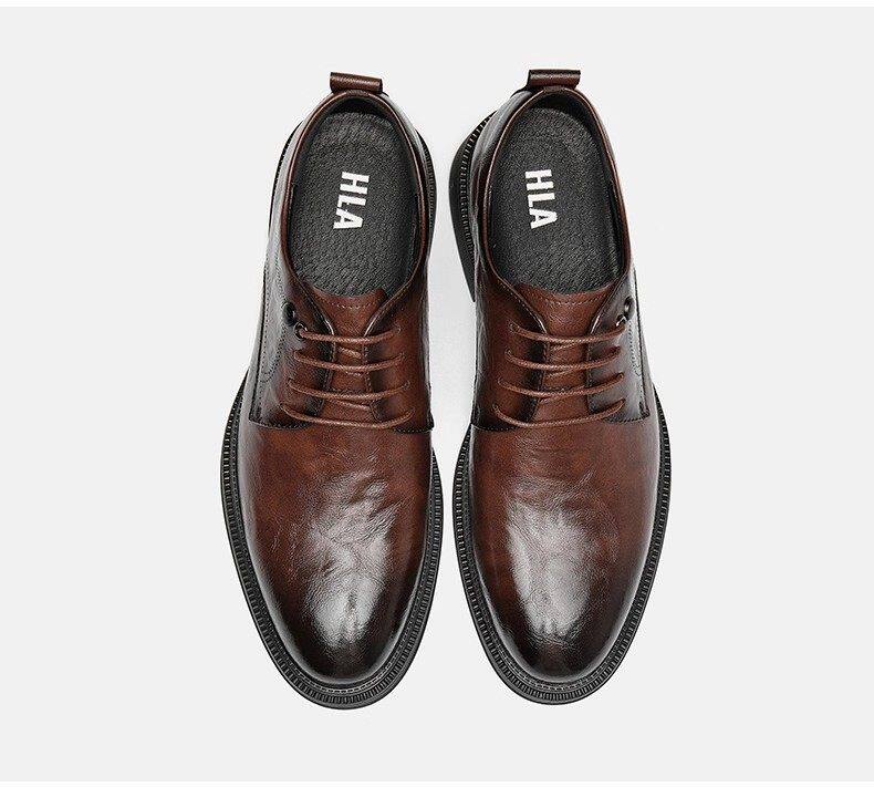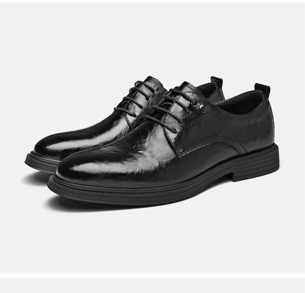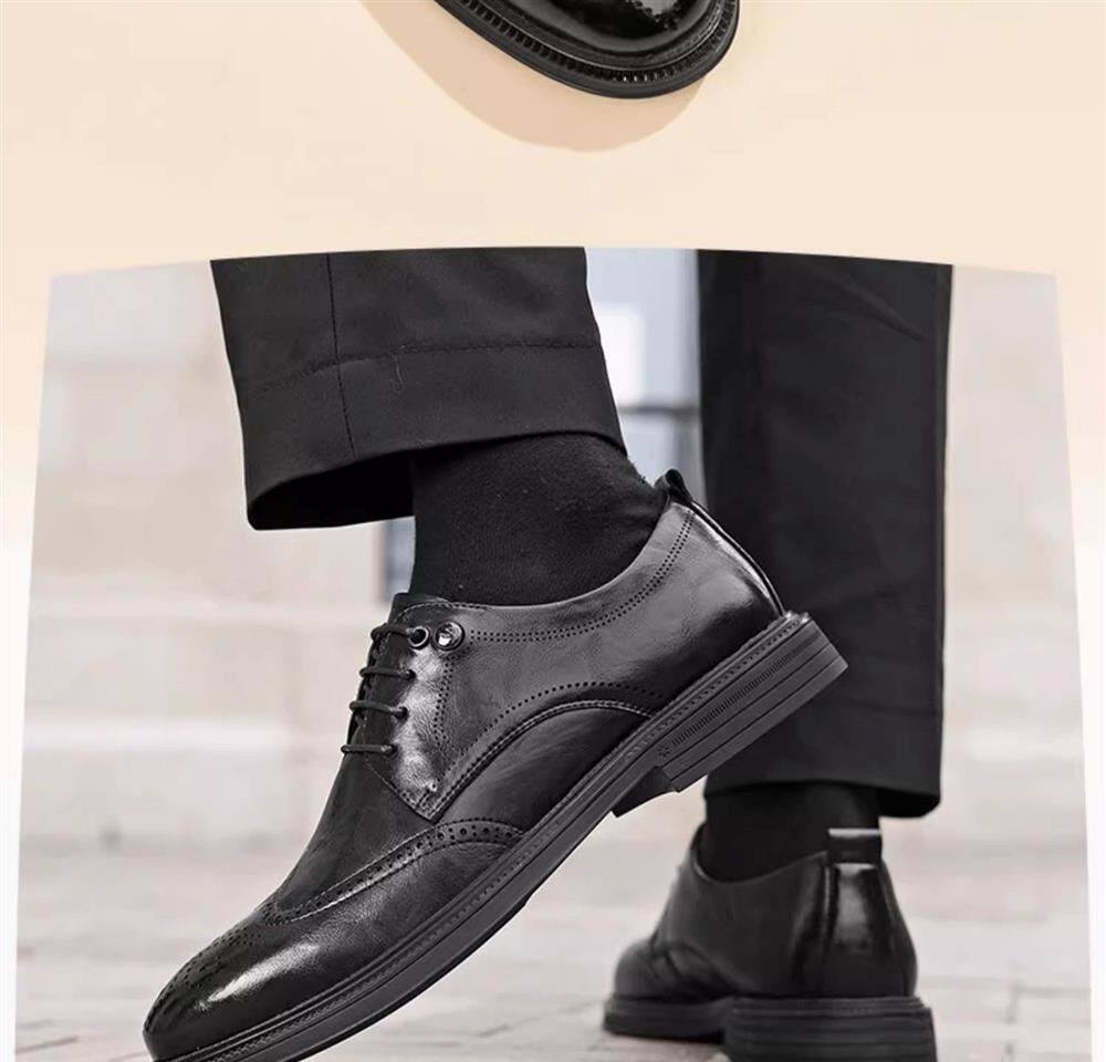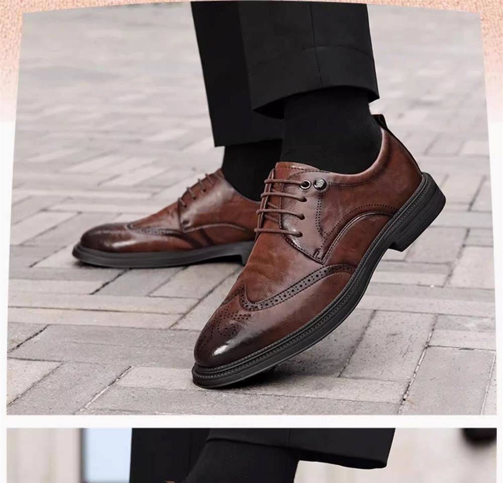Hailan Home Men's Genuine Leather Business Casual Shoes, Brown Men's Shoes with 8cm Height Increase, Groom's Wedding Derby Shoes