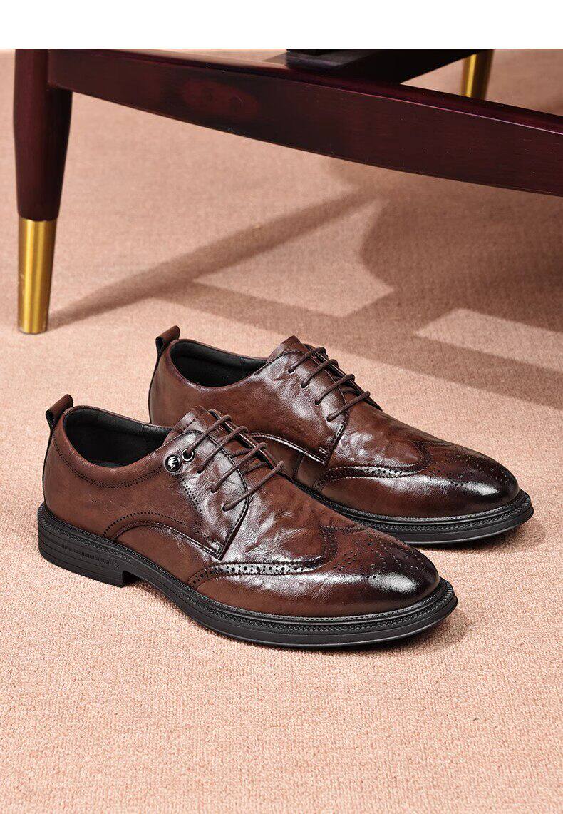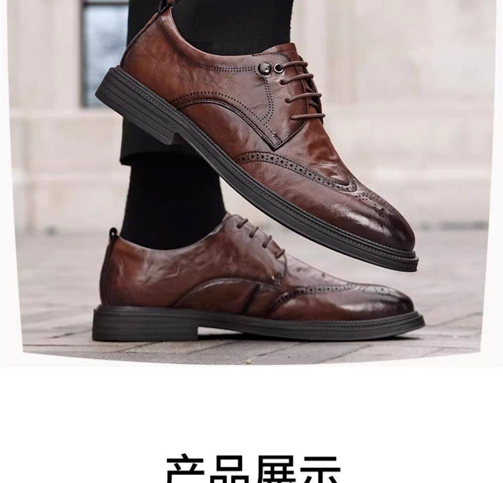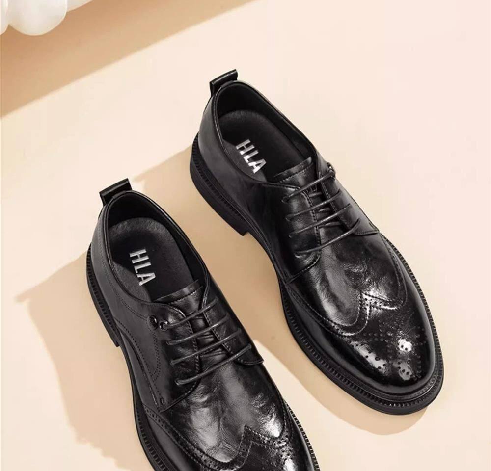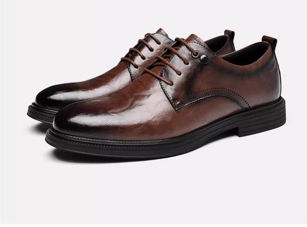 Hailan Home Men's Genuine Leather Business Casual Shoes, Brown Men's Shoes with 8cm Height Increase, Groom's Wedding Derby Shoes