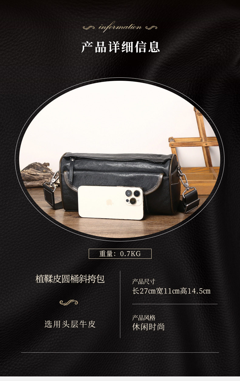 Lendaryer Single Shoulder Bag for Men, New Vegetable-Tanned Leather Business Commuter Casual Horizontal Crossbody Bag, Large Capacity Backpack