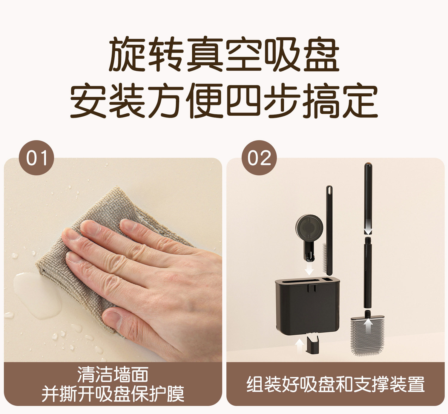 French ZIWOO medieval style suction cup toilet brush household no dead corner wall-mounted bathroom toilet set