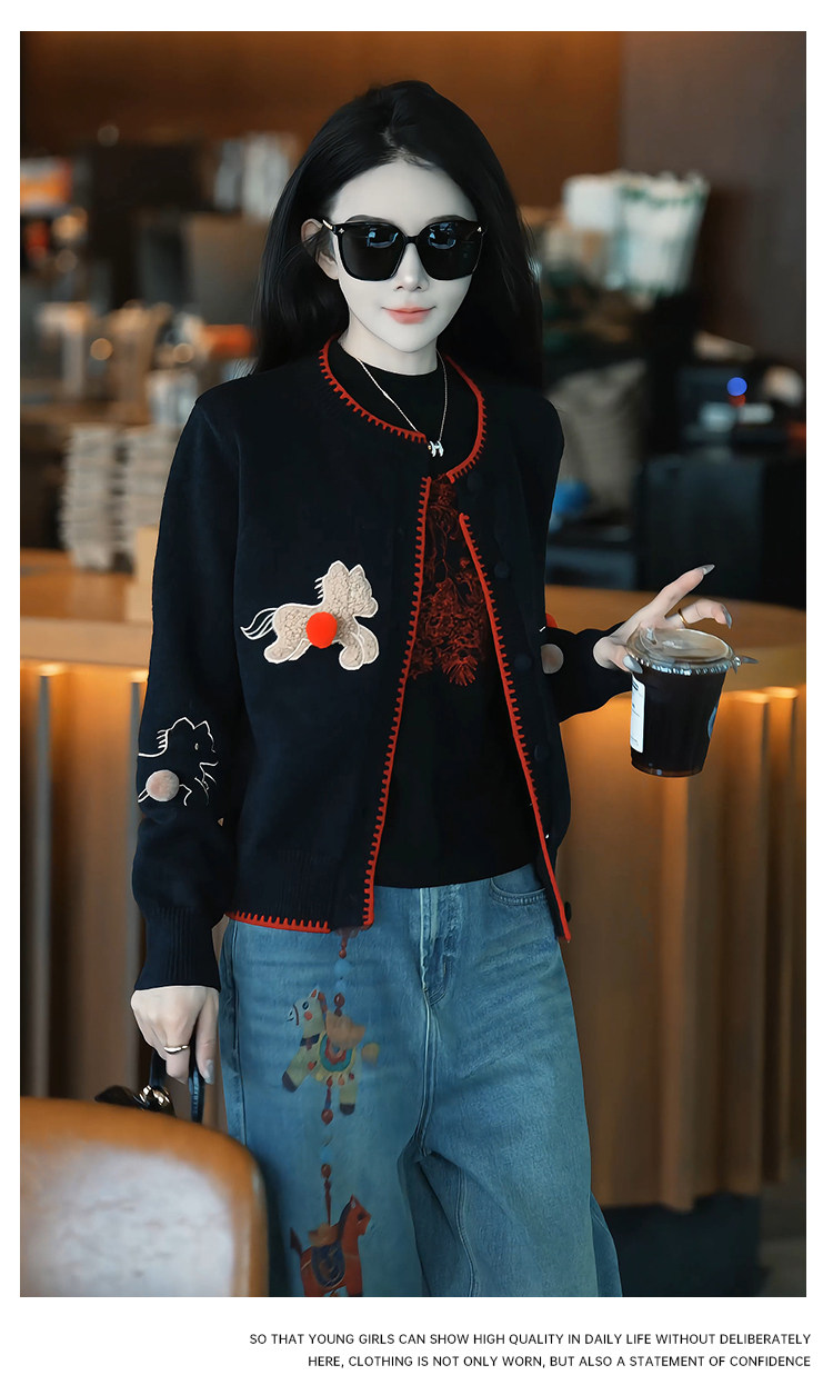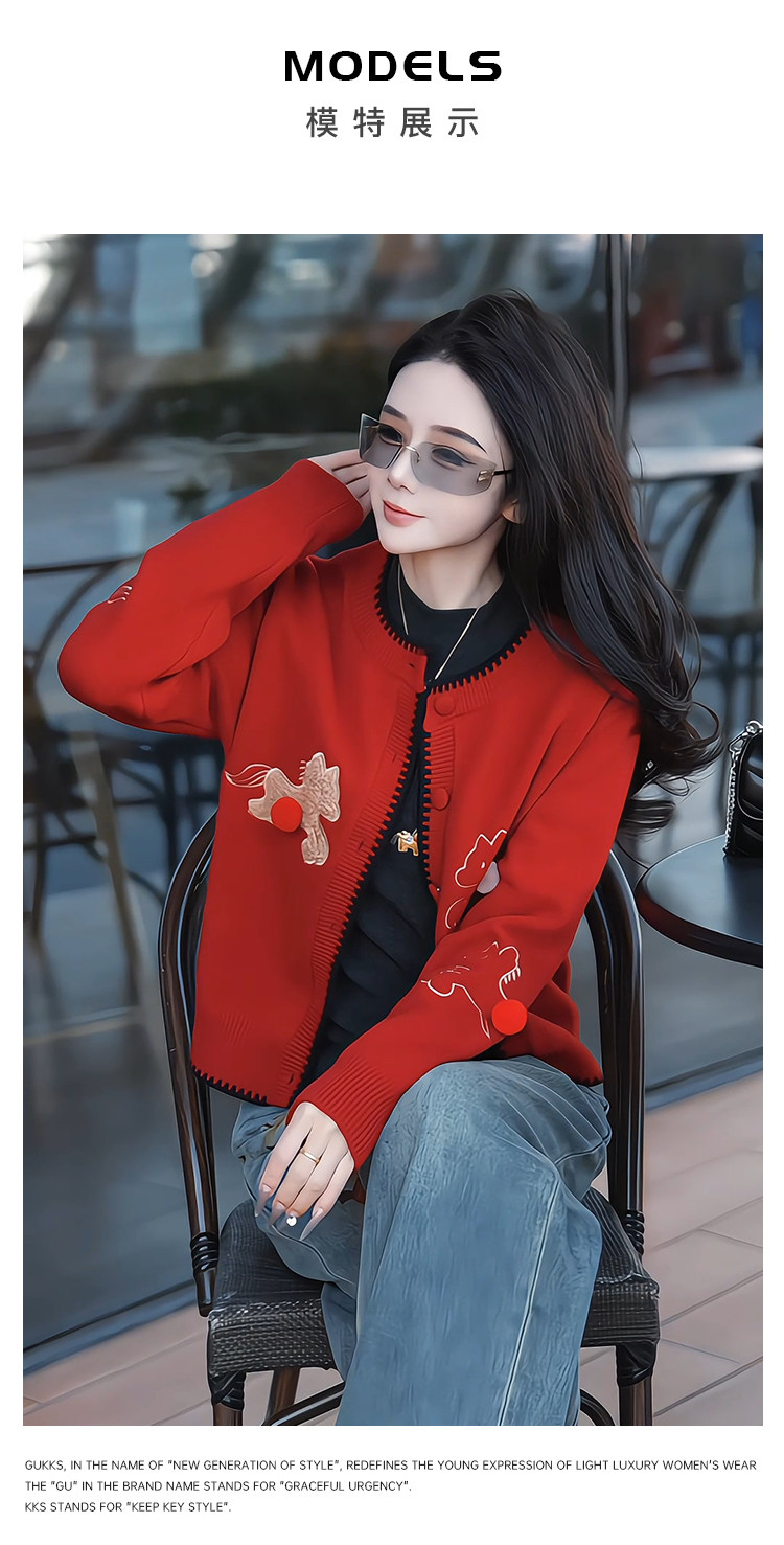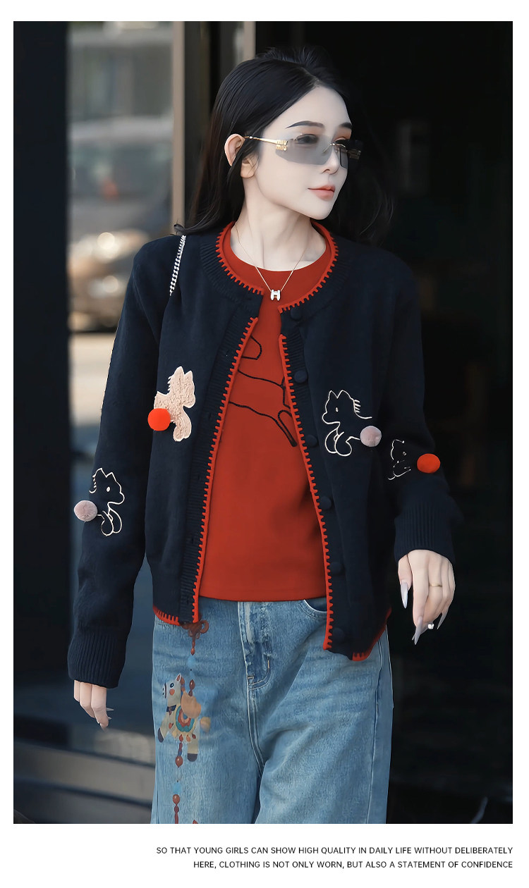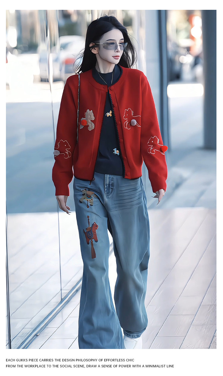 Mingming GUKKS is excited about the new 2026 Year of the Horse pony three-dimensional embroidered cardigan style knitted sweater