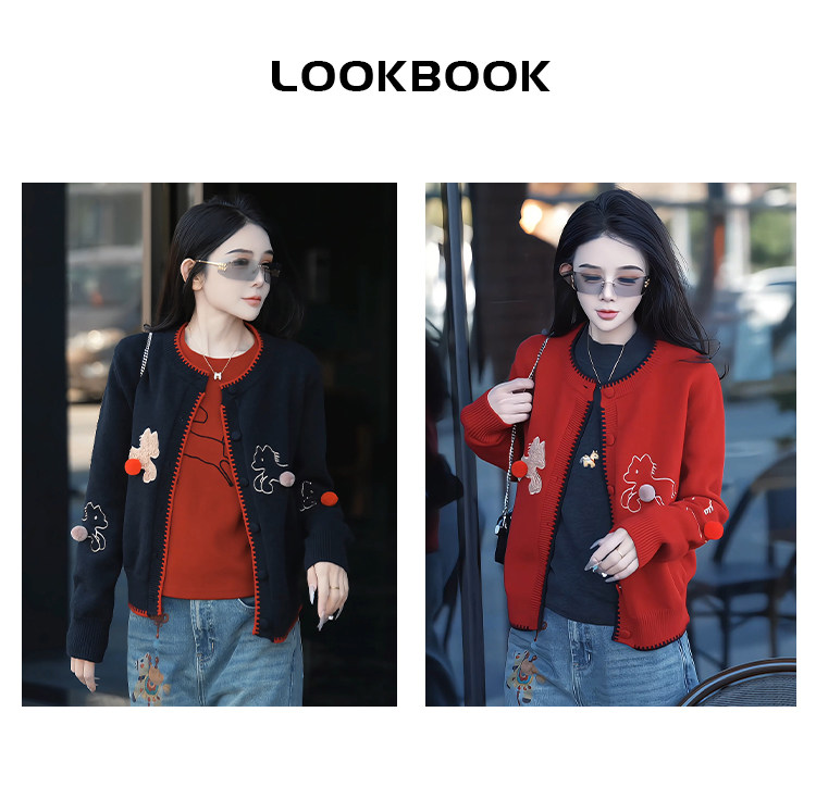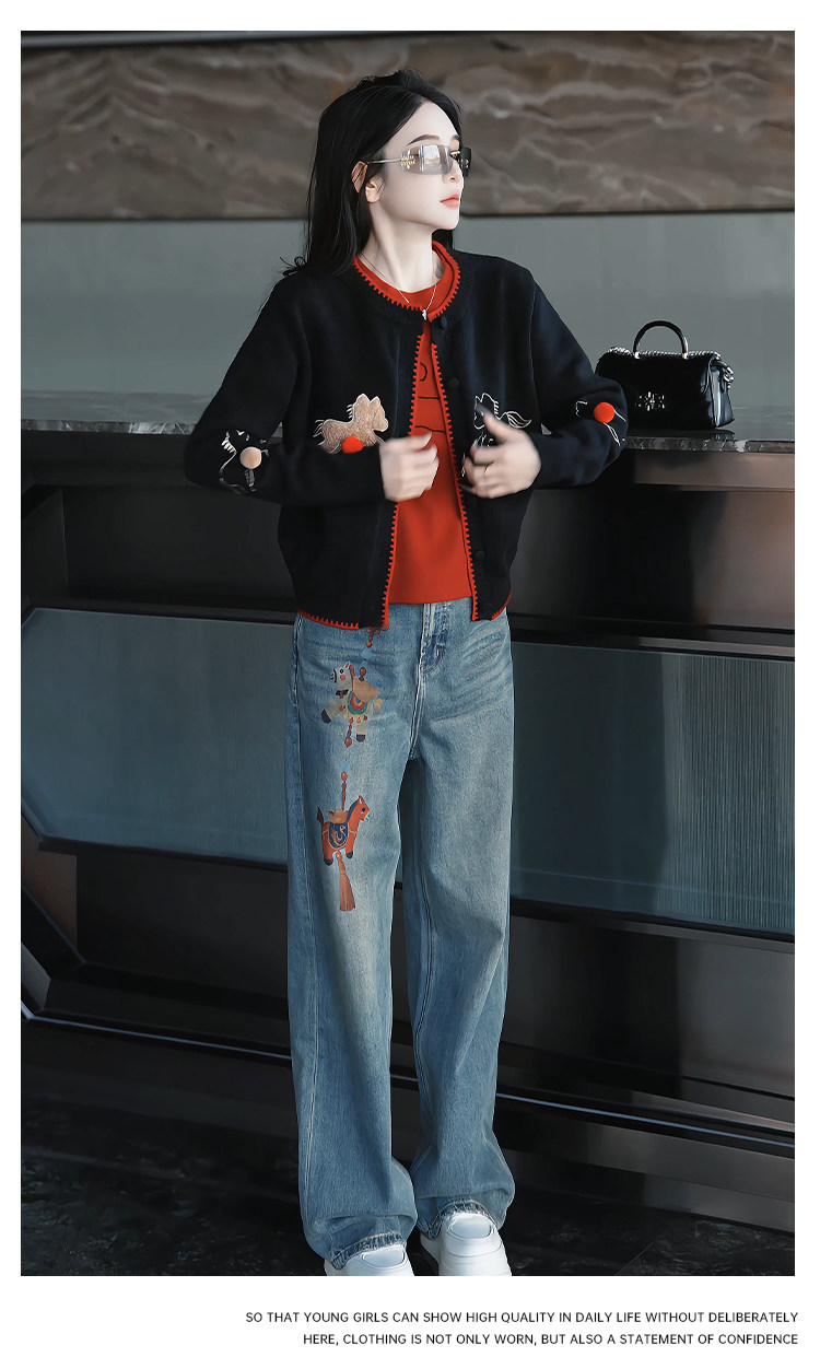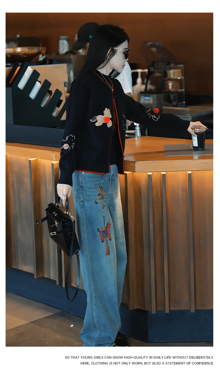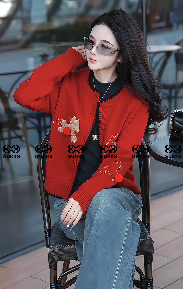 Mingming GUKKS is excited about the new 2026 Year of the Horse pony three-dimensional embroidered cardigan style knitted sweater