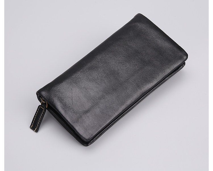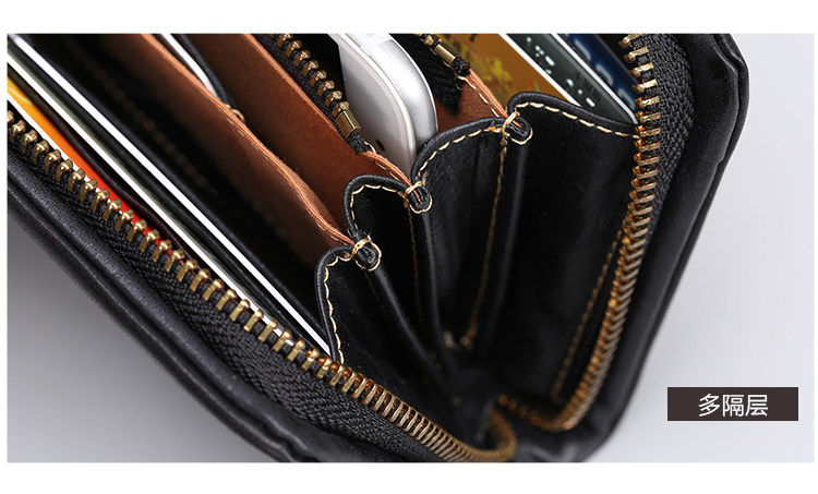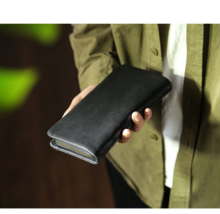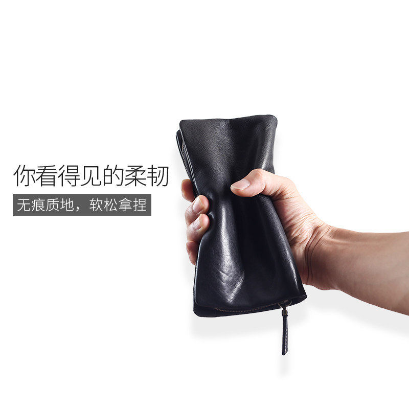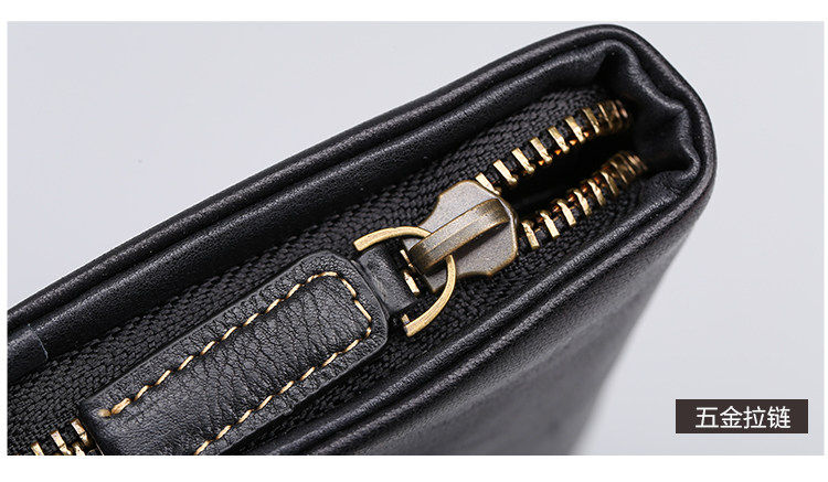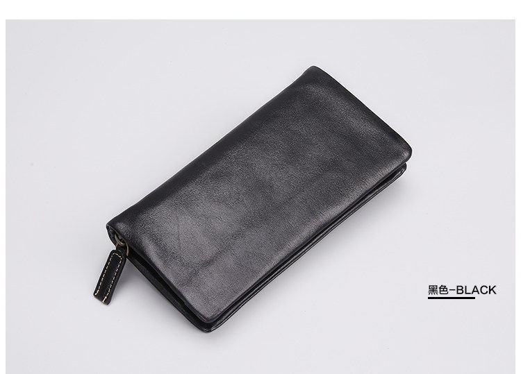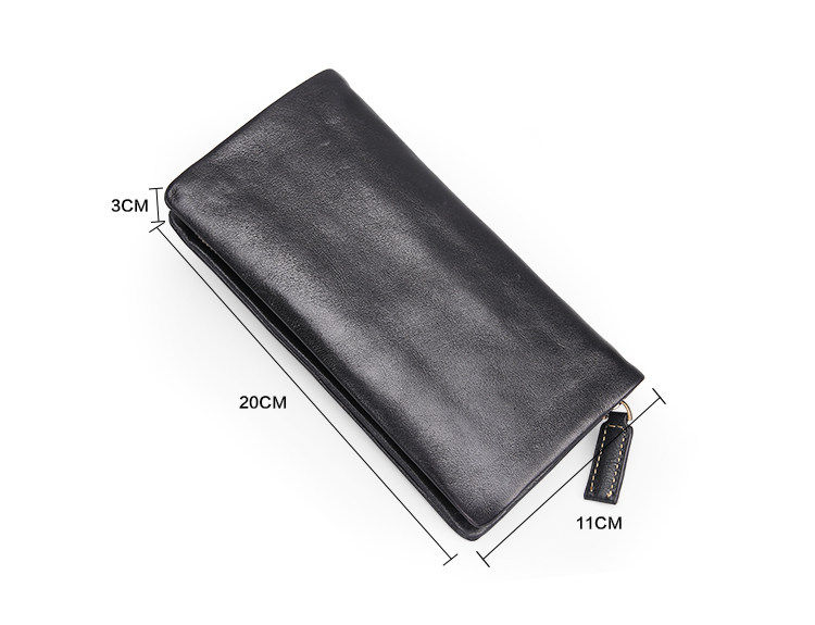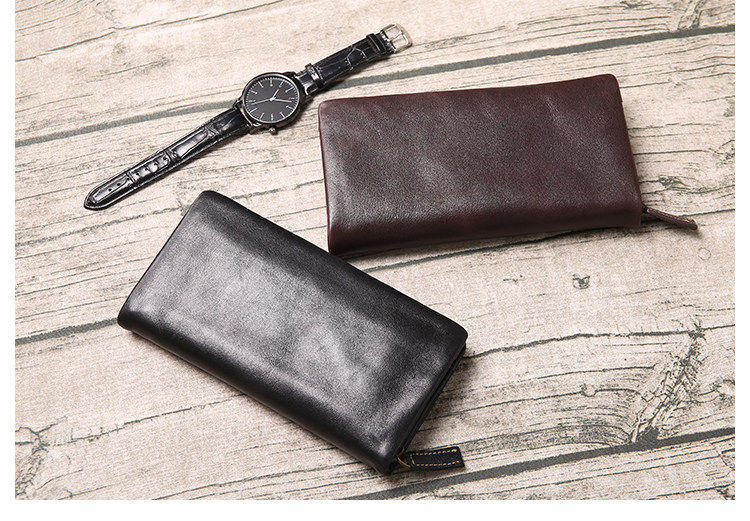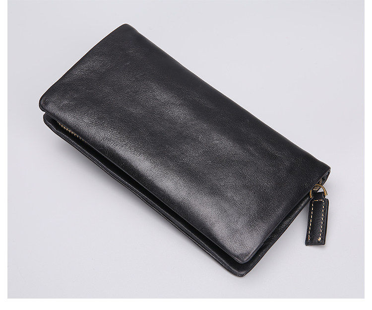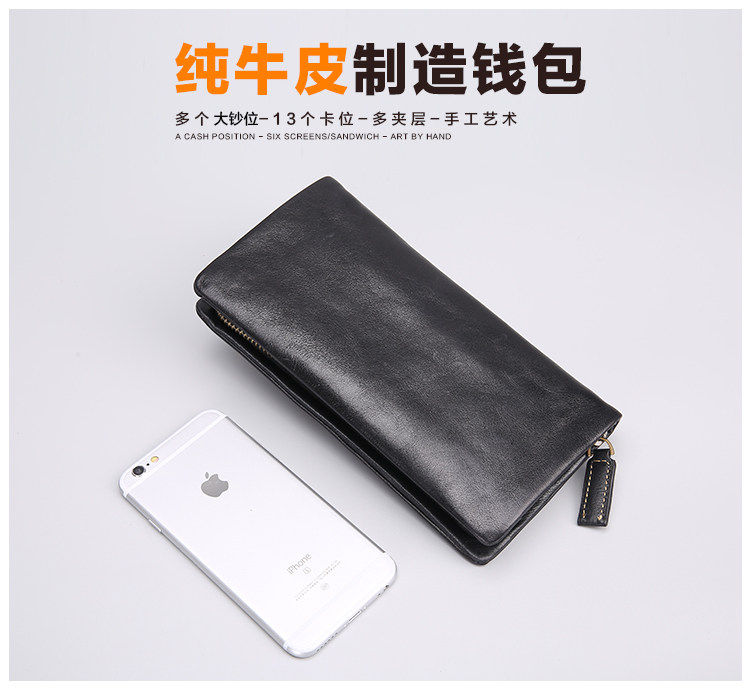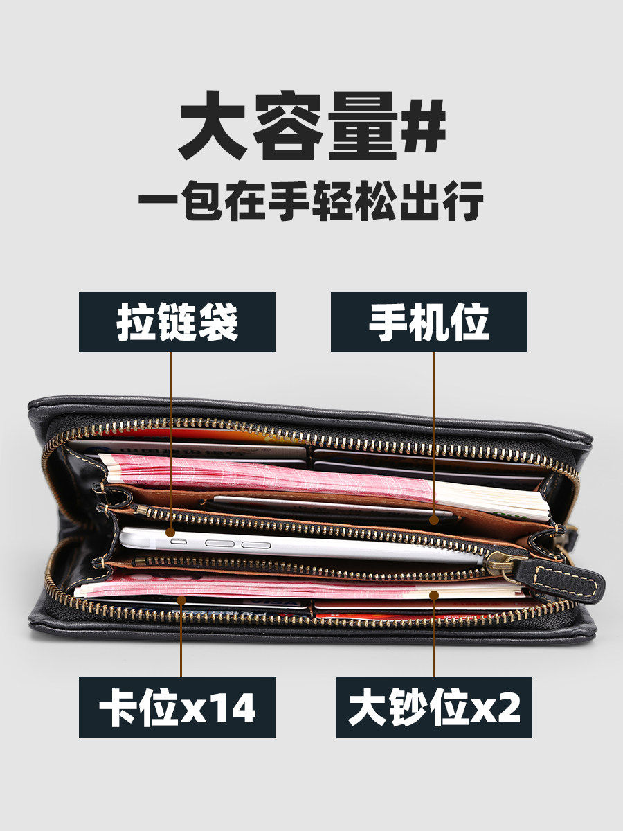 Lendaryer Men's Genuine Leather Zipper Clutch Bag, Long Style, Large Capacity, Fashionable Casual Wallet, Business Travel Clutch Bag