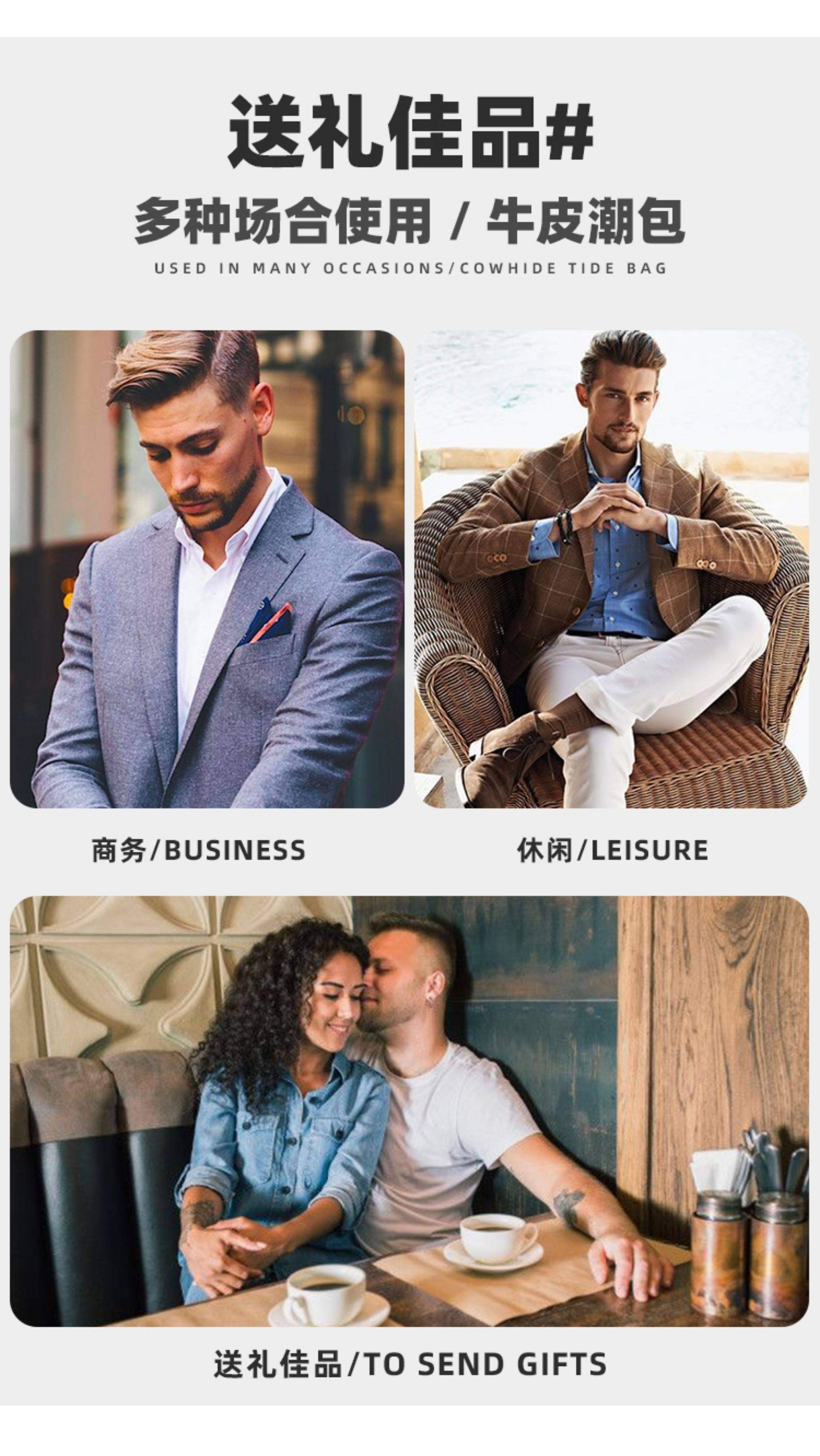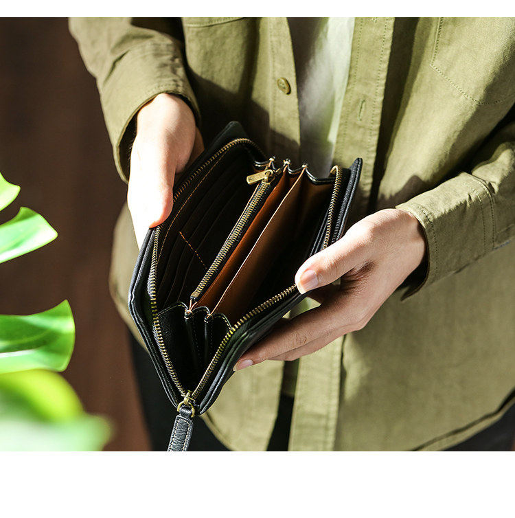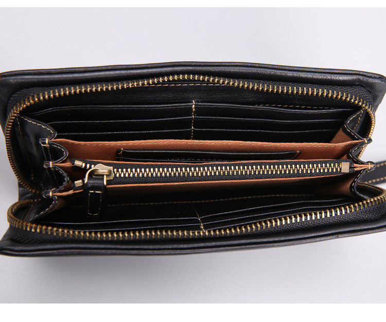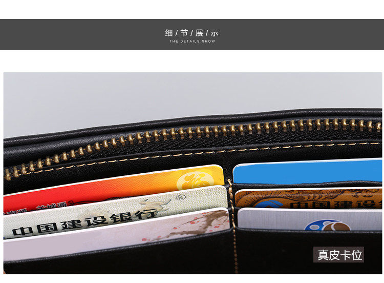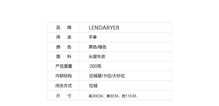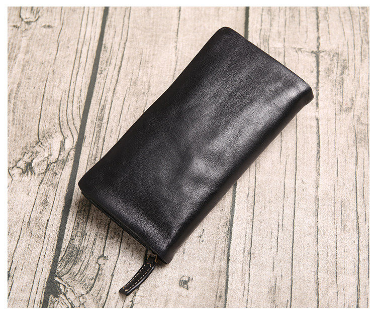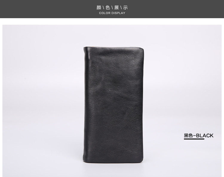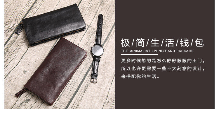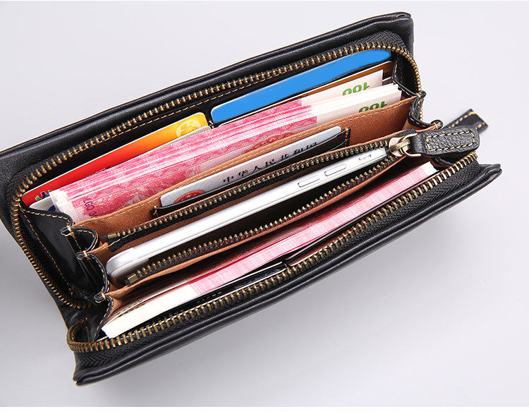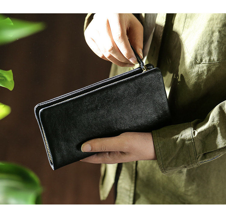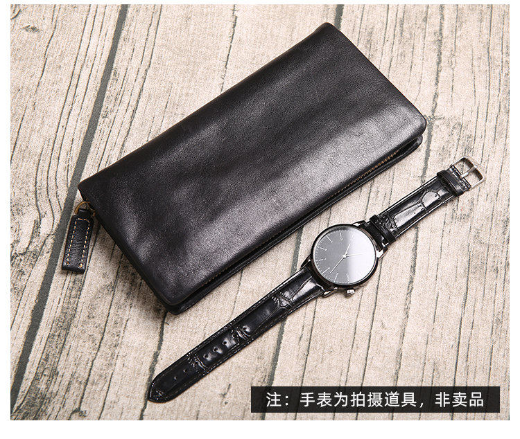 Lendaryer Men's Genuine Leather Zipper Clutch Bag, Long Style, Large Capacity, Fashionable Casual Wallet, Business Travel Clutch Bag
