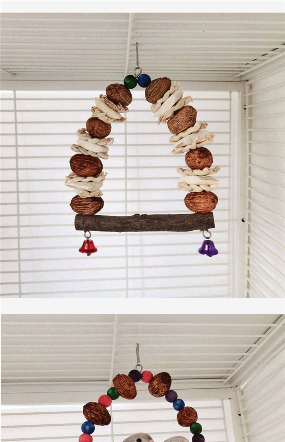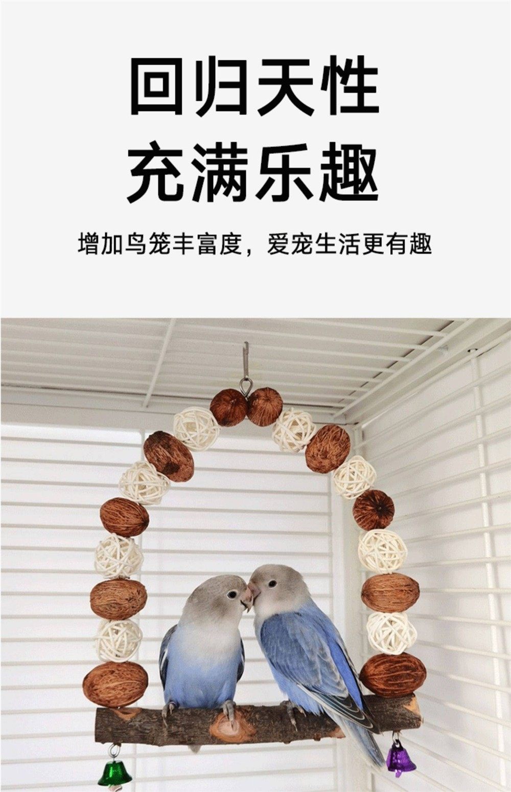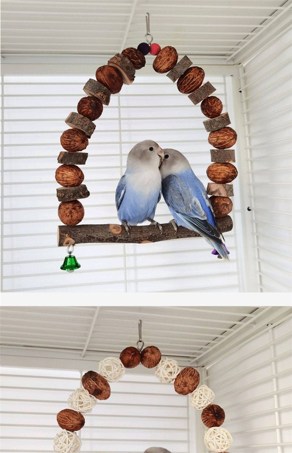 Parrot Swing Toy with Cuttlefish Bone for Chewing, Suitable for Cockatiels, Budgerigars, Lovebirds, and Parrots; Teeth Grinding and Calcium Supplementing Toy; Bird Cage Rattan Ball Made of Apple Wood