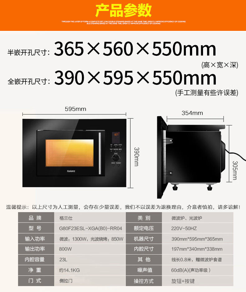 Galanz/Galanz Built-In Microwave Oven with Stainless Steel Inner Tank for Home Use, Small Size Xga(B0)-Rr04