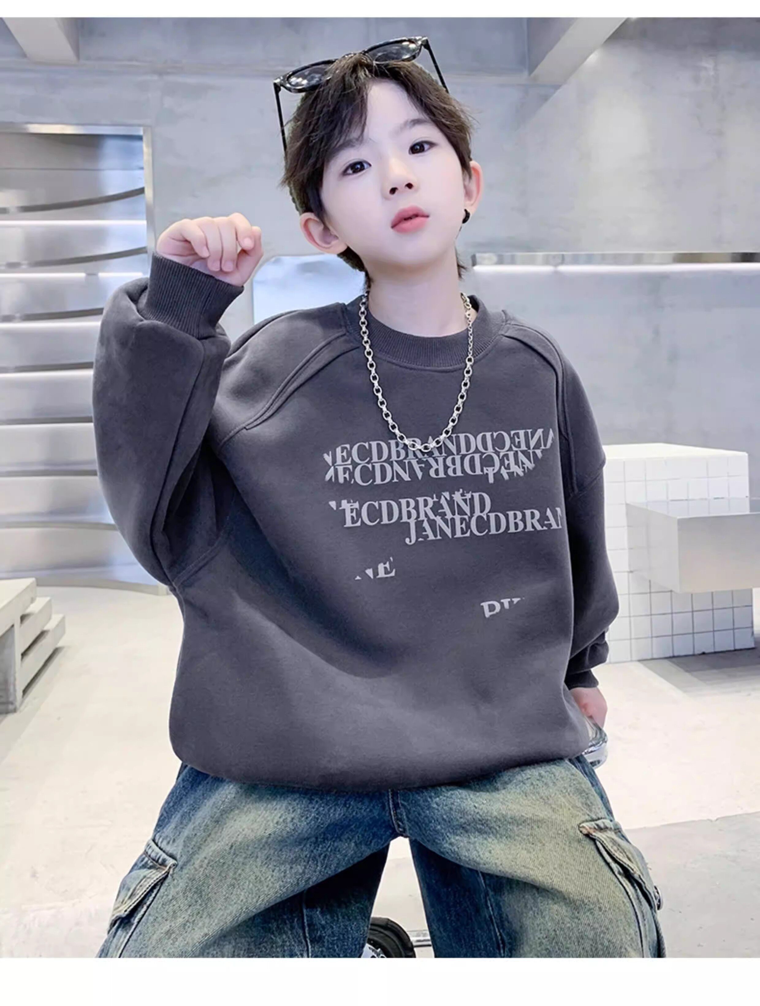 German Razt Brand Store Boys' Fleece Sweatshirt Autumn and Winter 2025 New Model Boys' Winter Thickened Fleece-Lined