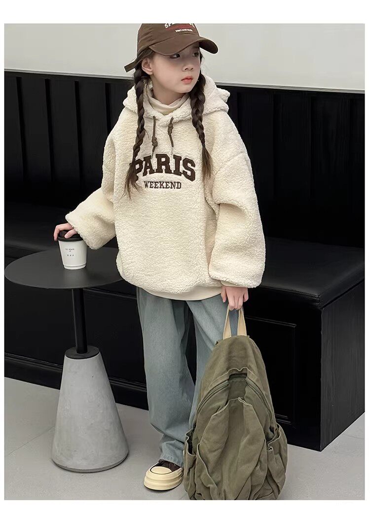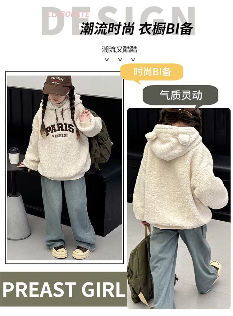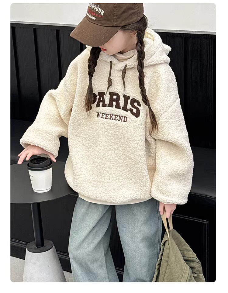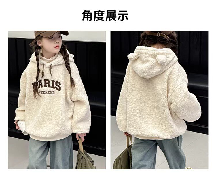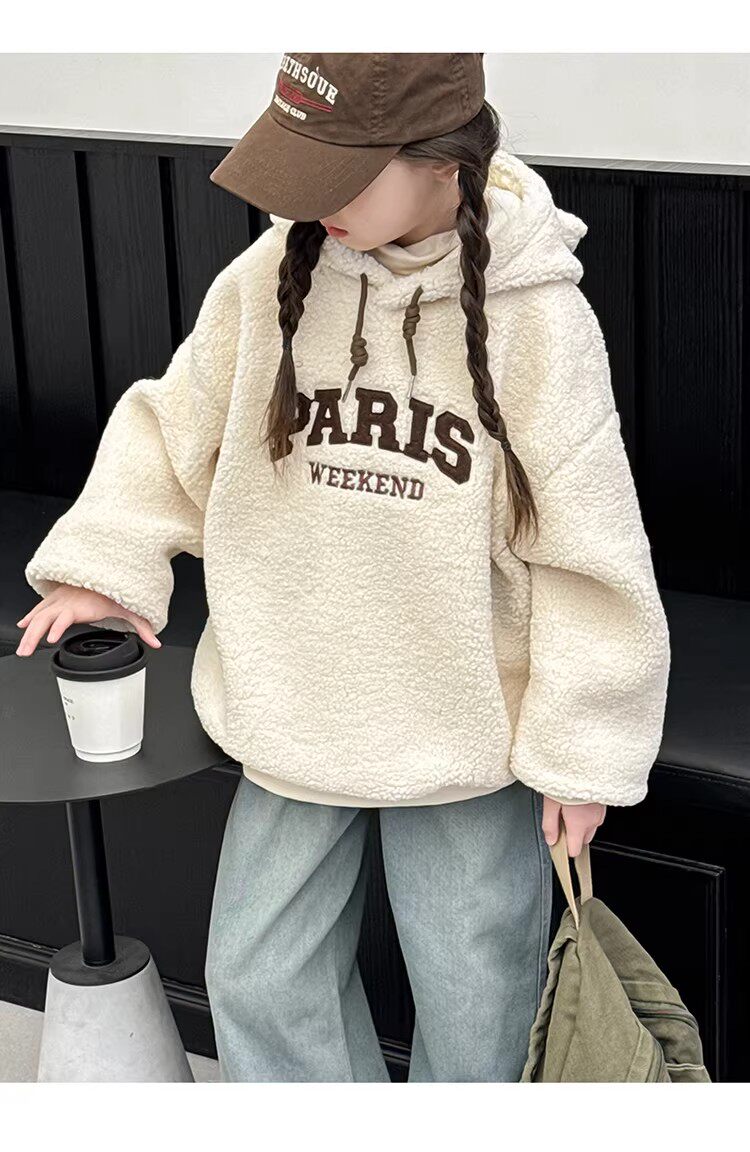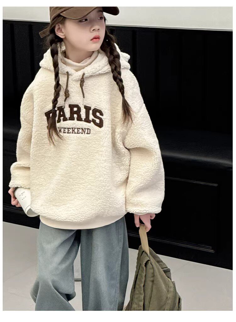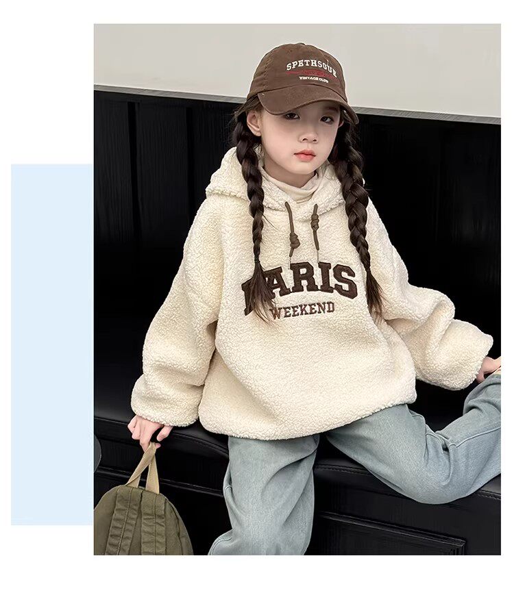 German Razt Brand Store Girls' Lamb Fleece Sweatshirt Autumn and Winter 2025 New Sweatshirt Fleece-Lined Hooded Pullover