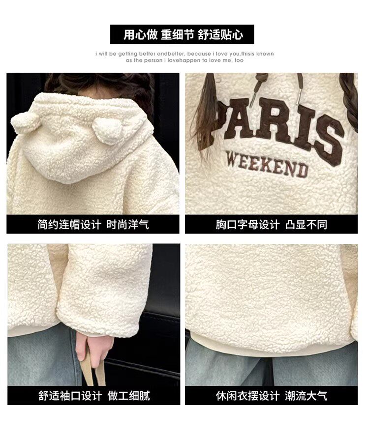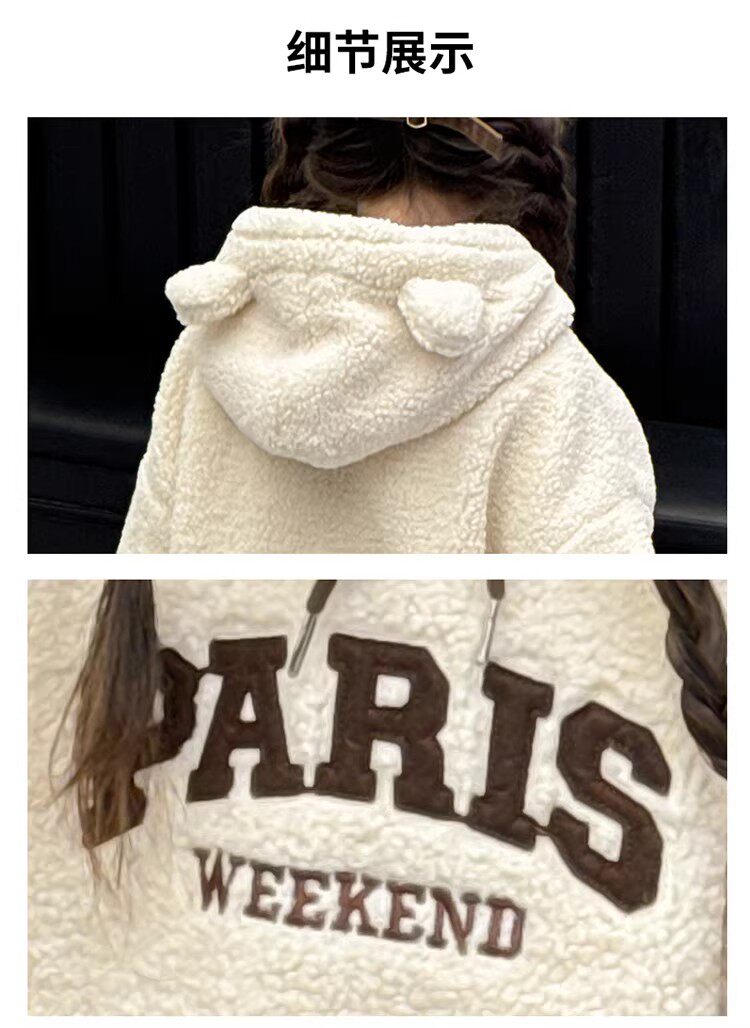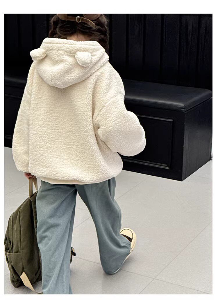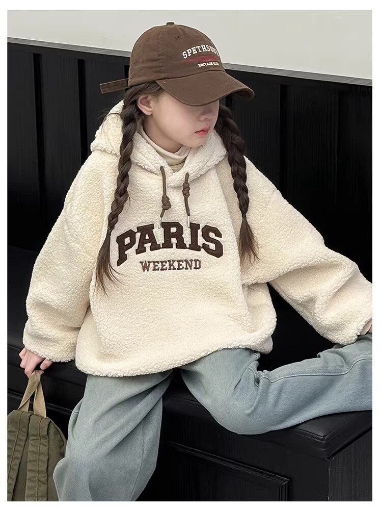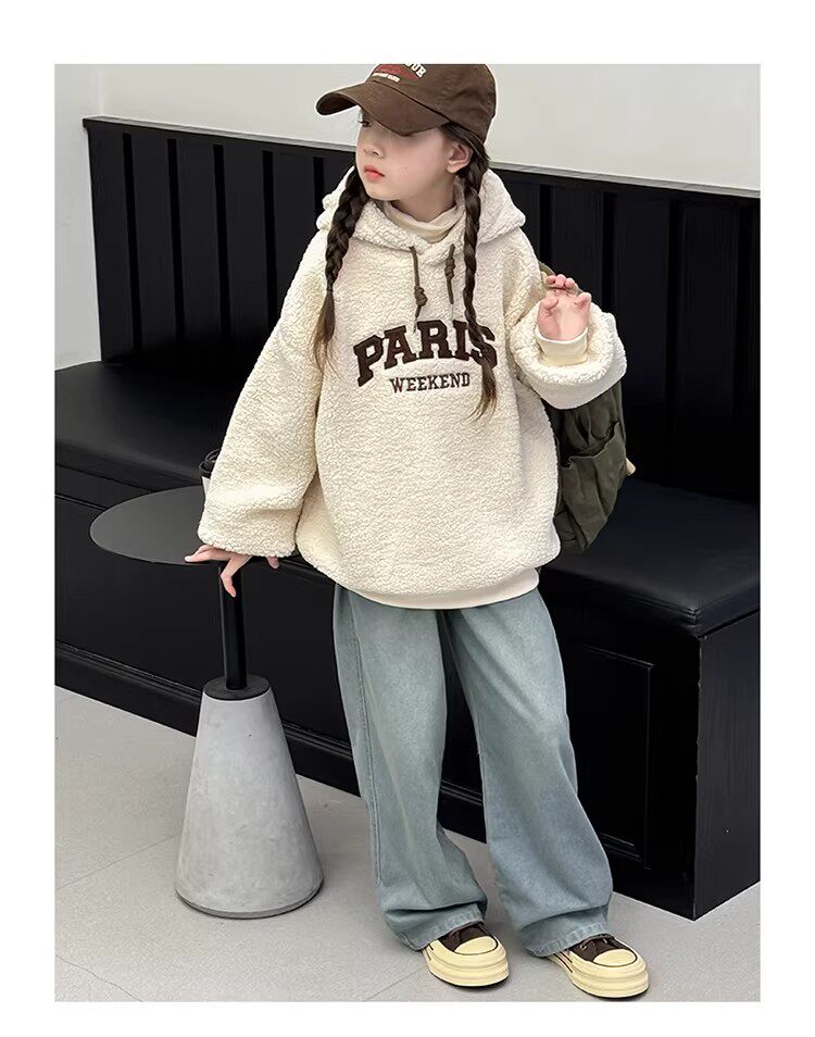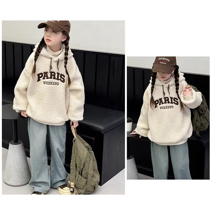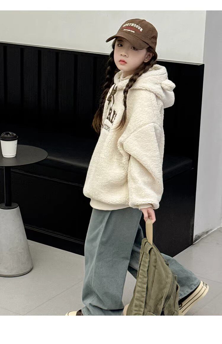 German Razt Brand Store Girls' Lamb Fleece Sweatshirt Autumn and Winter 2025 New Sweatshirt Fleece-Lined Hooded Pullover