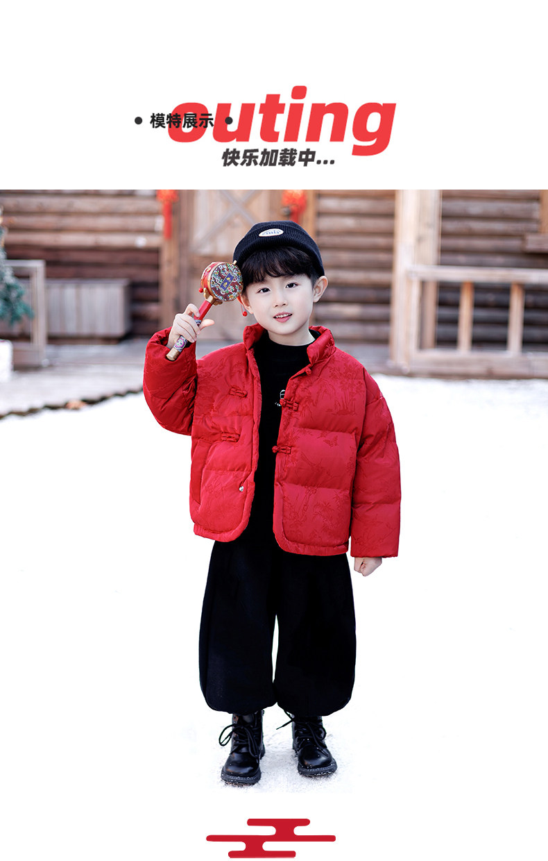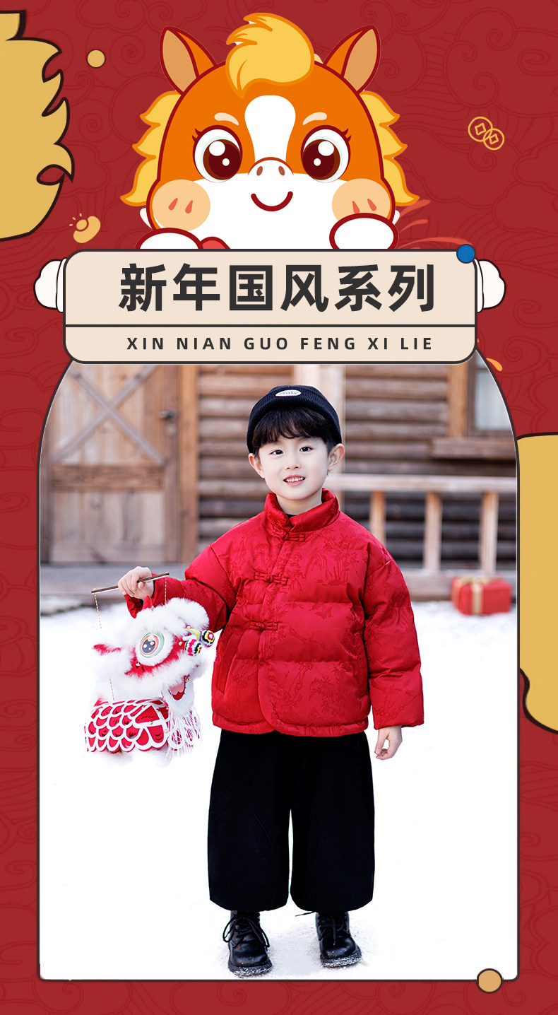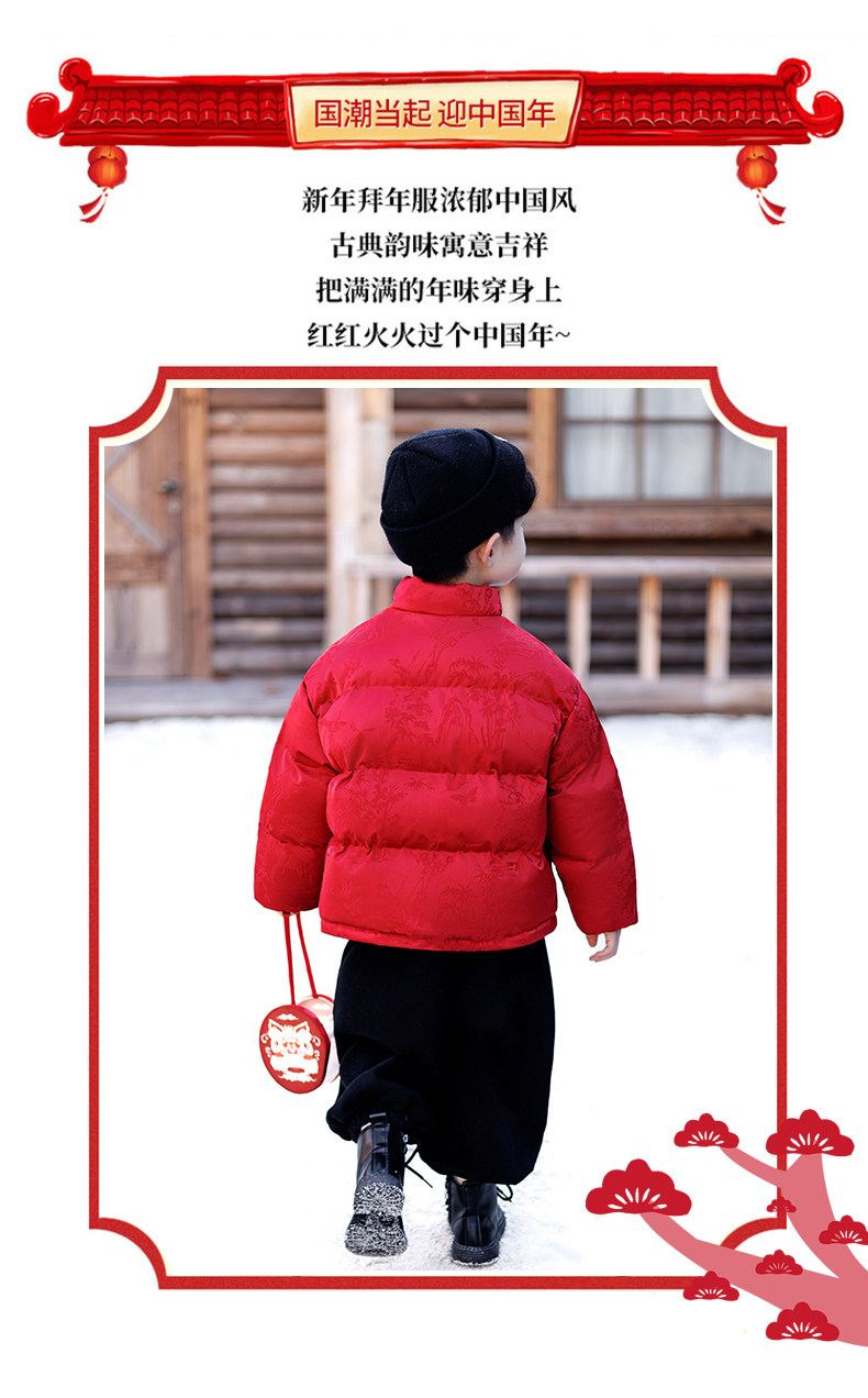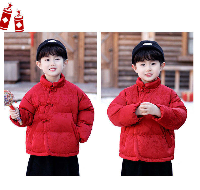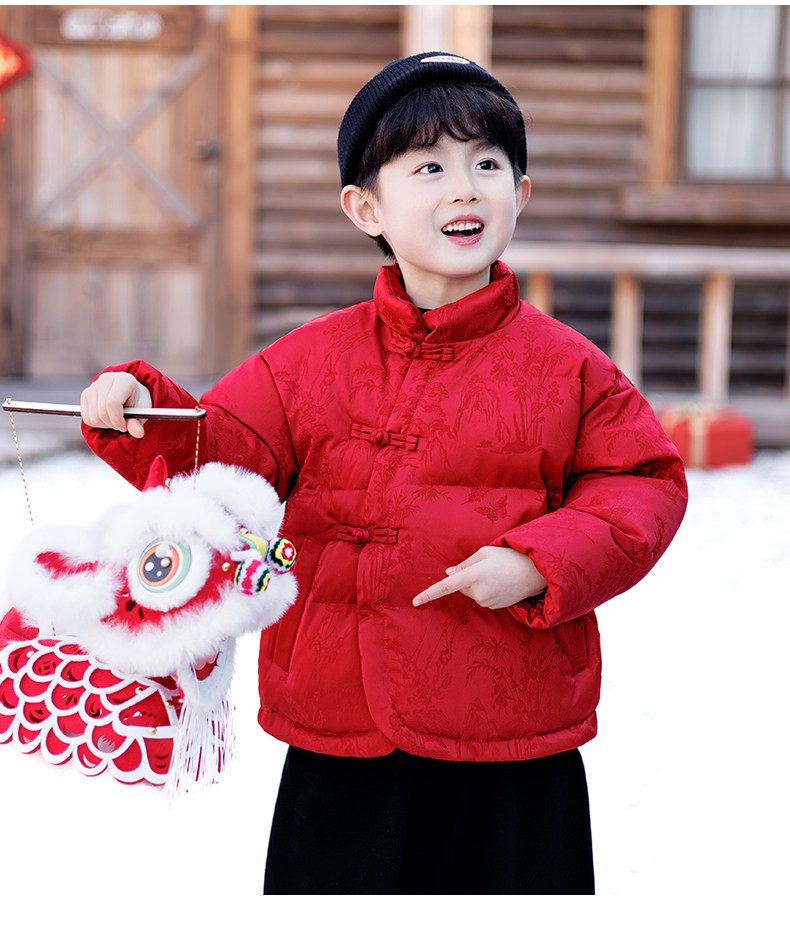 New Year's Greeting Outfit for Boys, Chinese-Style Fleece-Lined Cotton Jacket, Winter Style, Red Festive New Year Cotton Clothing for Children, Baby Tang Suit