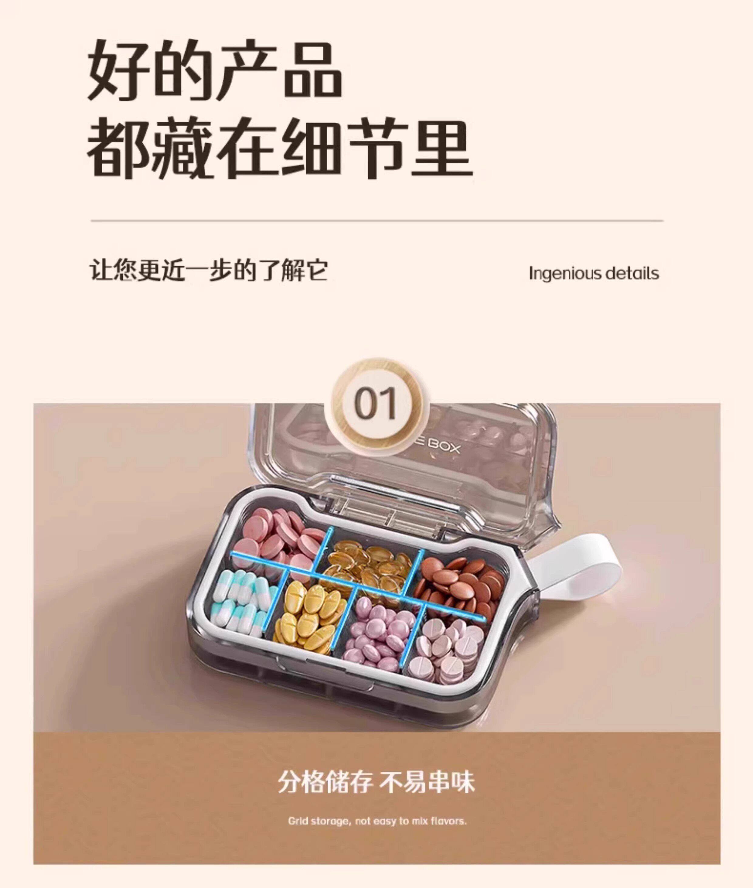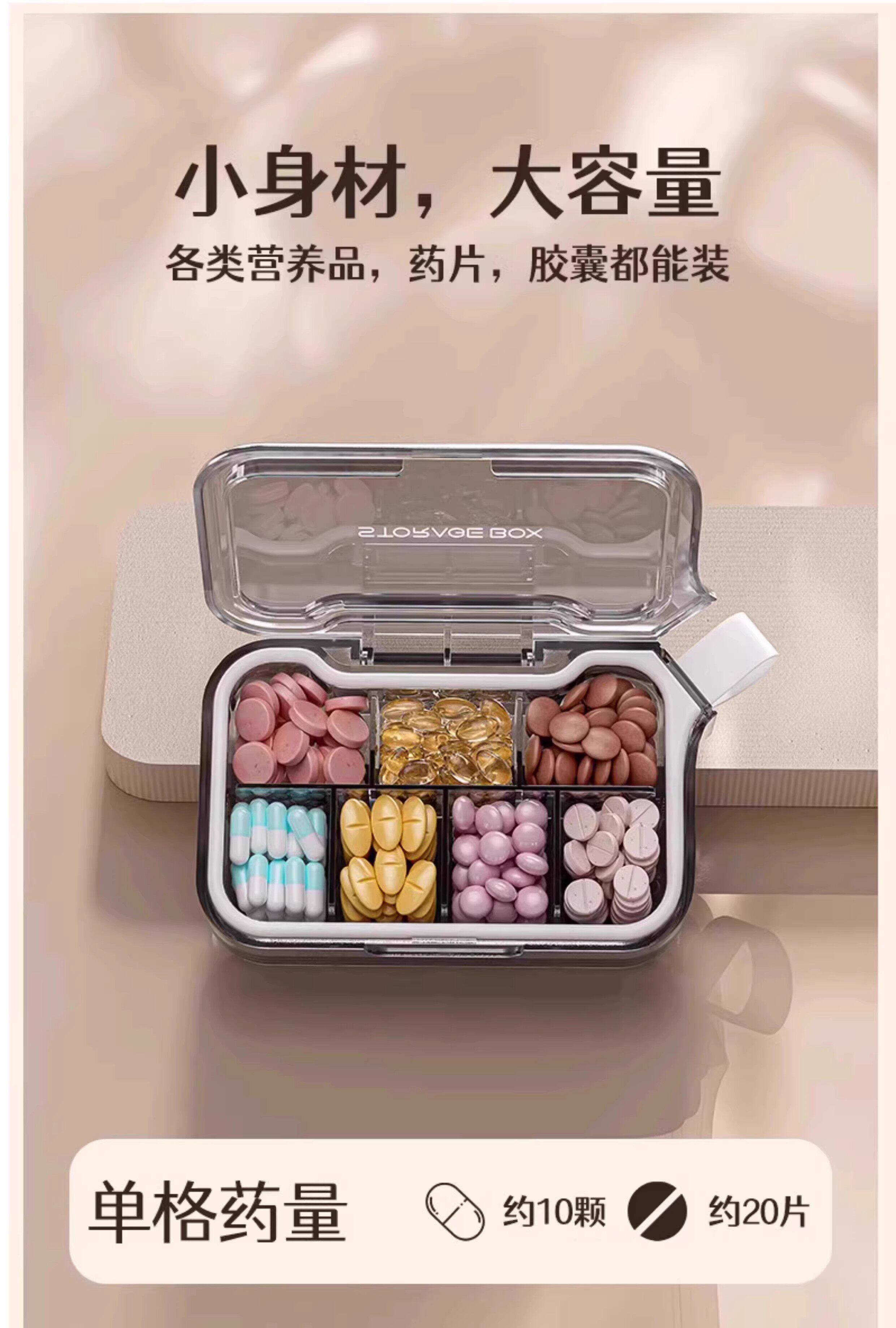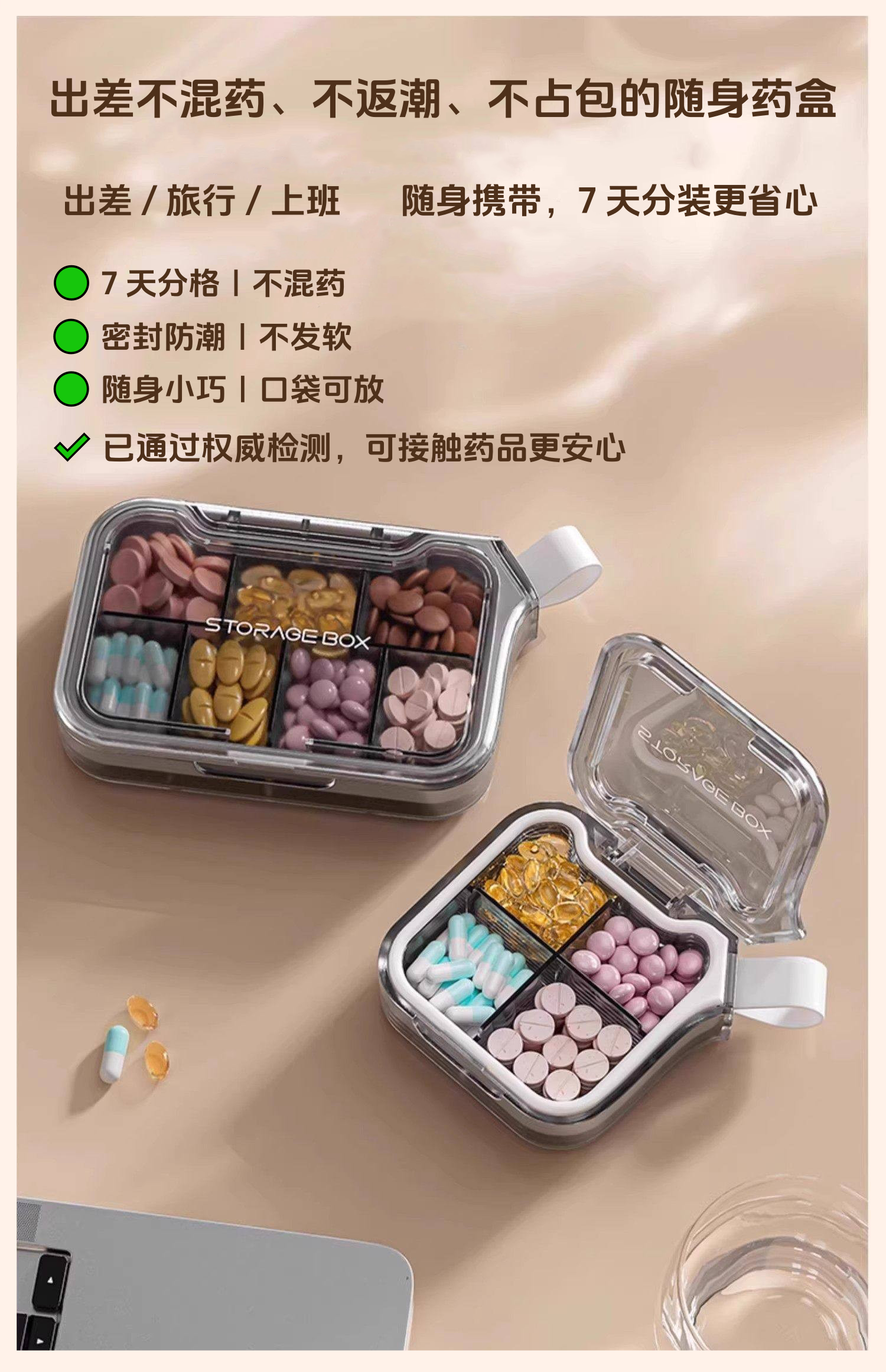 Pill Box Is Divided into Seven-Day Compartments for One Week, Portable, Food-Grade, Large-Capacity Seven-Day Storage Box, Stylish and Beautiful for Travel