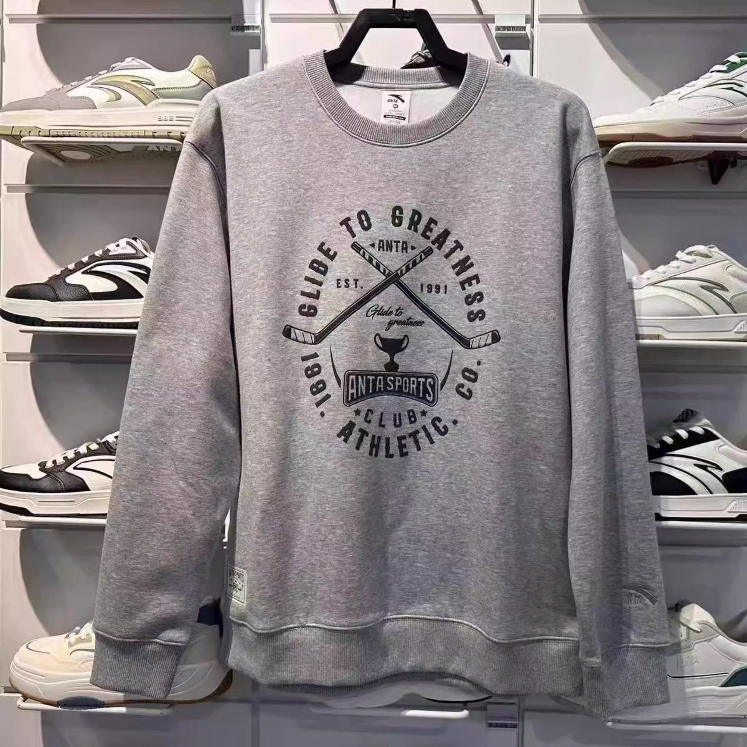 Anta Genuine Men's Clothing 2025 Winter New Trendy Fashion Fleece-Lined Pullover Round Neck Sports Sweatshirt 152548720N