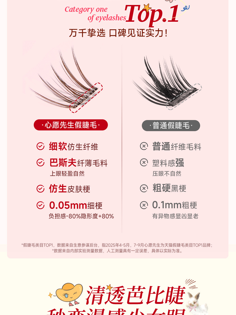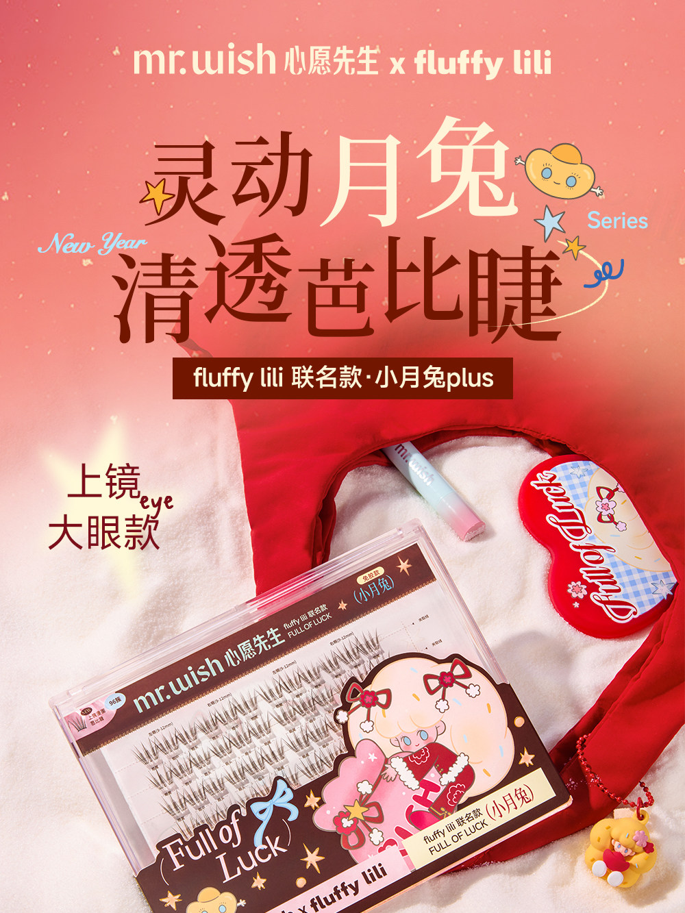 Mr. Wish Little Moon Rabbit 96 Cluster Plus Stemless Female Group Eyelashes Korean Style Cartoon Photogenic Big Eye Style Glue-Free False Eyelashes