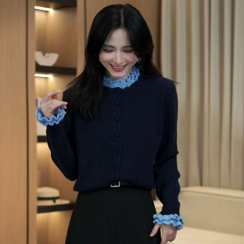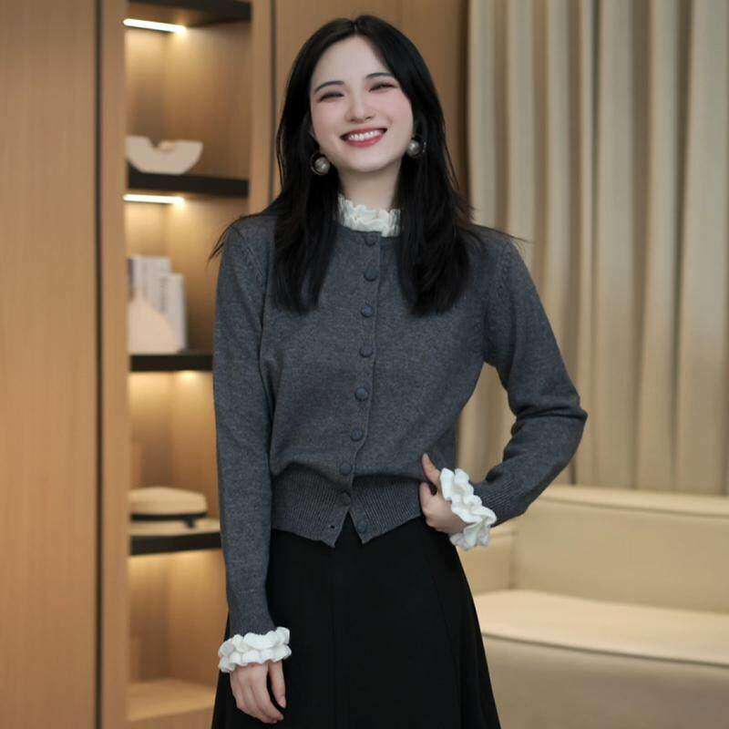 French Retro Knitted Cardigan for Women, 2025 Autum New Style, Slim Fit, Versatile Bottoming Shirt, Long-Sleeved Top