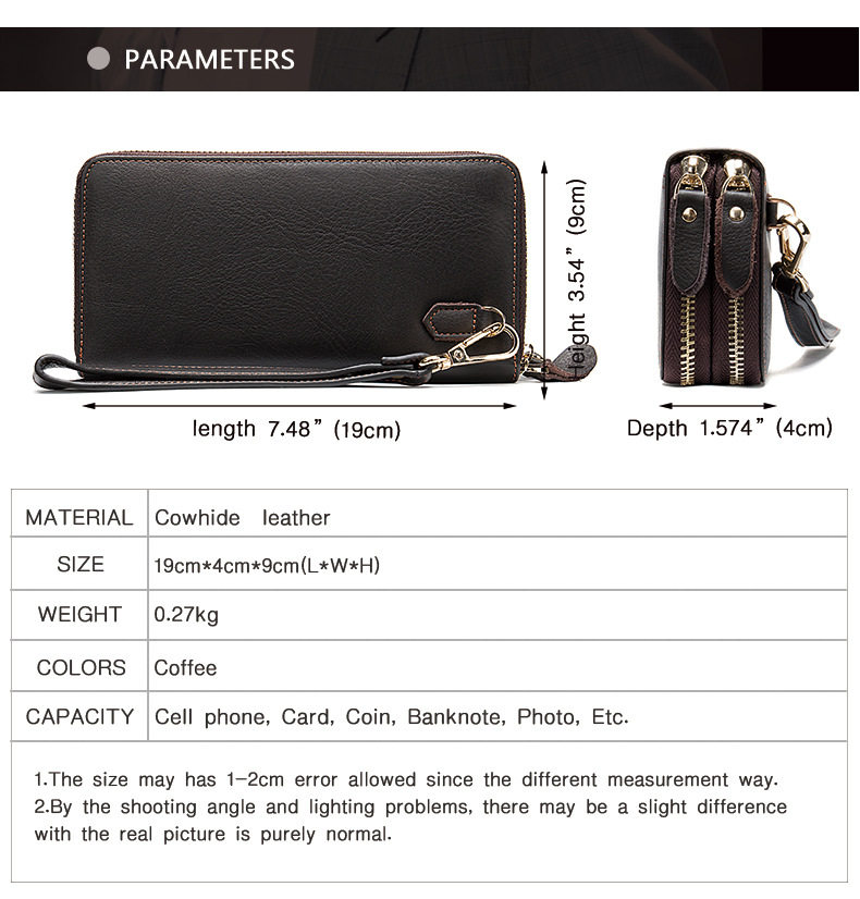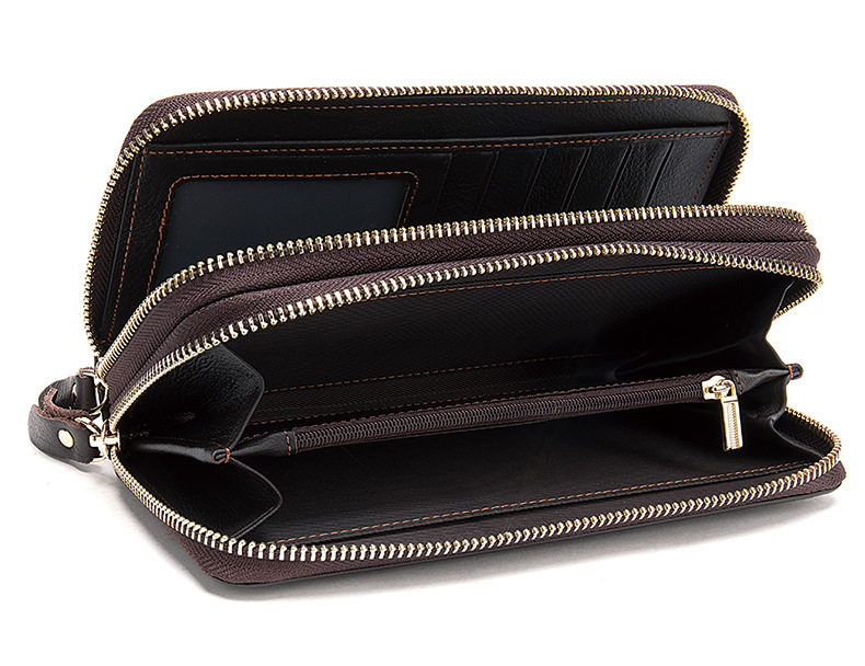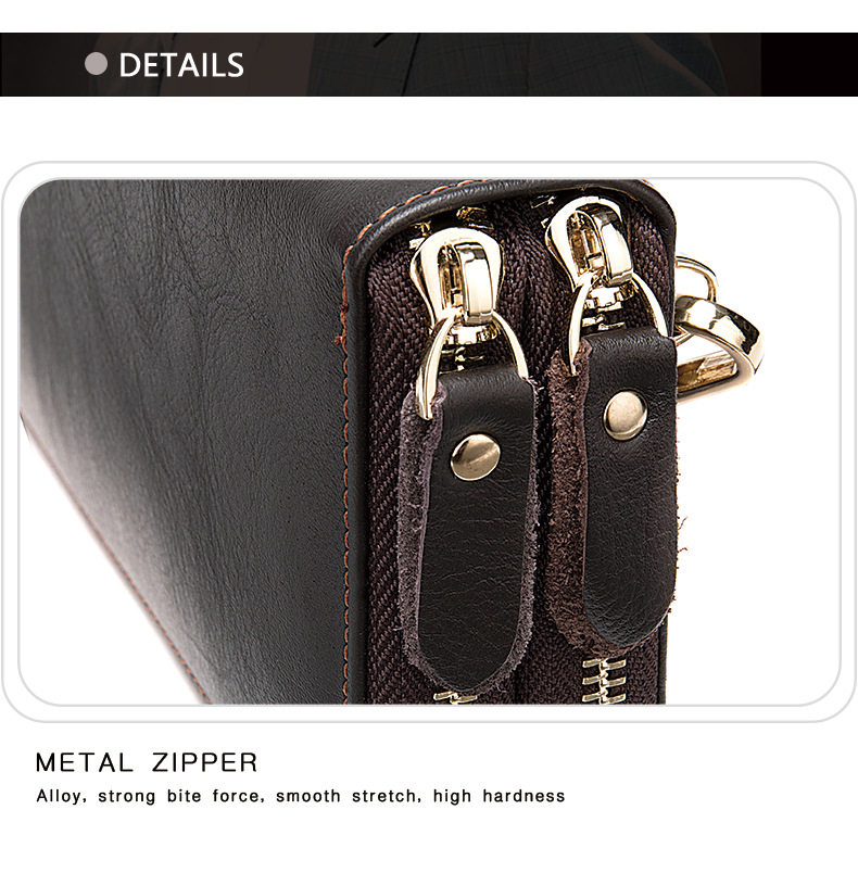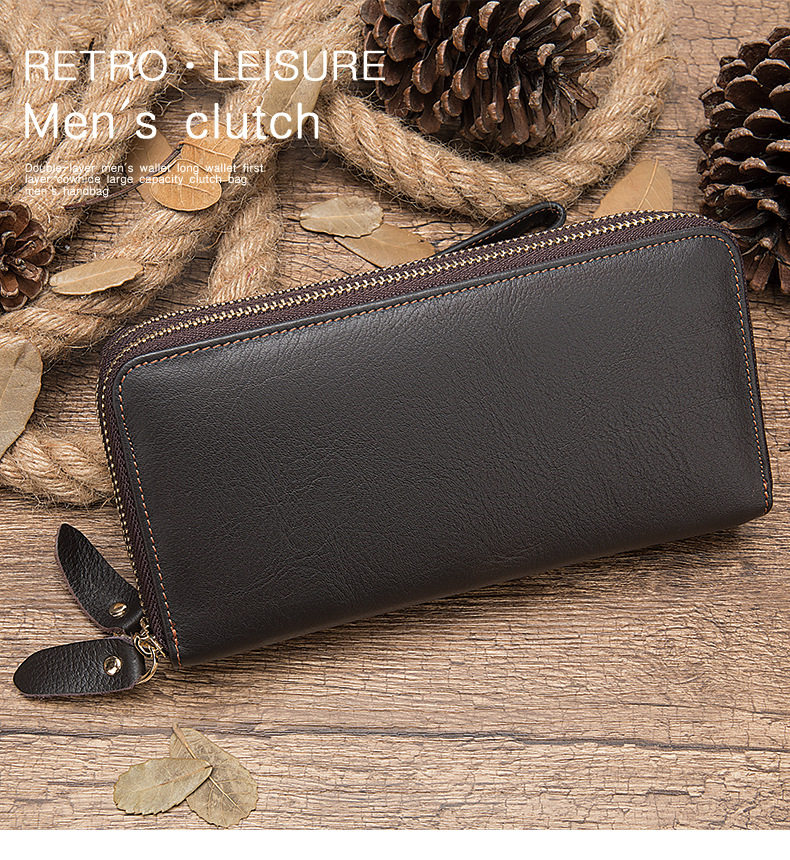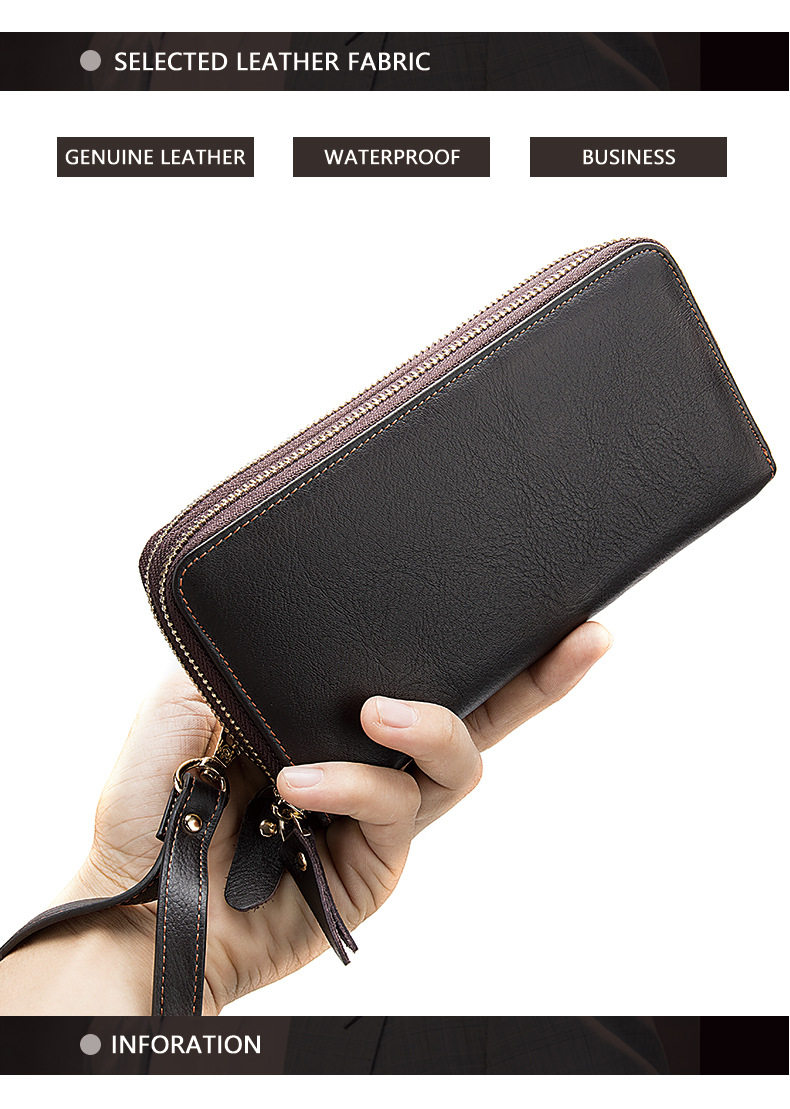 Lendaryer Clutch Bag Men's New Style Light Luxury Business Double Zipper Clutch Bag Long Leather Large Capacity Coin Purse