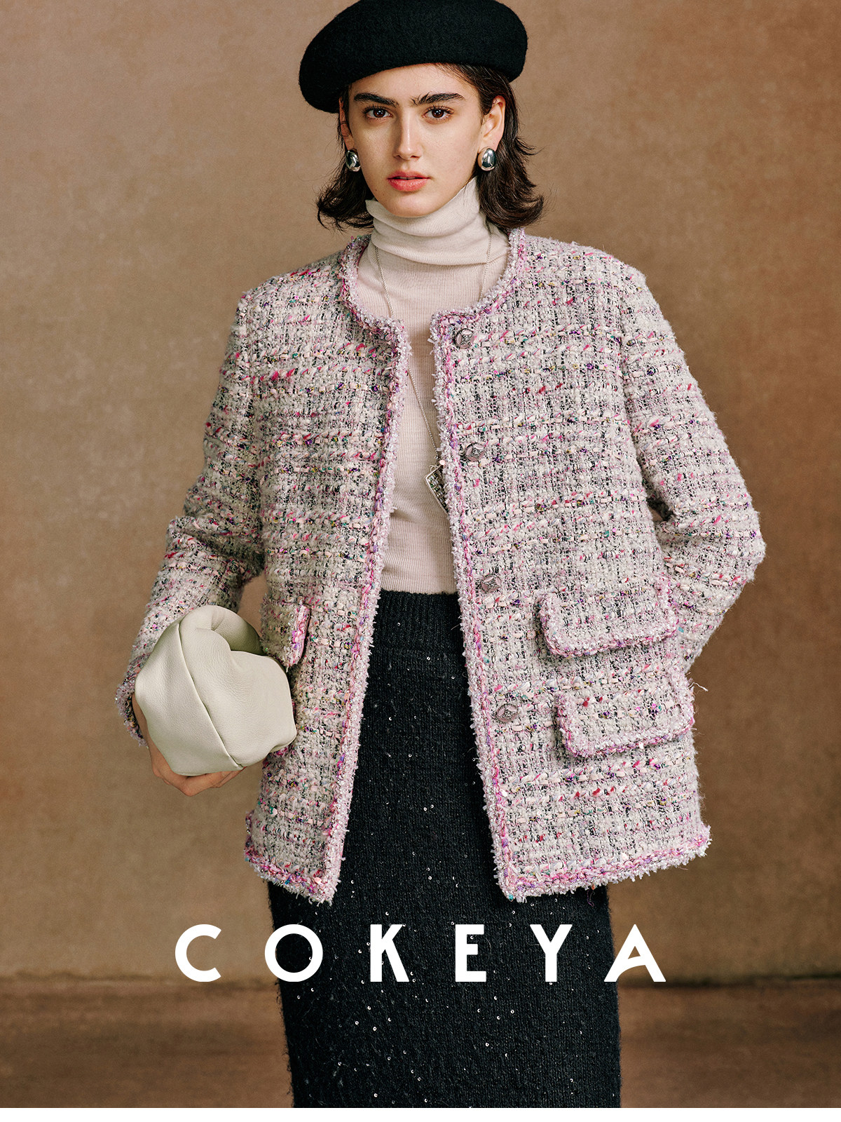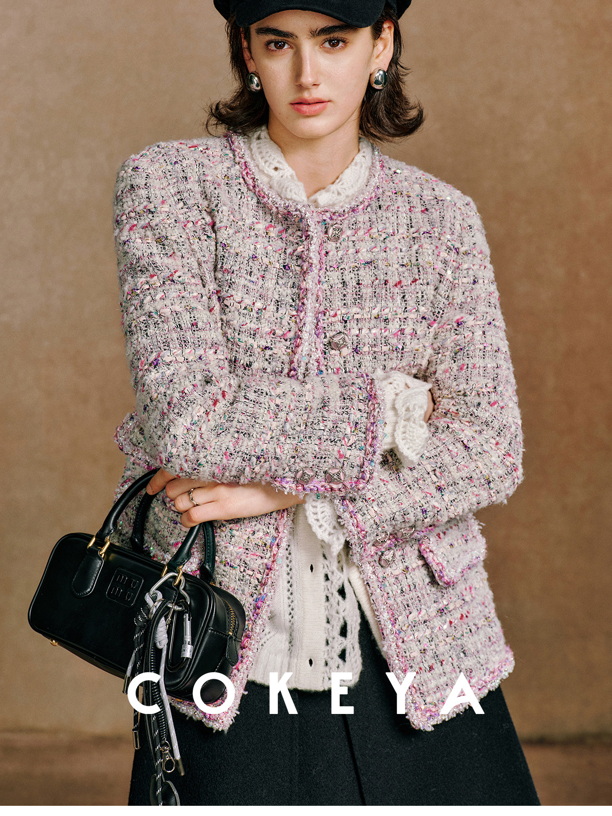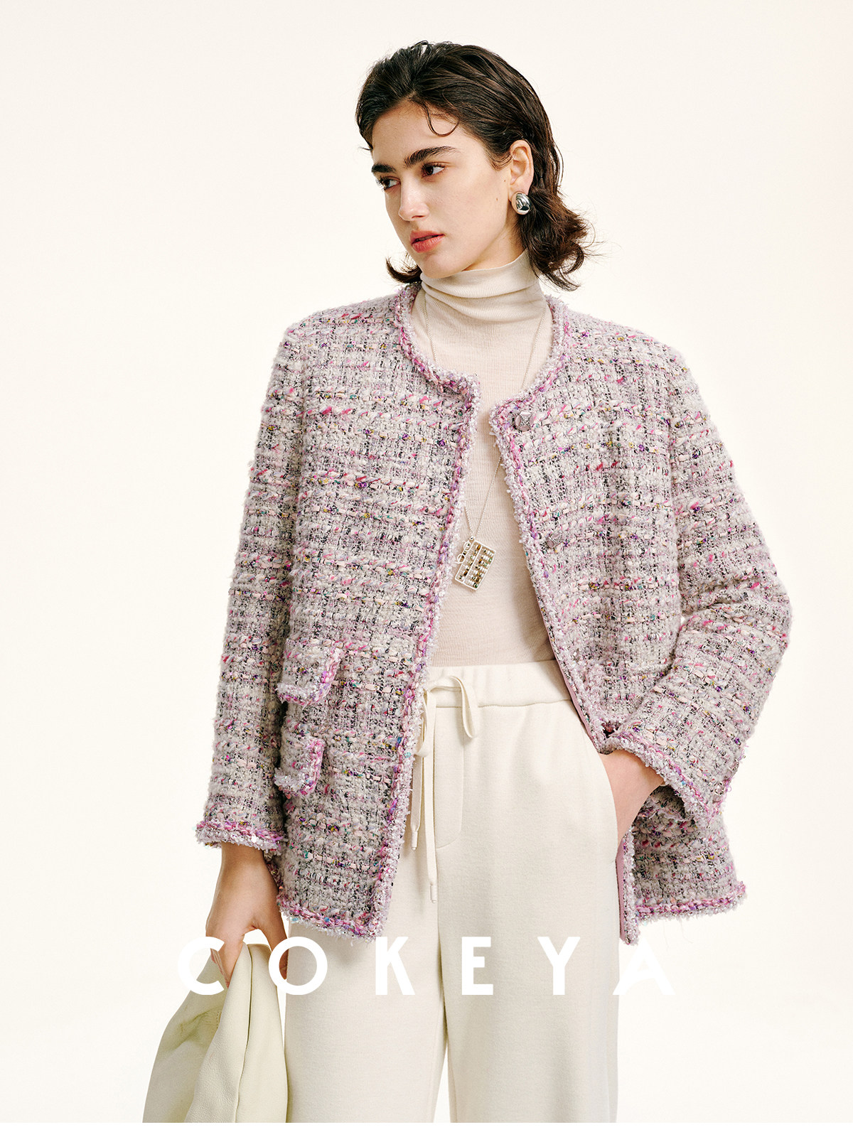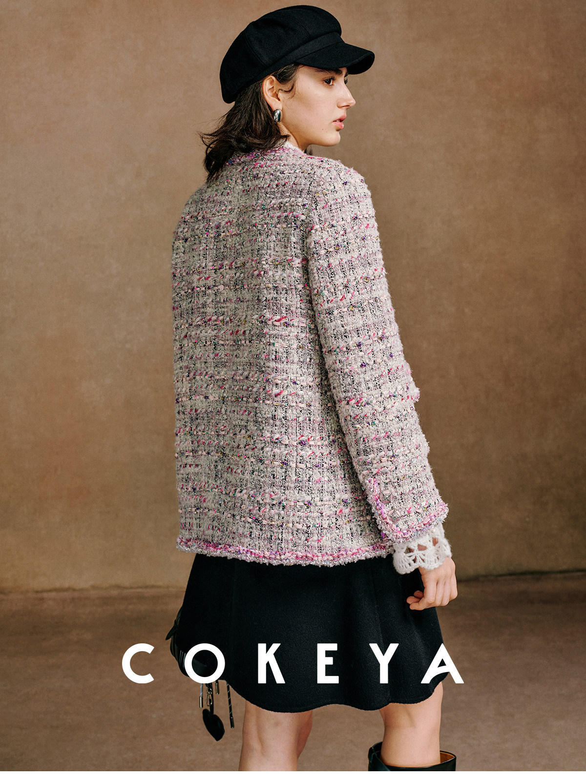 Cokeya/Colorful "Eden Garden"~ Wool Tweed Long-Sleeved Round-Neck Loose-Fitting Chanel-Style Jacket for Women in Early Spring