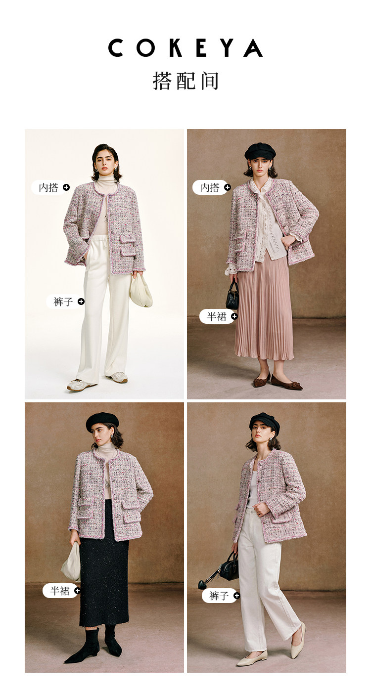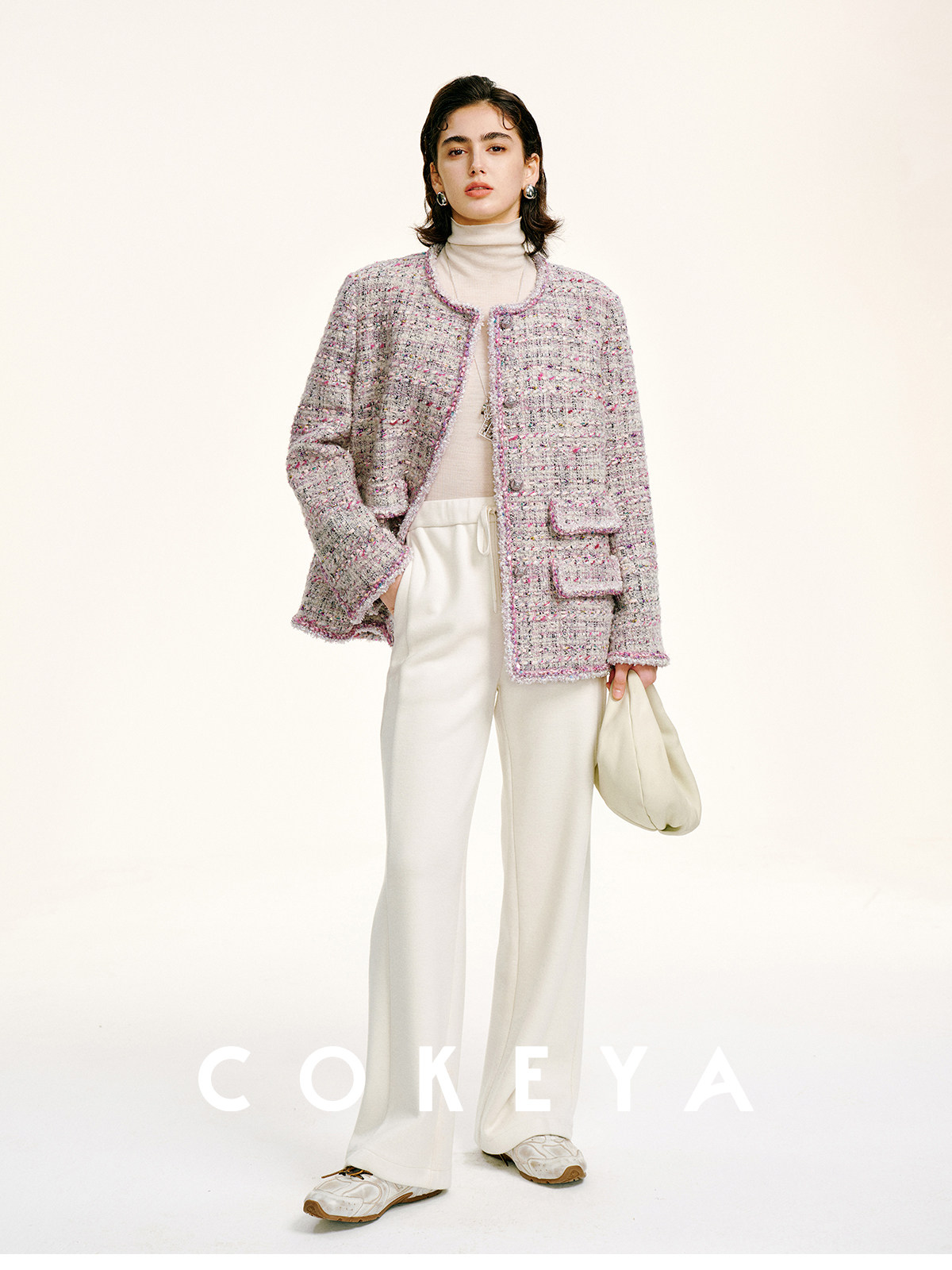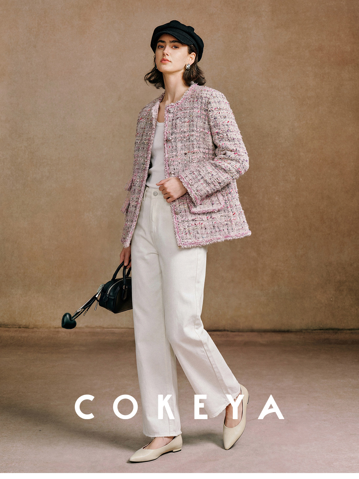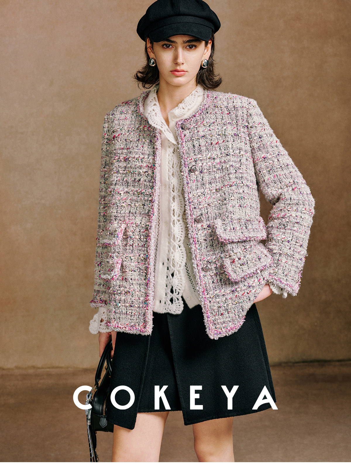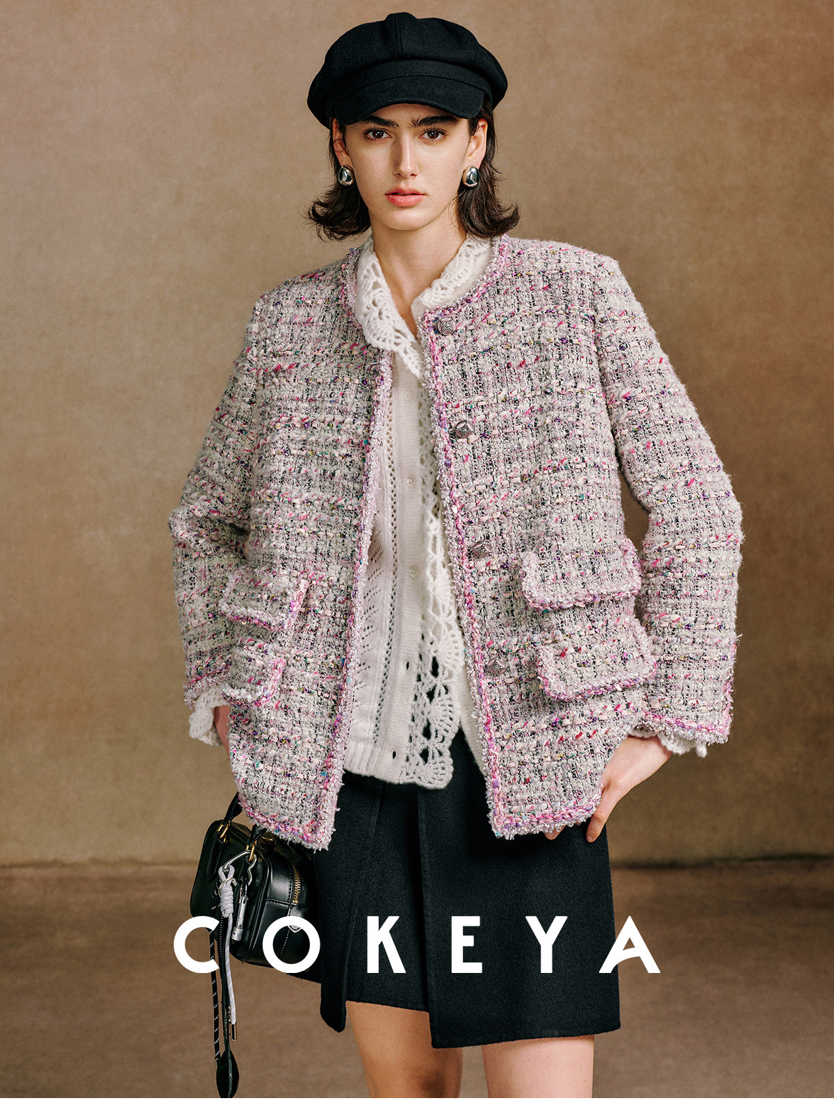 Cokeya/Colorful "Eden Garden"~ Wool Tweed Long-Sleeved Round-Neck Loose-Fitting Chanel-Style Jacket for Women in Early Spring