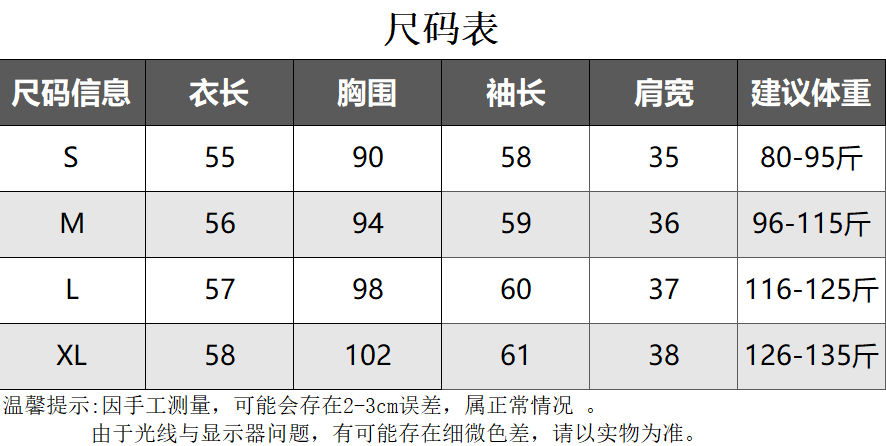 Size (cm) 42 44 46 48 50